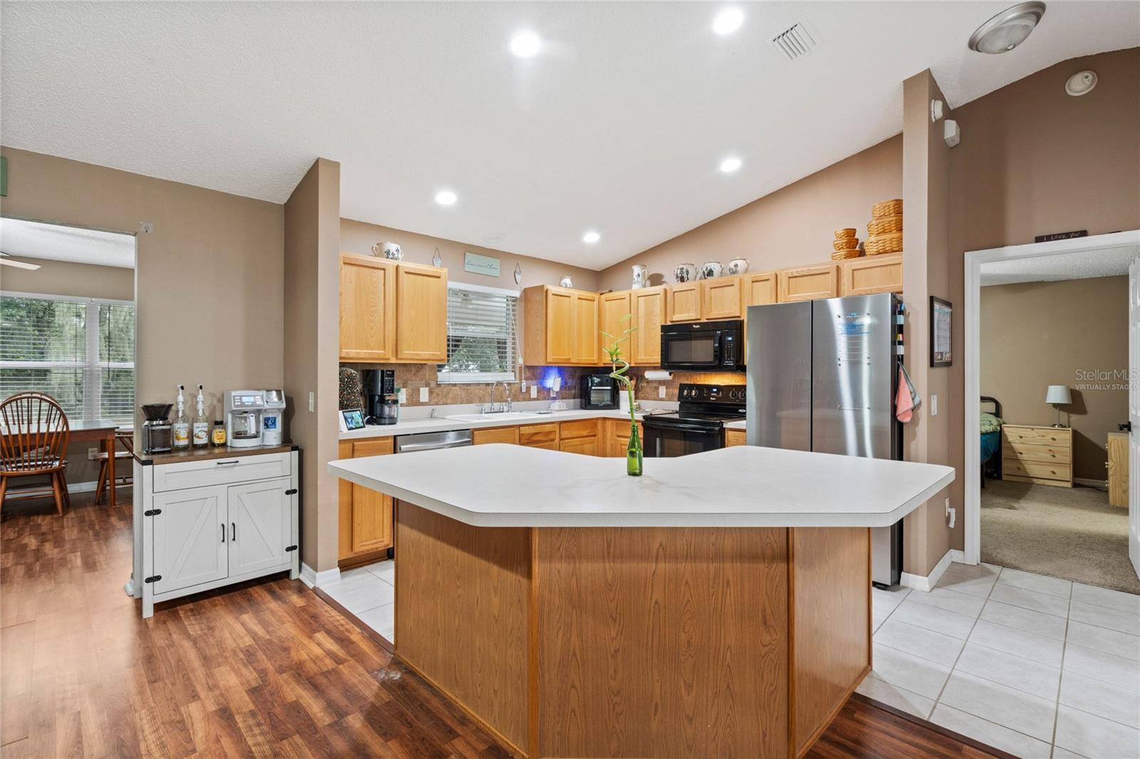 One or more photo(s) has been virtually staged. Seller offering buyer concessions! Roof was replaced in 2020, HVAC replaced in 2021, well and septic were both recently serviced. Welcome to your dream home in the heart of Summerfield, conveniently located just 5 minutes from The Villages. This adorable 3-bedroom, 2-bathroom residence features an open, airy feel with vaulted ceilings throughout the living areas and split floorplan. Relax on the screened-in patio in the backyard, perfect for enjoying Florida's beautiful weather without the bugs. The covered front porch offers a cozy spot for morning coffee or evening relaxation. Kitchen has an expansive island with breakfast bar. The 2-car garage provides ample space for vehicles and storage. With no HOA fees and low property taxes, you'll have more financial freedom to enjoy the lifestyle you love. This home offers the perfect blend of comfort, convenience, and charm.