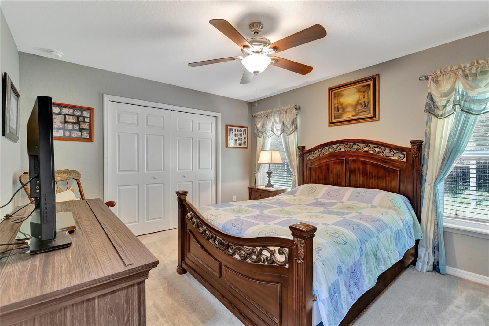 This beautiful 2020 home sits on a 0.56-acre lot located on a private road that dead ends giving ample privacy. The split floor plan with high ceilings provides a spacious feel upon entry. The kitchen offers counter space for eating and offsets the living/dining room combo. The large primary bedroom has a walk-in closet. There is an outdoor shed to accommodate your lawn equipment and an above-ground pool. This home has a water-purifying system and automatic backflush. No HOA, or water bill! Close to shopping, conveniences, and parks! Minutes away from Lake Weir for swimming and two waterfront dining options with a view of Lake Weir. Take a 5-minute drive to the Villages or visit Carney Island Park offering walking, a biking trail, and a playground.