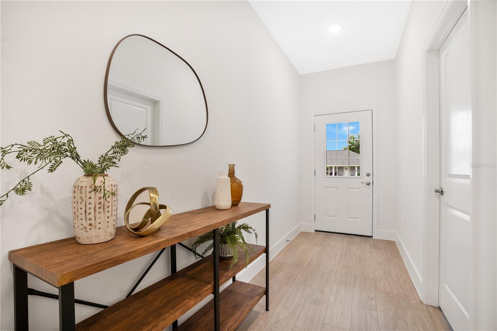 One or more photo(s) has been virtually staged. One or more photo(s) have been virtually staged. CORNER LOT WITH SPACE FOR RV OR BOAT! NO HOA! This beautifully designed 3-bedroom, 2-bathroom home sits on a corner lot, offering ample space for your RV, boat, or future outdoor projects. With a thoughtful layout and high-quality finishes, this home is designed for both comfort and functionality. The open floor plan features 9’4” ceilings, 5 1/4-inch baseboards, and durable 20-mil luxury vinyl plank flooring throughout. The kitchen is equipped with soft-close shaker cabinets, quartz countertops, a glass liner mosaic backsplash, and stainless steel appliances. A spacious island with built-in seating seamlessly connects to the dining and living areas, creating an inviting space filled with natural light. The primary suite offers a peaceful retreat with a luxurious in-suite bathroom featuring dual quartz-topped vanities, a floor-to-ceiling tiled shower with a sleek tempered glass door, and an expansive walk-in closet. The split-bedroom layout provides additional privacy, with the secondary bedrooms located at the front of the home, offering flexibility for guests or a home office. Built for efficiency and durability, the home includes double-pane windows, R-5.0 foam-board insulation, and energy-efficient appliances. A builder’s warranty ensures peace of mind. Step outside to enjoy the covered lanai, perfect for relaxing or entertaining while overlooking the expansive backyard. Situated in a desirable non-HOA neighborhood, this home is conveniently located near hospitals, supermarkets, restaurants, and shopping, providing easy access to daily essentials and entertainment. An exceptional opportunity to own a new construction home with the space and flexibility you’ve been looking for. Schedule your showing today!