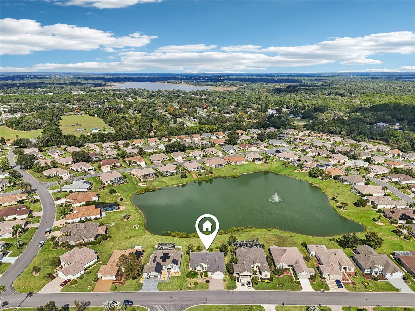 One or more photo(s) has been virtually staged. Welcome to this stunning pond-front home in the gated 55+ community of Spruce Creek Golf and Country Club, where comfort, style, and resort living come together. With 2 bedrooms, 2 bathrooms, and a private office across 1,870 square feet, this home is designed for both relaxation and entertaining. The property features a fully installed irrigation well, driveway pavers, and custom stained glass in the front entry French doors, creating an elegant and functional first impression. From the moment you step inside, natural light fills the open floor plan, highlighting the seamless connection between the living room and kitchen. The kitchen features stainless steel appliances, solid wood cabinets, a center island, a charming eat-in area, and a solar tube that brightens the space naturally, perfect for morning coffee with a view. The living room boasts two sets of expansive sliding glass doors that open to the enclosed Florida room, offering breathtaking pond views year-round. The primary suite is a true retreat with water views, a spacious walk-in closet with built-in shelving, and a spa-like en suite bath complete with dual sinks, a soaking tub, and a separate walk-in shower. Stability handrails are thoughtfully installed in the primary bathroom, including the toilet and shower, for added safety and comfort. Outside, you’ll find a two-car garage plus a golf cart garage for added convenience. Living in Spruce Creek means enjoying a lifestyle filled with amenities, including golf courses, a clubhouse restaurant, multiple pools, tennis and pickleball courts, and volleyball courts. All of this is just minutes from Veterans Park, local dining, and easy highway access. This home perfectly blends modern comfort with Florida charm, offering peaceful pond views, elegant finishes, and vibrant community living in one beautiful package. Mortgage savings may be available for buyers of this listing.