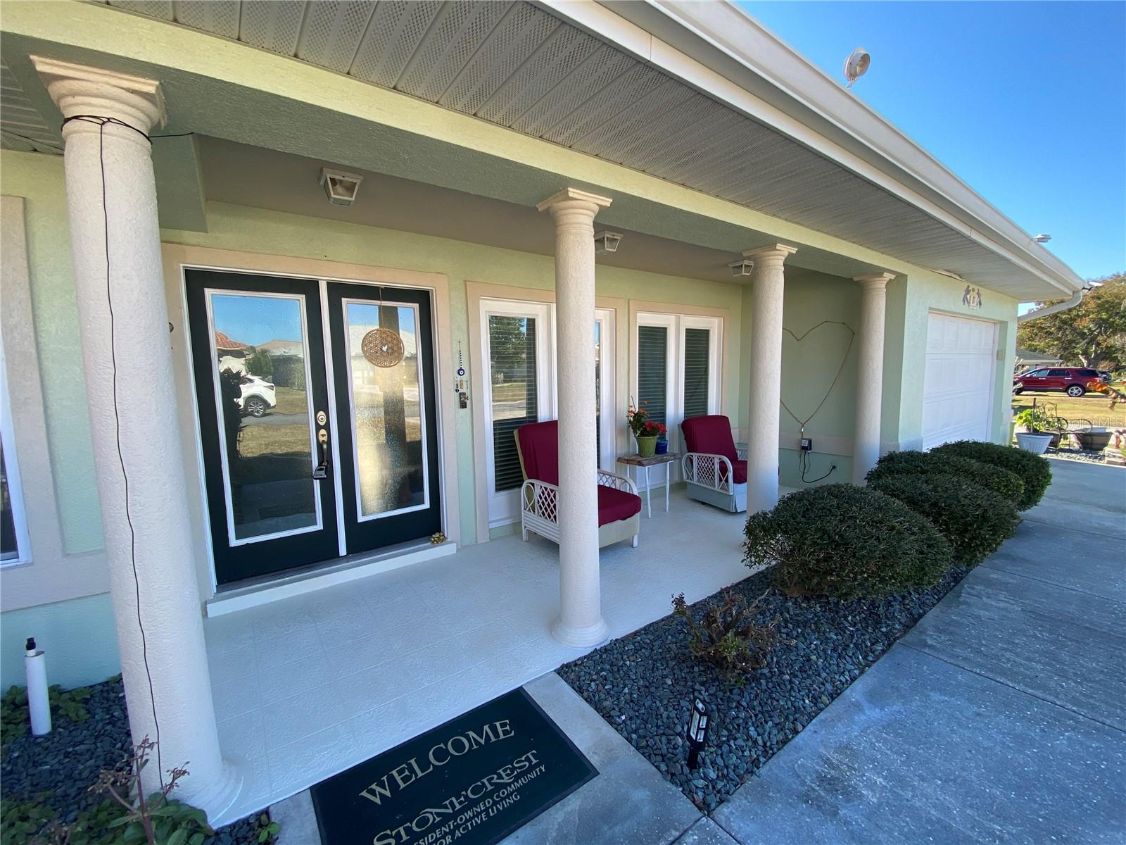 Get ready to fall in love with this home and the lifestyle in this beautiful 2-bedroom, 2-bath former model home located in the highly desirable Stonecrest gated, active adult community of Summerfield. Step inside to an inviting open, airy floor plan that’s perfect for entertaining or relaxing in comfort. Designer decorative accent walls, surround sound throughout, and a fresh paint update. give the home a stylish, move-in-ready feel. Newer roof (2020), HVAC (2019), water heater (2016), Newer windows/door (2017). Additional upgrades include gutters and a new garage door opener, adding convenience and peace of mind. The spacious primary suite offers a peaceful retreat with a walk-in closet and private en-suite bath. Just off the main living area, the enclosed Florida room, redone in 2025, provides a cozy space to enjoy the Florida lifestyle year-round. Step outside to the extra-wide patio, ideal for outdoor furniture, entertaining guests, or creating your own gardening oasis. Enjoy delicious avocados from your very own avocado tree! Beyond the front door, Stonecrest delivers resort-style living at its finest. With a full-time onsite Activities Director, 80+ clubs and activity groups, live entertainment, fitness and sports programs, plus an on-property golf course and restaurant, you can be as active and social as you choose—without ever leaving home. Enjoy the world-class 12-acre recreation complex, four pools including a saltwater pool, state-of-the-art fitness center, two clubhouses, tournament-quality billiards, and two off-leash dog parks. Ideally located near shopping, dining, medical facilities, and entertainment, this home offers the perfect blend of comfort, convenience, and an exciting, active lifestyle. Don’t just imagine it—come see this home in person and experience everything Stonecrest has to offer!