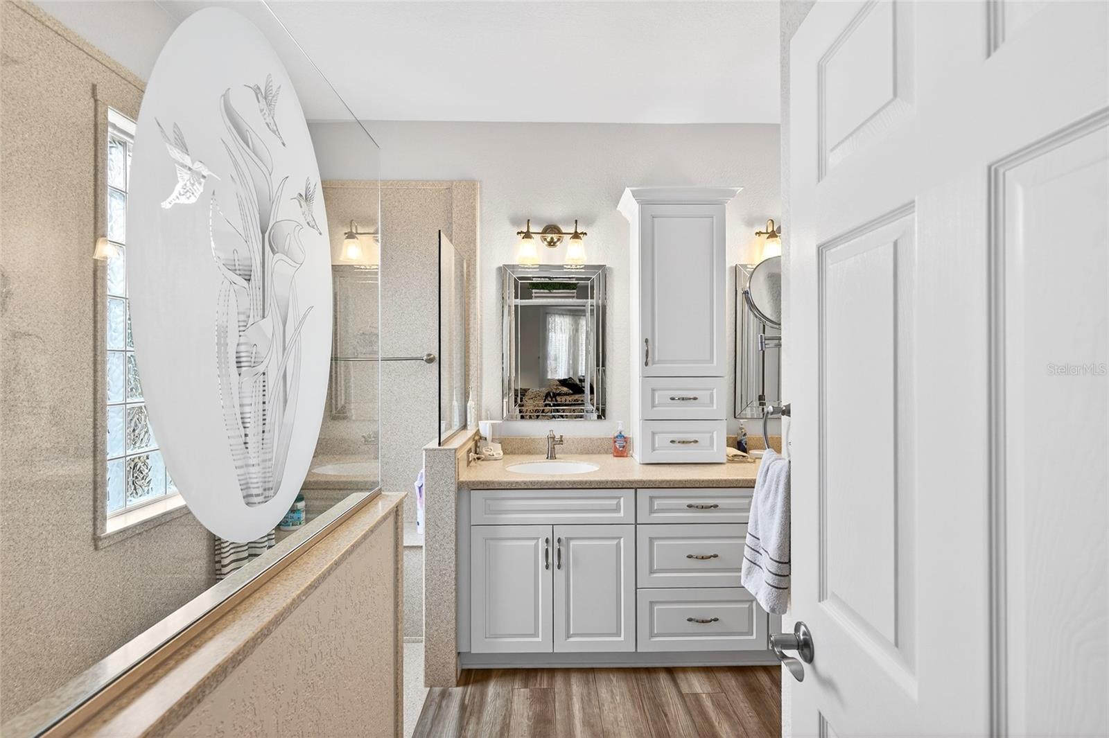 One or more photo(s) has been virtually staged. THE INCREDIBLE GATED SPRUCE CREEK BY DEL WEBB WITH RESORT STYLE AMENITIES!! THIS SANTA ROSA MODEL WILL BE THE REASON YOU WANT TO CALL SPRUCE CREEK COUNTRY CLUB YOUR HOME! FROM THE MOMENT YOU DRIVE UP YOU ARE GREETED WITH TRUE PRIDE OF OWNERSHIP STARTING WITH THE CUSTOM PAVER DRIVEWAY AND WALKWAY TO FRONT DOOR WITH 2021 STORM DOOR, CURBED LANDSCAPING AND WELL MAINTAINED LANDSCAPING. THE FRONT COVERED ENTRY LEADS TO THIS MAGICAL OPEN FLOOR PLAN FEATURING 2021 RENOVATED KITCHEN A SHOW STOPPER WITH QUARTZ COUNTERTOPS, CUSTOM KRAFTSMAID CABINETRY WITH SOFT DOORS AND DRAWERS, PULL OUTS DESIGNED TO MAKE IT EASY TO GET TO THOSE ITEMS IN BACK OF CABINETS WITH EASE. UNDER COUNTER LIGHTS, STAINLESS STEEL APPLIANCES AND PENINSULA ISLAND. TILE BACKSPLASH AND UNDERMOUNT STAINLESS STEEL SINK COMPLETE THIS MASTERPIECE. THE BREAKFAST AREA HAS PICTURESQUE WINDOWS. SPACIOUS LIVING ROOM WITH GAS FIREPLACE FOR THOSE COLD RARE FLORIDA NIGHTS. DINING ROOM IN CENTER OF HOME OVERLOOKS THE LIVING ROOM AND GORGEOUS KITCHEN. SURROUND SOUND FOR ENTERTAINMENT, 2021 DOUBLE HUNG WINDOWS WITH TRANSFERABLE LIFETIME WARRANTY. TO RIGHT OF ENTRY IS THE DEN/OFFICE , 2ND BEDROOM AND BATH FOR GUESTS. INSIDE LAUNDRY ROOM WITH WASHER/ DRYER AND STORAGE. DOWN THE HALL IS IMPRESSIVE LARGE PRIMARY BEDROOM WITH BAY WINDOW,PRIMARY BATH FEATURING WALK IN/ROLL IN SHOWER, DOUBLE VANITY 2021. PRIMARY STEPS OUT TO COVERED AND ENCLOSED UNDER AIR FLORIDA ROOM WITH TONS OF NATURAL LIGHT. STEP OUTSIDE TO EXTENDED PAVER PATIO WITH AUTOMATIC 14 FOOT CUSTOM SUN SETTER AWNING FOR SHADE. 29 FOOT EXTENDED GARAGE FOR EXTRA ROOM, 2 ATTIC SOLAR FANS, GARAGE DOOR INSULATION, NEW ROOF 2020, HVAC 2016, HOT WATER 2019, WHOLE HOME NATURAL GAS GENERATOR. ALL DREAMS ARE A REALITY IN THIS SANTA ROSA!