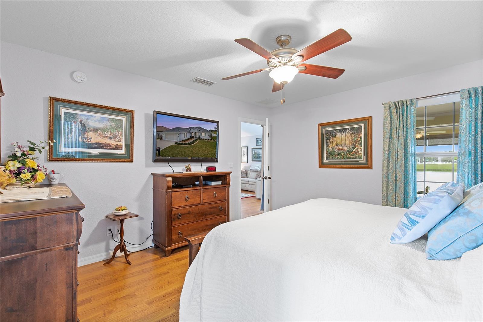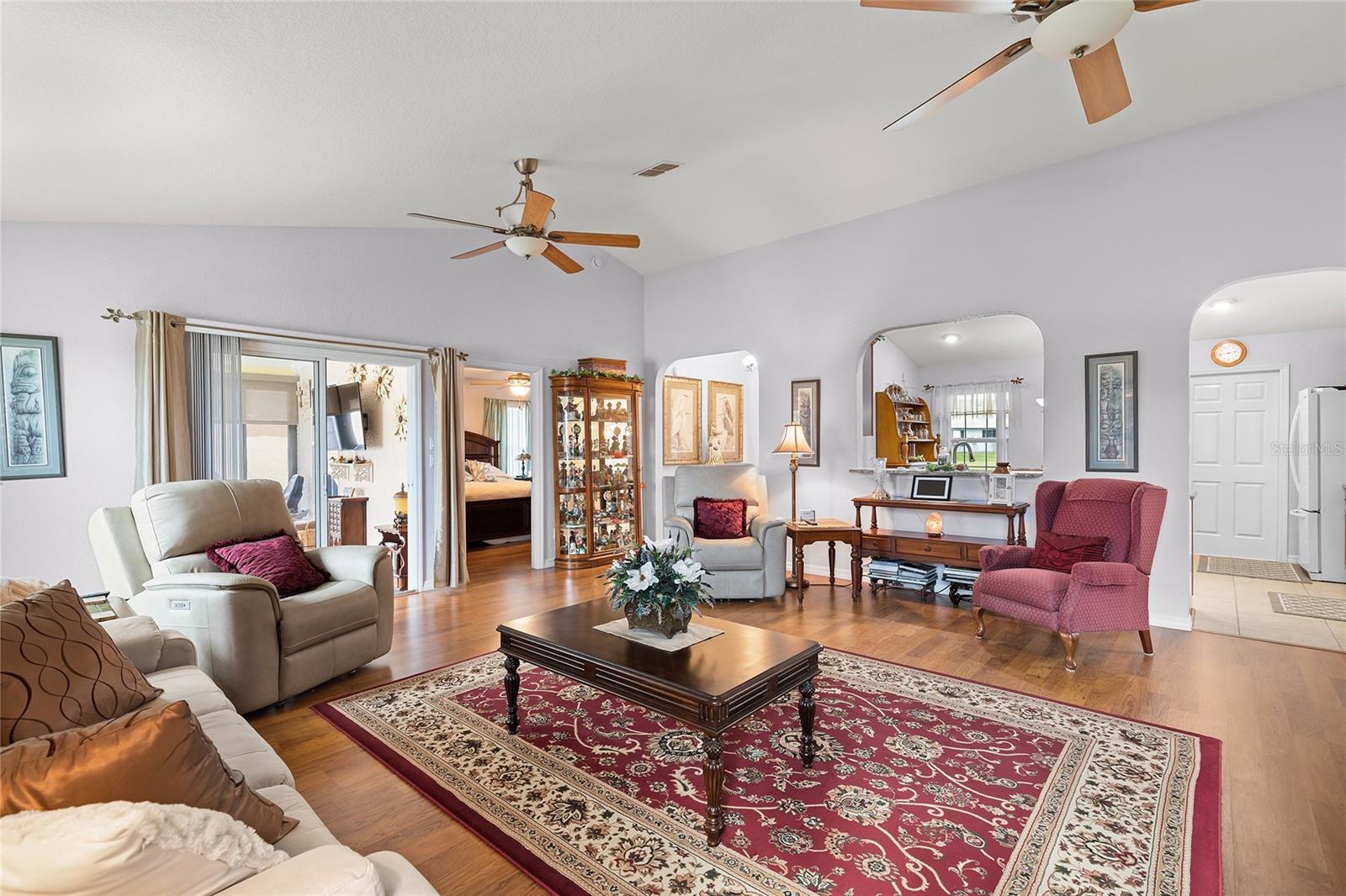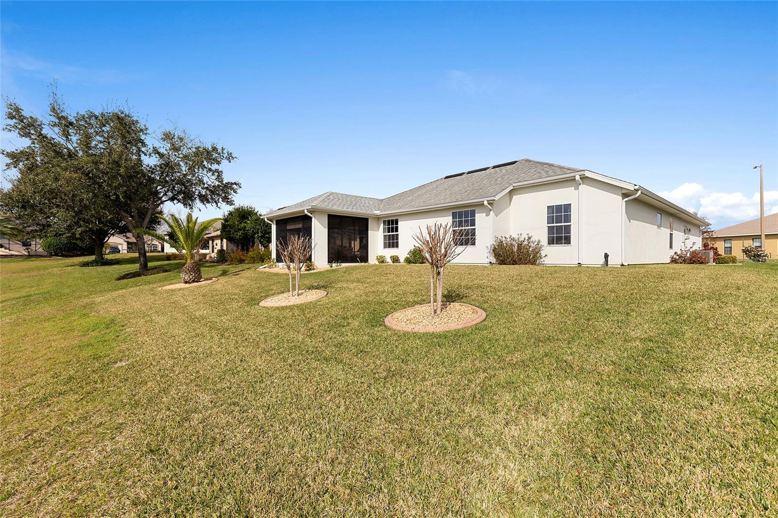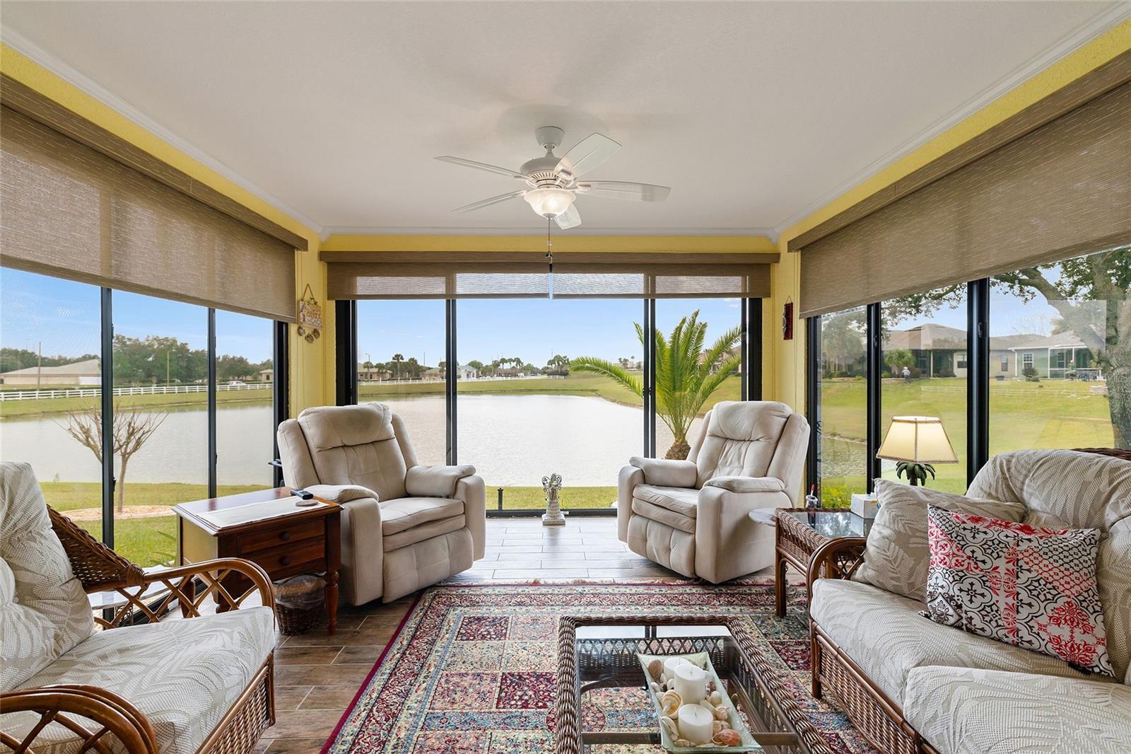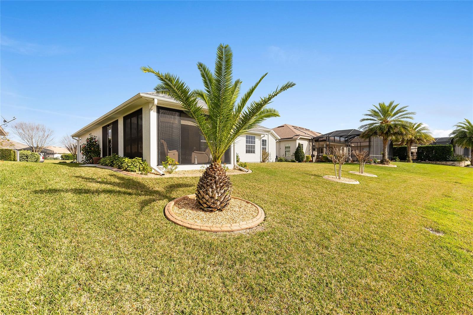 Your lucky day... due to buyer's remorse this beauty is back on the market! Discover your Forever home in the Exclusive, Active, Adult, Gated Golf Community of STONECREST, with all the amenities, adjacent to THE VILLAGES, Florida! Crafted without compromise by the owners, boasts a Prime location overlooking one of the Serene Interior Lakes and comes complete with all the amenities you desire. Meticulously designed, the property Features an expanded SYCAMORE Floor Plan, offering a spacious layout with 3 FULL BEDROOMS, 2 BATHS, and the added Luxury of a FLORIDA ROOM UNDER AIR. The Florida room is adorned with FULL-LENGTH Sliding Windows equipped with SCREENS AND SUNSHADES, providing a perfect vantage point to enjoy wildlife frolicking in the Lake and Breathtaking sunsets in the evenings. NEW HVAC 2021. The eat-in Kitchen is a chef's delight, Featuring 42" CABINETS, above-cabinet lighting, and convenient pull-out drawers in the lower cabinets, GRANITE COUNTER TOPS AND BACKSPLASH. The master en-suite is a retreat in itself, offering DUAL SINKS in the vanity, a Large WALK-IN TILED Shower, a separate water closet, and a separate dressing vanity. The thoughtful split bedroom floor plan enhances privacy, while the LIVING ROOM EXTENDED BY FOUR FEET DURING CONSTRUCTION, providing a comfortable and inviting space. The lanai is under air adding another 324 sqft, but taxed on 1,566 sqft. Experience the perfect blend of Comfort and Elegance in a setting that promises Tranquility while ensuring easy access to community events. Your dream home awaits in the heart of STONECREST, where every detail has been carefully considered to offer you a Lifestyle of Relaxation and Sophistication.