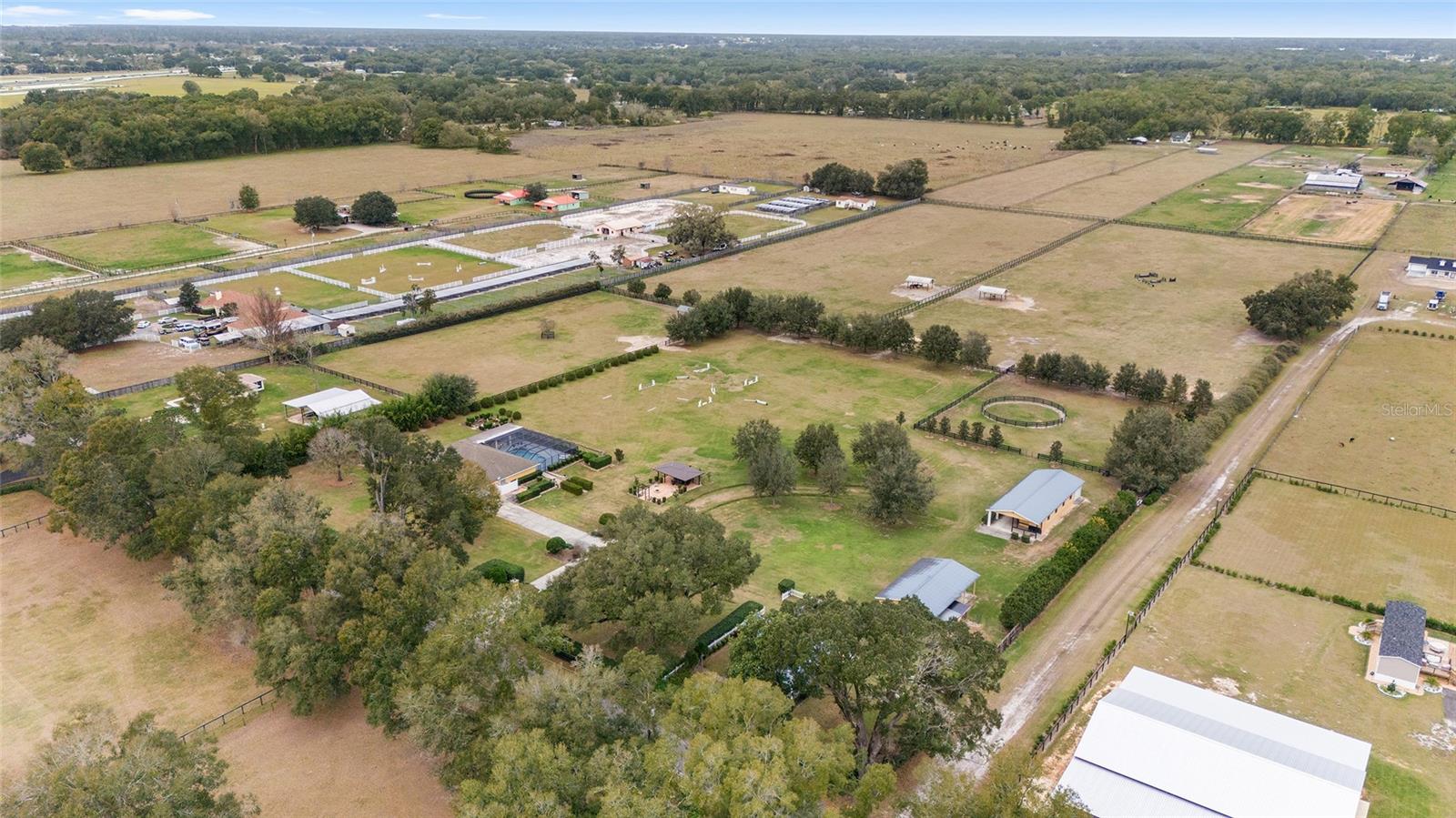Welcome to Fox Hall Farm, a 19-acres quintessential equestrian retreat located in the horse capital of the world. The main residence features 4 bedrooms and 3 full -bath 2 car garage and a pool. The backyard is tranquil with direct views of the pastures and beautiful sunsets. The screen enclosure allows you to enjoy indoor outdoor living year round. Equipped with a summer kitchen and additional gazebo. 4 stall barn with wash rack, tack room, and storage room with a roll up bay that can fit a driving carriage, round pen, ample turnouts, grass jumping and dressage field. There is a custom built dog house, sitting garden and a detached garage for trailer parking storage. The cottage has been fully restored including new insulation. Guest cottage features its own private entrance and parking, 2 spacious bedroom and 1 bathroom. The most notable features are the high ceilings and the charming history. Located in Summerfield off I-75 this is an easy commute to The World Equestrian Center about 20 minutes away. You are also close to tractor supply, shopping, The Florida Horse Park, Greenway Trails and much more. The property could be available furnished turnkey inquire for more details.
