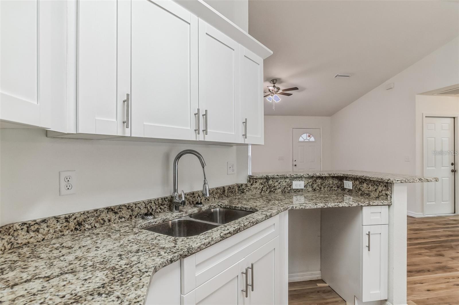 This magnificent new construction boasts 3 bedrooms, 2 bathrooms, and a 2-car garage, making it the perfect home for families or anyone seeking ample space. Its prime location near Villages and Hwy 441 offers easy access to nearby amenities, while the luxurious vinyl plank flooring and shaker wood cabinets add a touch of sophistication to the interior. With granite countertops, a spacious great room, and an open floor plan, this home is designed for comfortable living and entertaining. Furthermore, the sliders leading to the backyard provide a seamless transition between indoor and outdoor living spaces, making it perfect for enjoying the Florida sunshine.