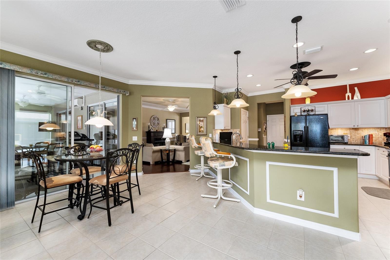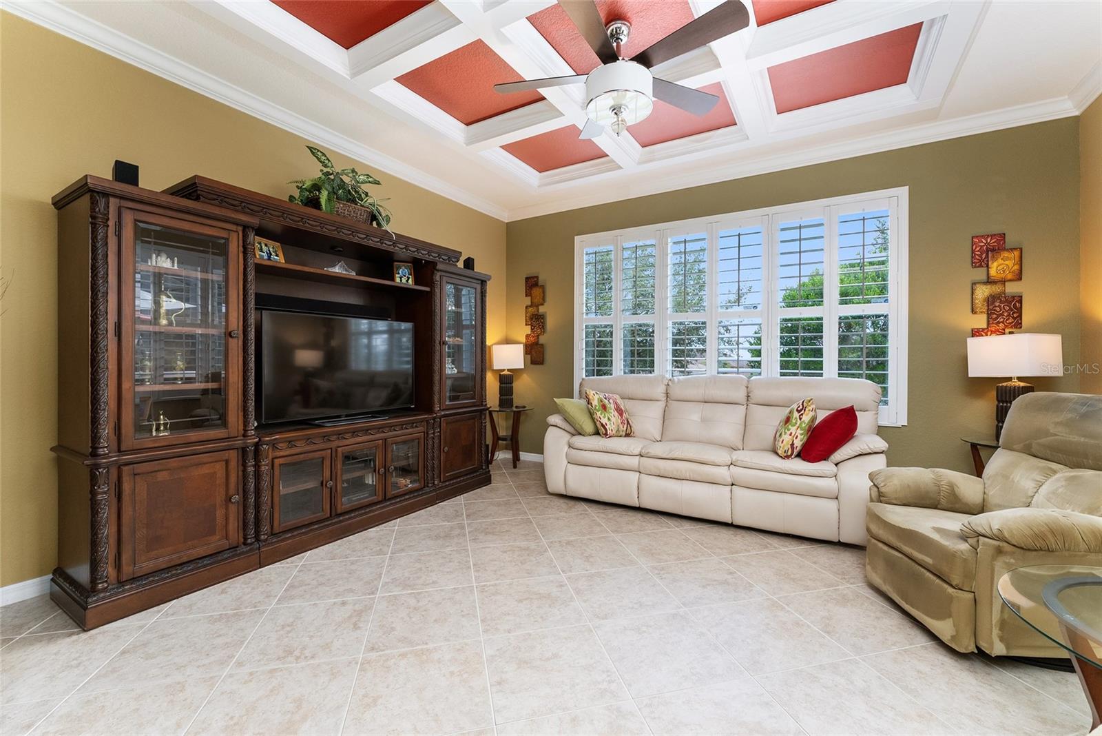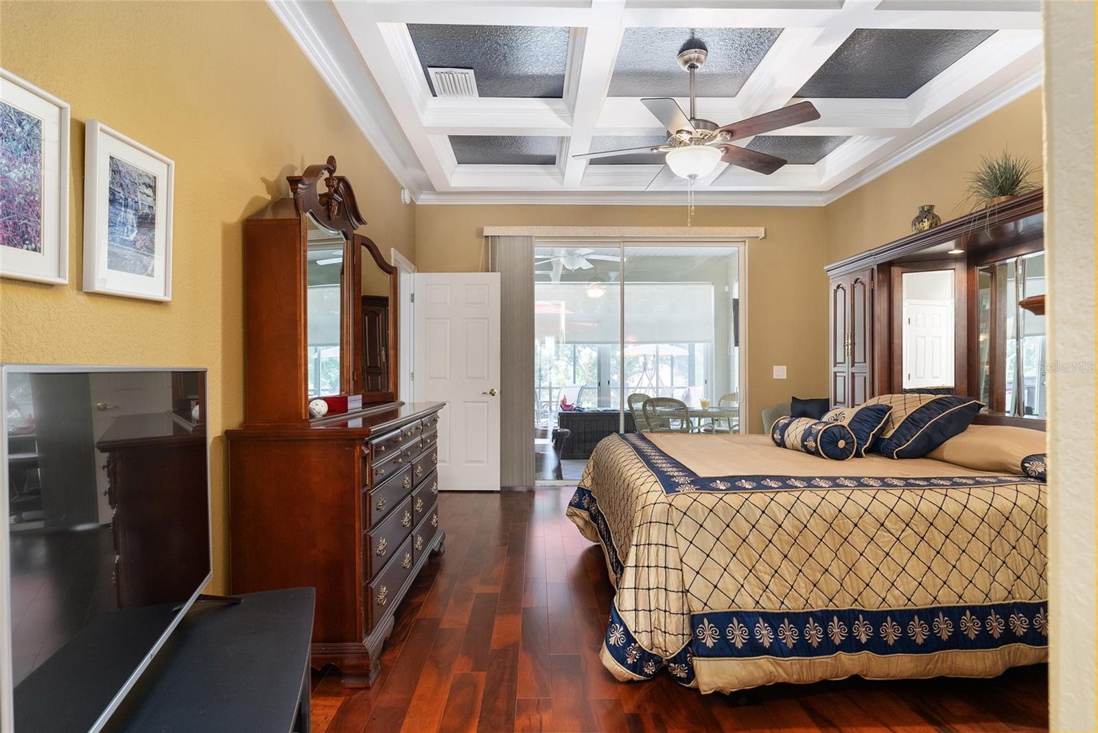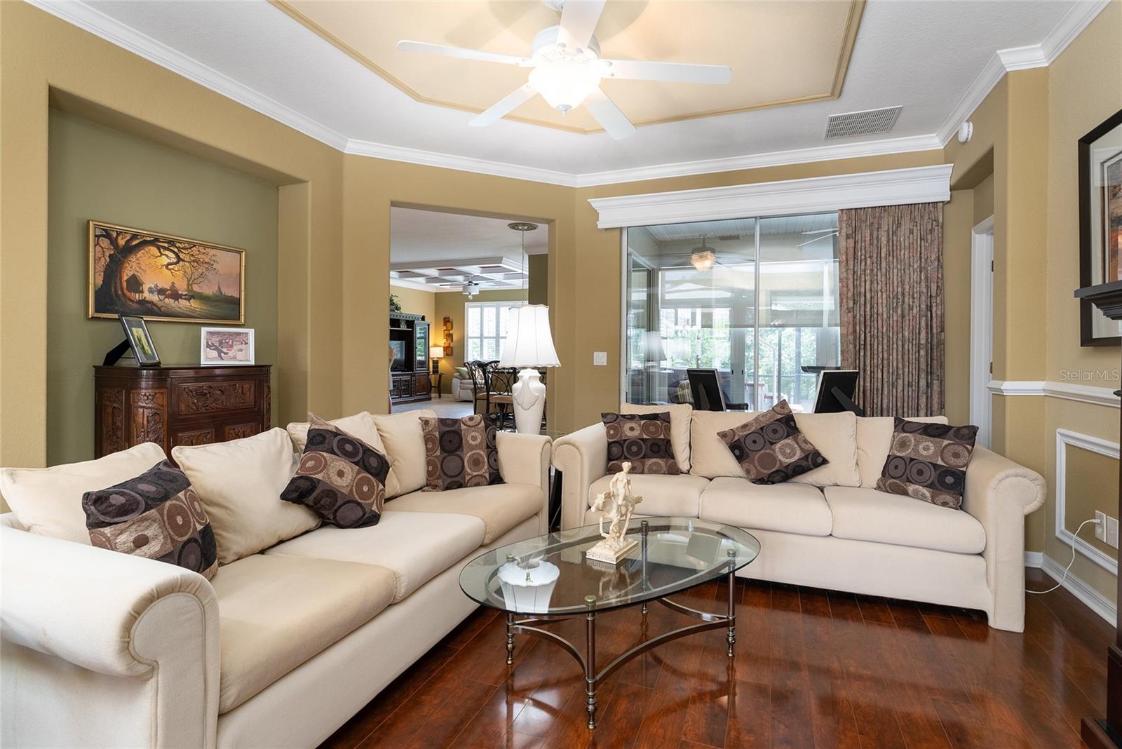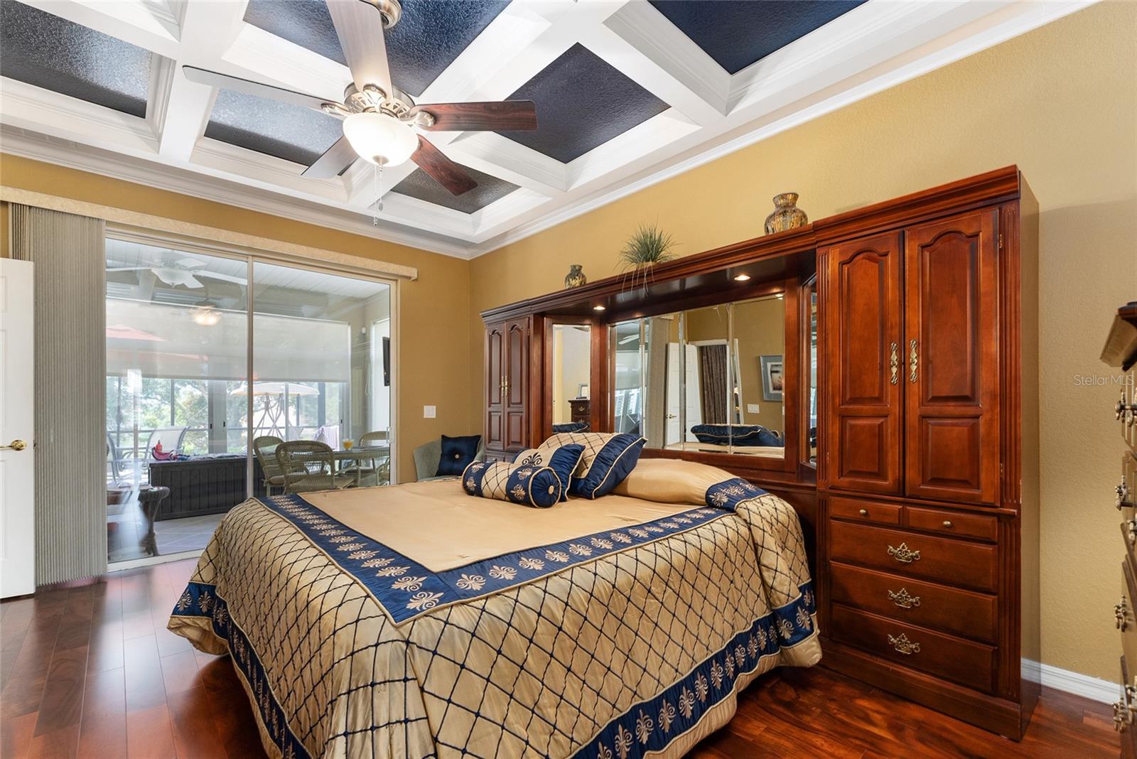 Situated high on the upper ridge of HAMPTON HILLS, this expansive, gorgeous KINGSTON model home is being offered by the original owners. The elegance of the design, decor, flooring, woodwork (by Truman) and the views are unmatched. Coffer ceilings in the Master Bedroom and Family Room, Crown Molding, Custom Kitchen...SO MUCH MORE! THE PHOTOS WILL SPEAK WELL FOR THIS SPECIAL HOME. The large lanai is an additional 240 Square feet of air conditioned living space. The full length glass doors open into the 30' x 14' Bird-caged patio where AMAZING SUNSETS are to be enjoyed. There is room for a swimming pool. New Roof June 2022 - HVAC February 2020