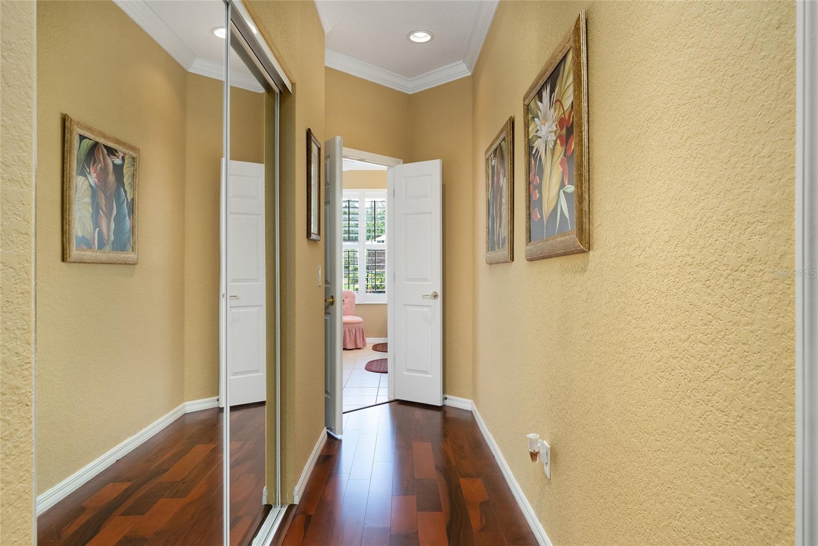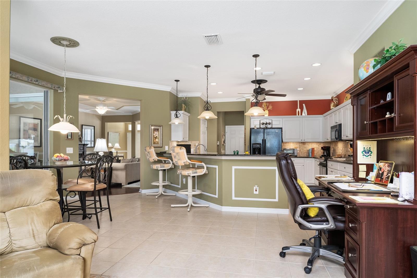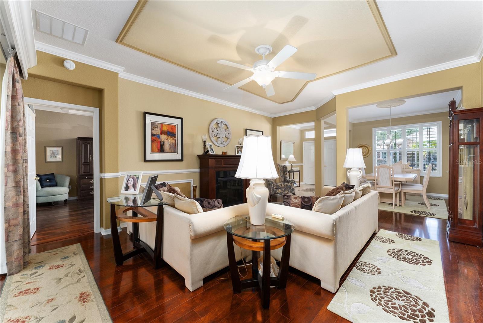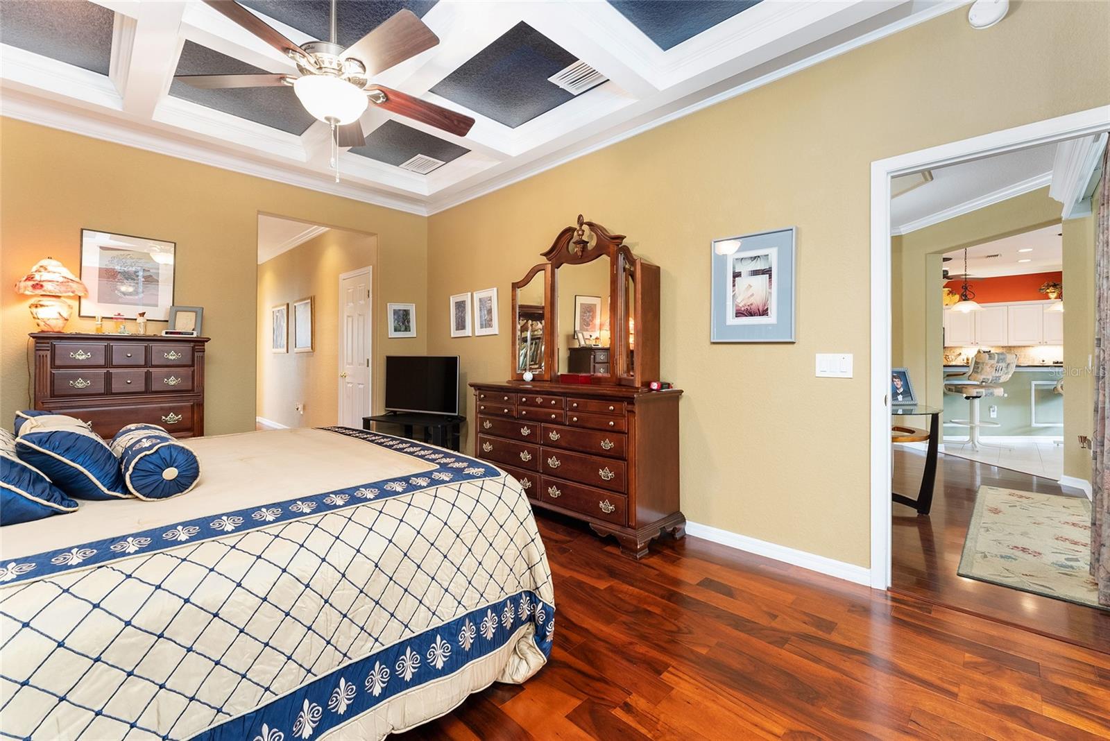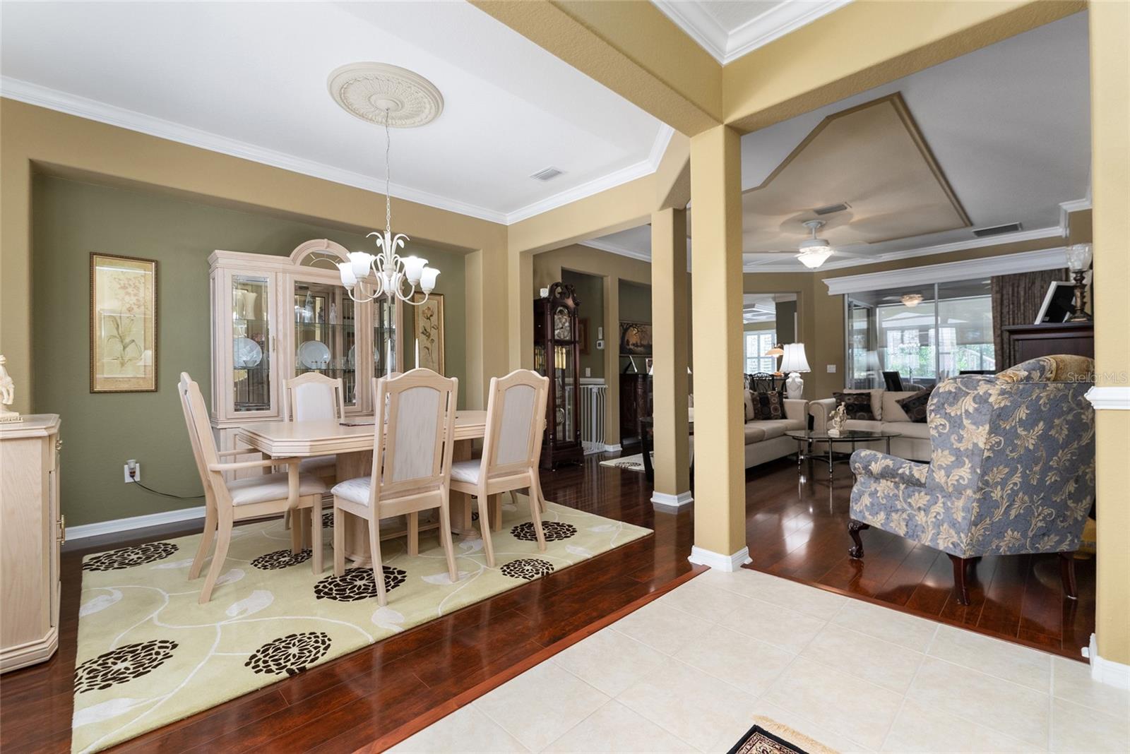 Situated high on the upper ridge of HAMPTON HILLS, this expansive, gorgeous KINGSTON model home is being offered by the original owners. The elegance of the design, decor, flooring, woodwork (by Truman) and the views are unmatched. Coffer ceilings in the Master Bedroom and Family Room, Crown Molding, Custom Kitchen...SO MUCH MORE! THE PHOTOS WILL SPEAK WELL FOR THIS SPECIAL HOME. The large lanai is an additional 240 Square feet of air conditioned living space. The full length glass doors open into the 30' x 14' Bird-caged patio where AMAZING SUNSETS are to be enjoyed. There is room for a swimming pool. New Roof June 2022 - HVAC February 2020