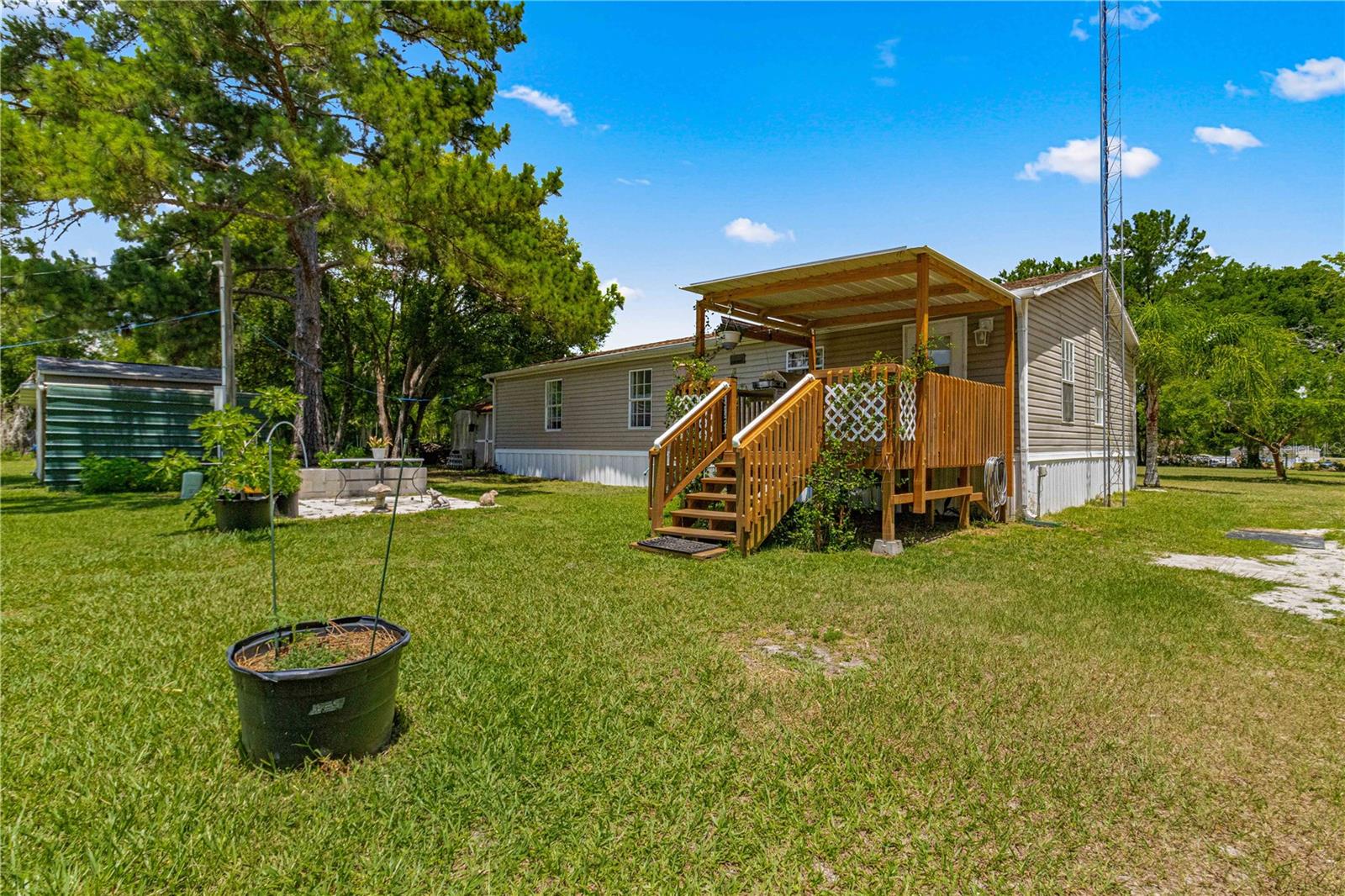Welcome to your private oasis! This incredible gated flag lot 3-acre property boasts not one, but two beautiful mobile homes, offering versatility and space. The primary home (1904 sq ft.) features 4 bedrooms, 2 baths, a spacious kitchen, and an inviting open floor plan, perfect for gathering with loved ones and friends. Need space for in-laws or rental income? Look no further than the 1267 sq ft guest home, which offers 3 bedrooms and 2 baths. Step outside and discover your own slice of paradise. Take a refreshing dip in the above-ground pool, tend to your garden, or enjoy the ample storage space and workshop for all your projects. For those with a green thumb, the property includes a huge chicken coop and space to cultivate your own fresh produce which already includes asparagus, kale, tomato, and onions. RV enthusiasts will love the convenience of two RV hookups (50 and 30 amp) and dedicated RV septic. Not an RV enthusiast? The RV site at the rear of the property can be used for income as well! Whether you're seeking solitude or entertaining guests, this property is a true compound, offering privacy and endless possibilities. Don't miss out on the opportunity to make this your new home sweet home!