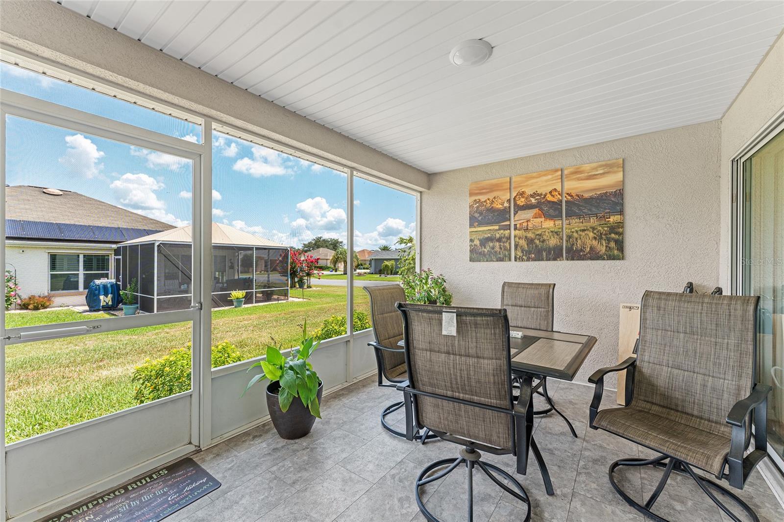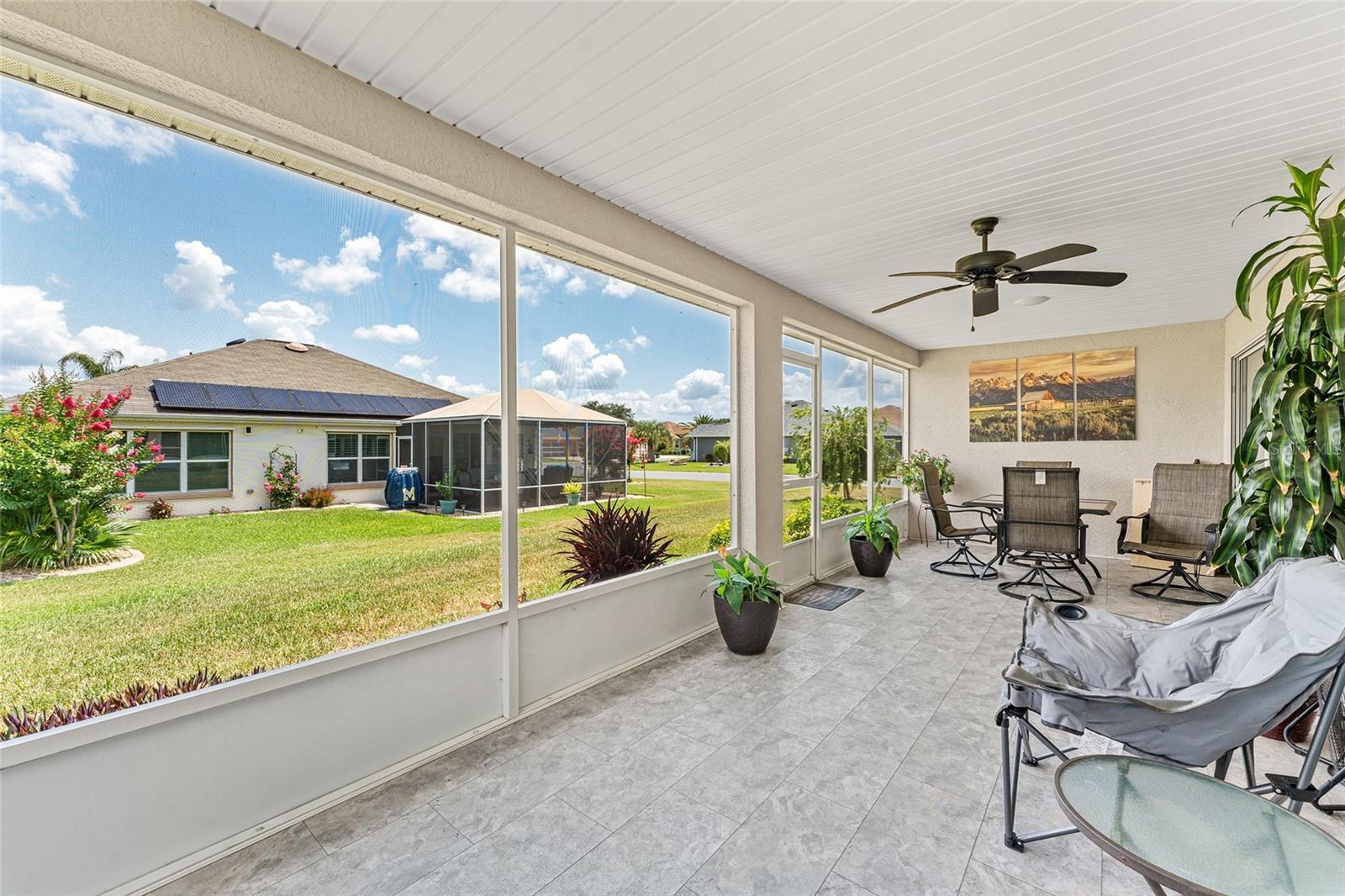 JUST REDUCED PRICE 15,000!!!!!! One of the builder's most popular open floor plans, this 3 bedroom - 2 bath Elkridge model sits on a beautifully landscaped corner lot in Sherwood neighborhood and features some nice recent upgrades. New ceiling fans and light fixtures, laminate wood flooring throughout living room, easy care, waterproof vinyl tile flooring in kitchen and lanai. Granite counter tops and tile backsplash in kitchen, with oak cabinets closet/pantry and new refrigerator, dishwasher and microwave. New counter tops in bathrooms, as well as new raised height toilets, and and ugraded enlarged shower in master bath AND new carpet in bedrooms! Indoor LAUNDRY ROOM with storage cabinets and washer/dryer that stays, sliding doors in kitchen and living room area open into a spaccious 28'x10' screened lanai with new vinyl tile flooring. Blinds and window treatments remain. Soft, neutral colors throughout. THIS HOME IS MOVE-IN READY!!! New ROOF and attic re-piped in 2022. RECENTLY PAINTED EXTERIOR! *Seller is offering a one year Home Warranty with accepted contract* The Sherwood neighborhood is conveniently located near the back gate, which allows for quick and easy exit to all main streets in the area. Located in the award winning DEL WEBB SPRUCE CREEK GOLF & COUNTRY CLUB, a GATED, resident-governed 55+ Community & includes a restaurant plus many other amenities, including more than 70 clubs and activities to exercise both mind and body.