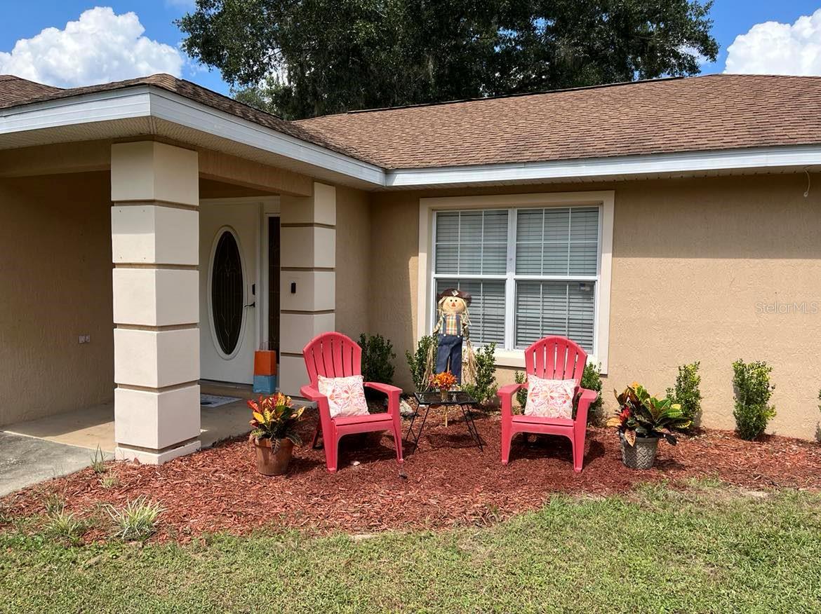 MOTIVATED SELLER DUE TO RELOCATION - GREAT LOCATION JUST OUTSIDE THE VILLAGES - Quiet neighborhood in Orange Blossom Hills with no thru traffic! This home is conveniently located between The Villages & Ocala- close to VA, hospitals, Publix, restaurants, shopping, The Villages, and much more. This Block home is nestled on a .29 acre lot with enough room for a pool, more storage or garage. NEW premium vinyl fencing with TWO gates for easy access to backyard. Great space for your pets and family gatherings! NO HOA! No lease restrictions! Perfect for a family, investment property or short-term rentals. This well maintained home has vaulted ceilings (no popcorn) and open floor plan concept - kitchen has room for dinette in front of bay window looking out to the backyard- 3 roomy bedrooms, 2 full baths with inside closet laundry and spacious 2 car garage. Large Shed in backyard stays. NEW ROOF INSTALLED 10-24, NEW 2.5 Ton Heat pump installed 2021, Septic serviced 2024, Well serviced 2023, New Dishwasher installed 2023 with protection plan till 11-2026 - NEW CARPET installed in primary, living room and guest bedroom.