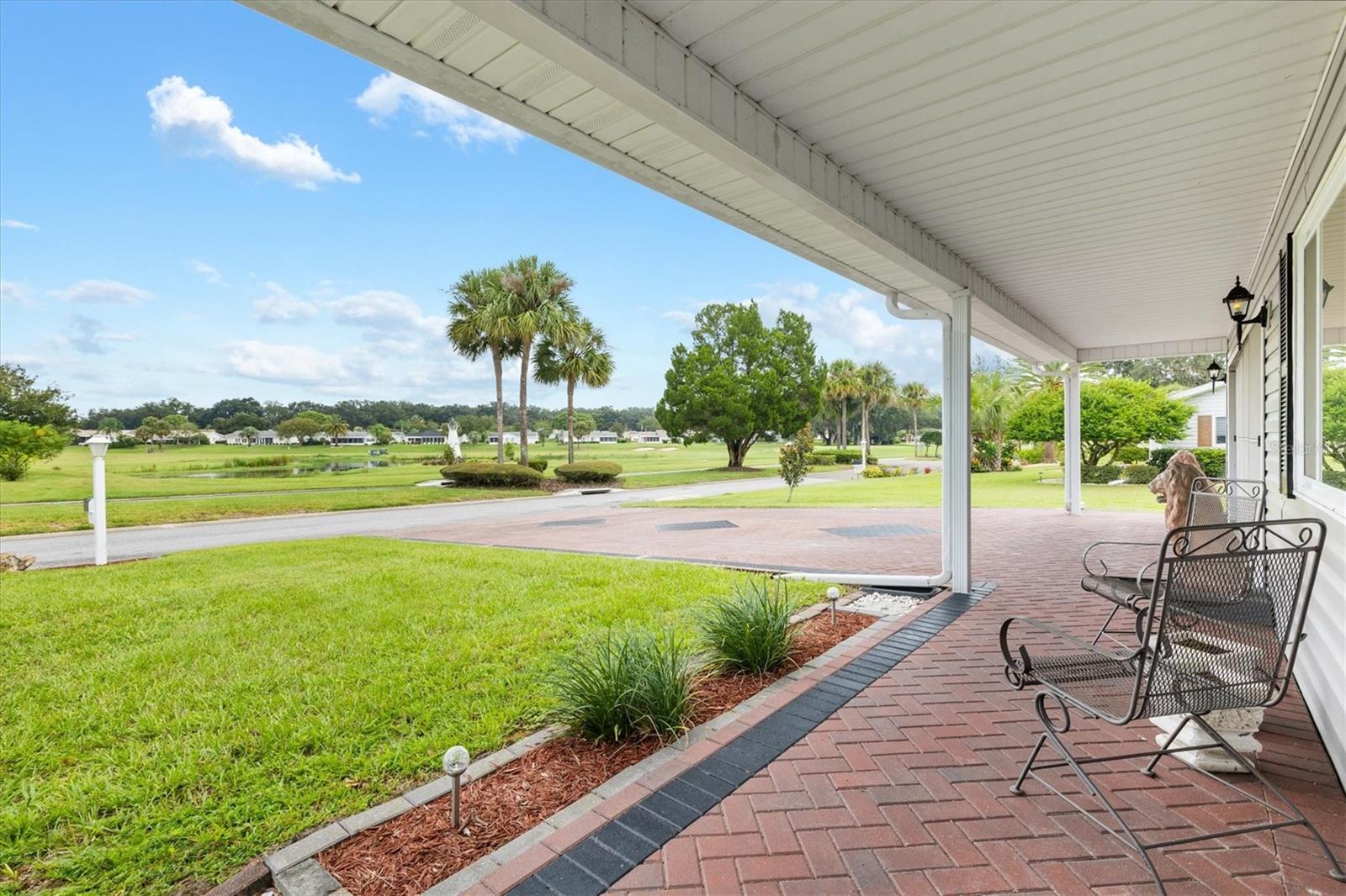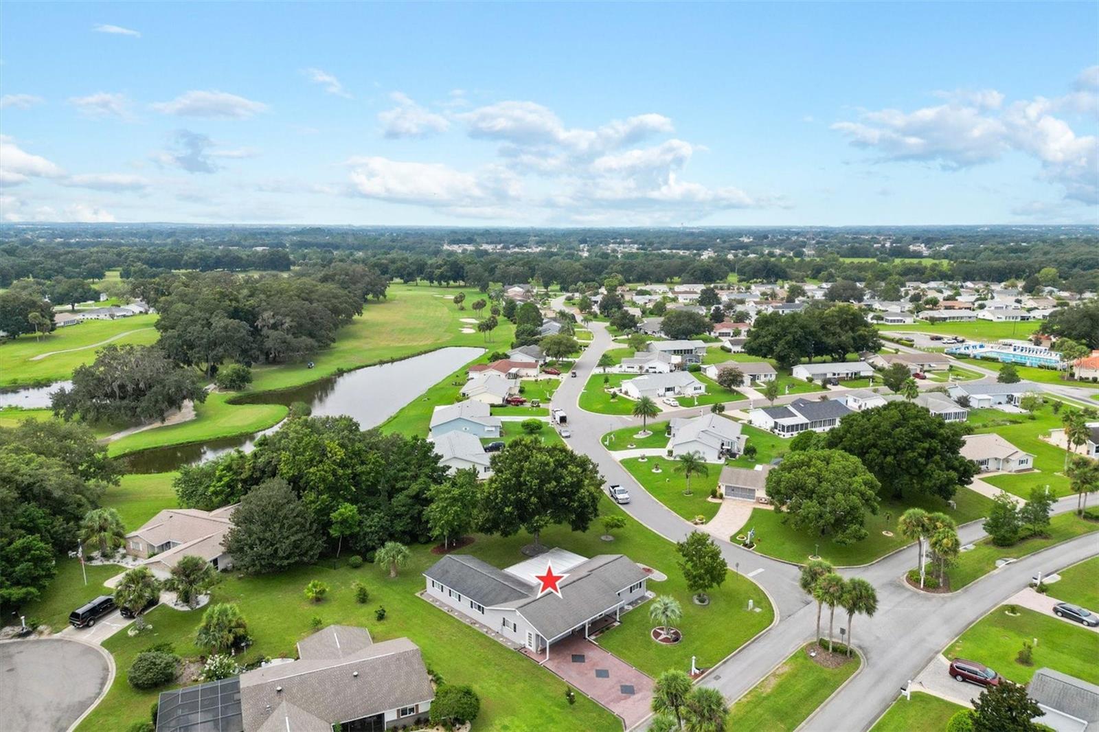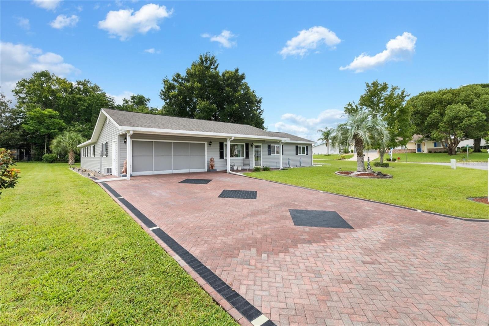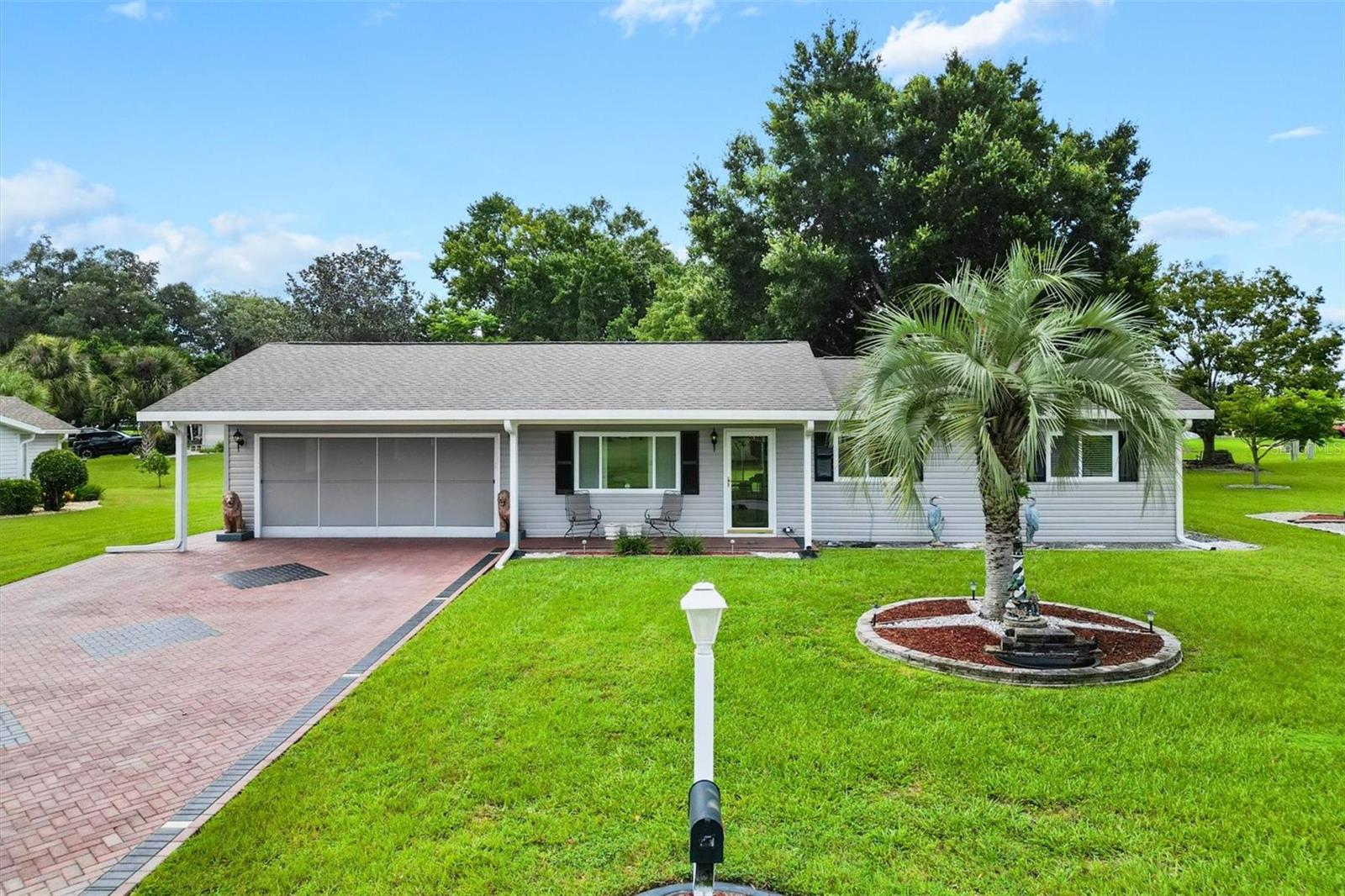 Golf course view! Every man’s dream workshop/garage/mancave! As you approach the home you will notice the beautiful curb appeal. Situated on a large corner with new vinyl siding, an extended brick-paved driveway and covered front porch. You will enjoy sitting out front and taking in the view of the ponds, lighthouse and golf course. When you enter the home, you will be greeted by a lovely lead glass entry door. You can see straight through the dining room to the 19x32 Florida room open to the rest of the home with heat and air. This lovely 2/2 pecan has been extended and very well cared for. The kitchen and both bathrooms have been updated. Beautiful, Italian ceramic tiled floors through the kitchen, living room, dining room, hallway & main bath. The master bedroom & Florida room both have new carpet. The 2nd bedroom, master bath and master walk-in closet all have new vinyl plank flooring. All of the furnishings will stay with the home. The added 22x40 garage with room for up to 4 vehicles or a boat and any of your toys. There is a golf cart area with a garage door for easy access. There are also built-in cabinets for more storage. This area has so much potential. The current owner finished the interior of the added garage with everything but heat & air. He replaced the HVAC in 2016 with a 3-ton unit to be able to heat & cool the entire area. The original 2 car garage has screen enclosure. The roof on the addition was completed in 2013, the roof on the original structure was replaced in 2007. NEW ROOF COMING IN NOVEMBER 2024!! Newer vinyl double pane windows were added in 2013. The siding was replaced in 2023. Conveniently located just 1 block from the pool & community center. Spruce Creek South, a 55+ Gated Golf Course Community just 2 miles north of The Villages. Community Center offering exercise facilities, saunas, dance and exercise classes, social activities, billiards, library and more! Golf cart access to shopping, physicians, pharmacies, and restaurants! DON’T MISS THIS HOME, CALL FOR YOU PRIVATE SHOWING TODAY.