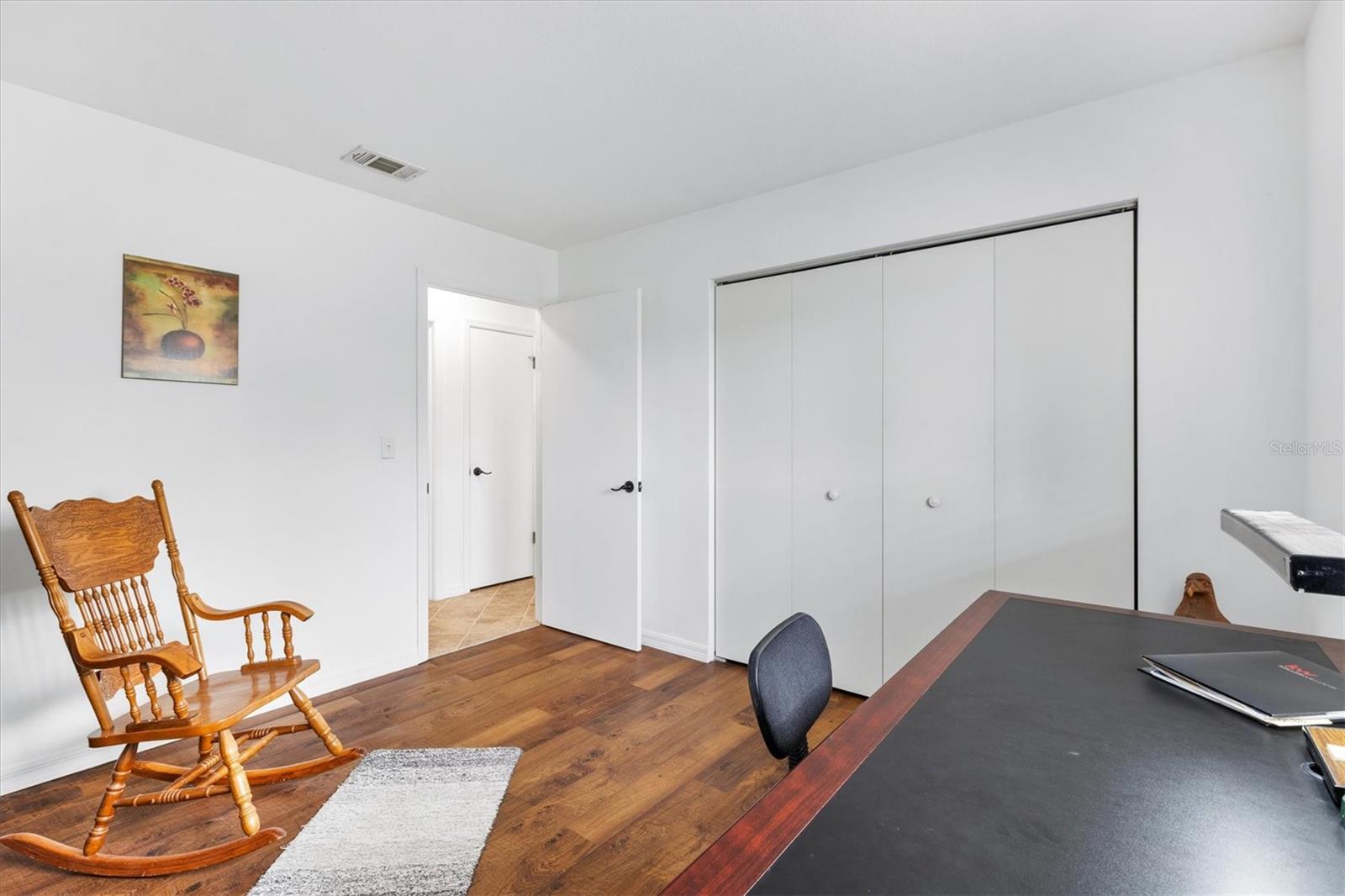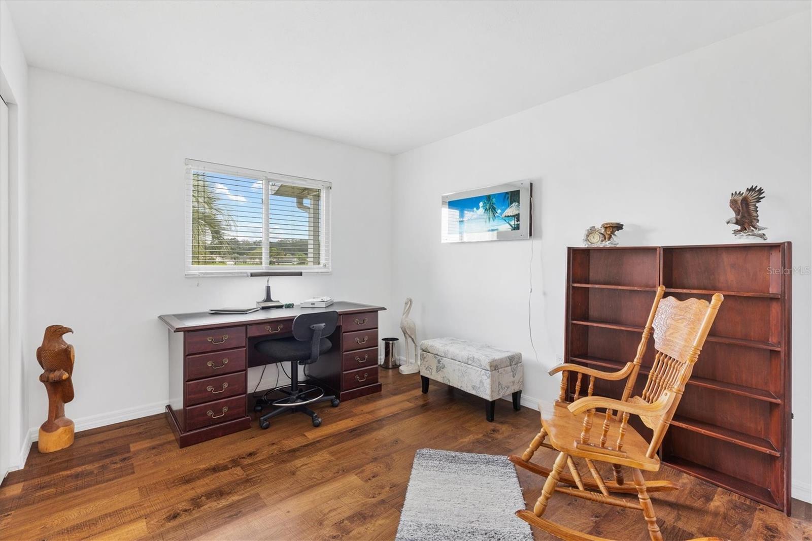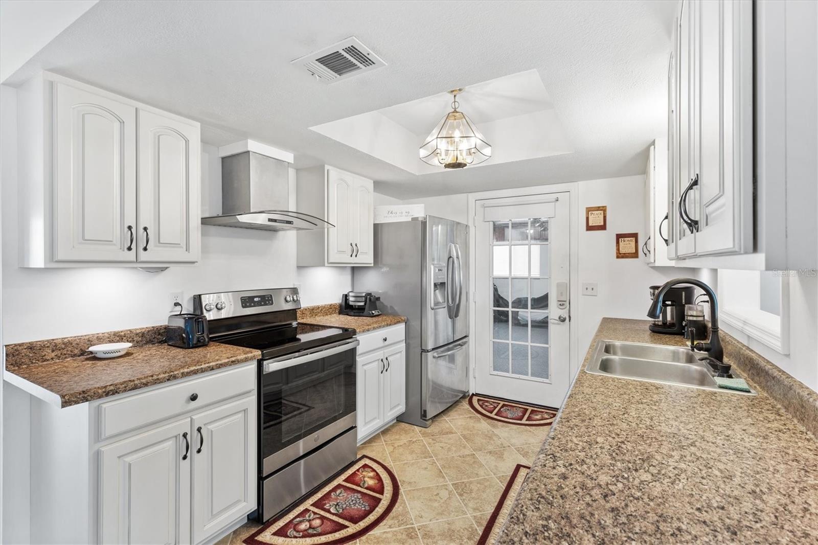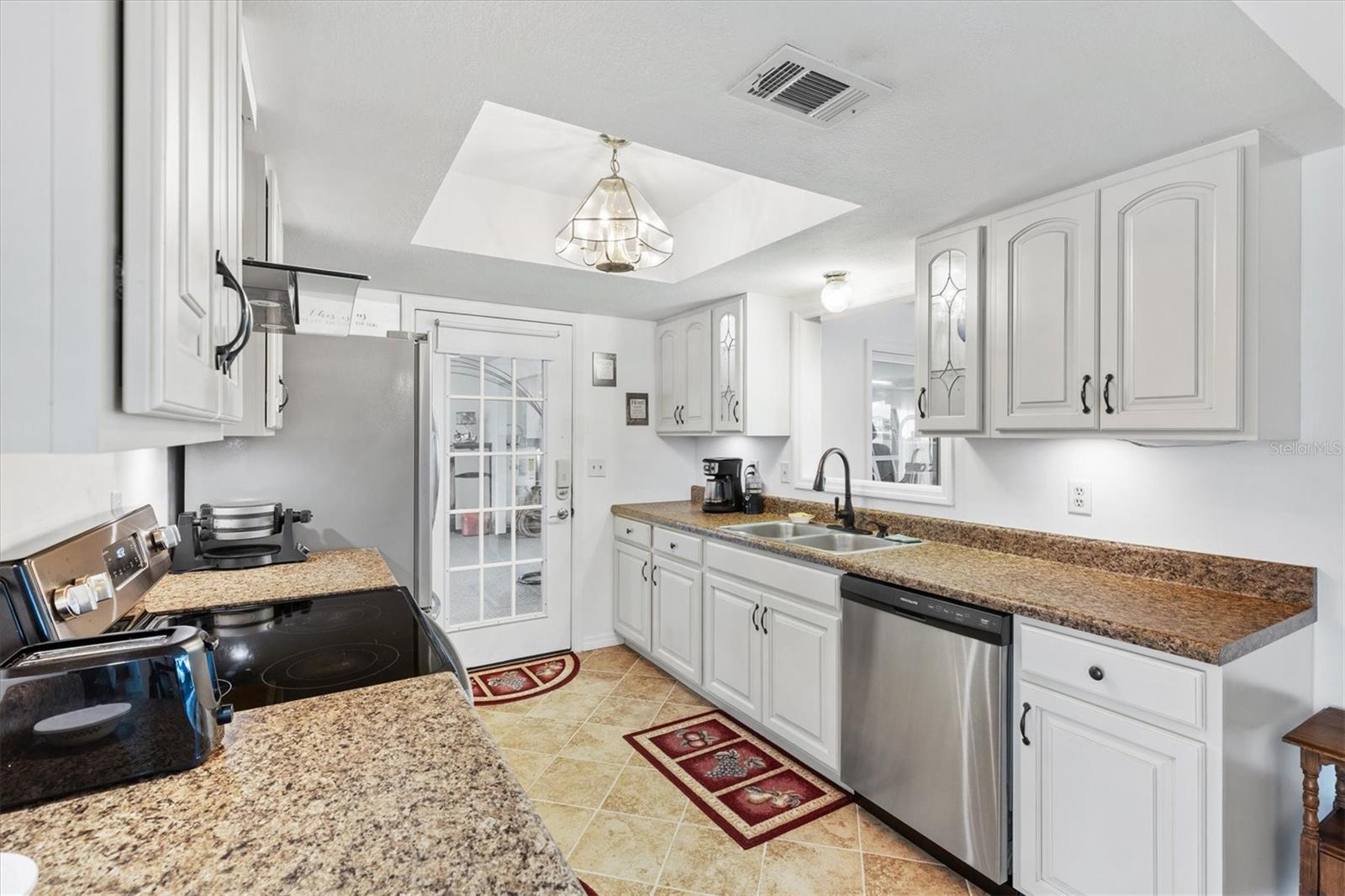Golf course view! Every man’s dream workshop/garage/mancave! As you approach the home you will notice the beautiful curb appeal. Situated on a large corner with new vinyl siding, an extended brick-paved driveway and covered front porch. You will enjoy sitting out front and taking in the view of the ponds, lighthouse and golf course. When you enter the home, you will be greeted by a lovely lead glass entry door. You can see straight through the dining room to the 19x32 Florida room open to the rest of the home with heat and air. This lovely 2/2 pecan has been extended and very well cared for. The kitchen and both bathrooms have been updated. Beautiful, Italian ceramic tiled floors through the kitchen, living room, dining room, hallway & main bath. The master bedroom & Florida room both have new carpet. The 2nd bedroom, master bath and master walk-in closet all have new vinyl plank flooring. All of the furnishings will stay with the home. The added 22x40 garage with room for up to 4 vehicles or a boat and any of your toys. There is a golf cart area with a garage door for easy access. There are also built-in cabinets for more storage. This area has so much potential. The current owner finished the interior of the added garage with everything but heat & air. He replaced the HVAC in 2016 with a 3-ton unit to be able to heat & cool the entire area. The original 2 car garage has screen enclosure. The roof on the addition was completed in 2013, the roof on the original structure was replaced in 2007. NEW ROOF COMING IN NOVEMBER 2024!! Newer vinyl double pane windows were added in 2013. The siding was replaced in 2023. Conveniently located just 1 block from the pool & community center. Spruce Creek South, a 55+ Gated Golf Course Community just 2 miles north of The Villages. Community Center offering exercise facilities, saunas, dance and exercise classes, social activities, billiards, library and more! Golf cart access to shopping, physicians, pharmacies, and restaurants! DON’T MISS THIS HOME, CALL FOR YOU PRIVATE SHOWING TODAY.