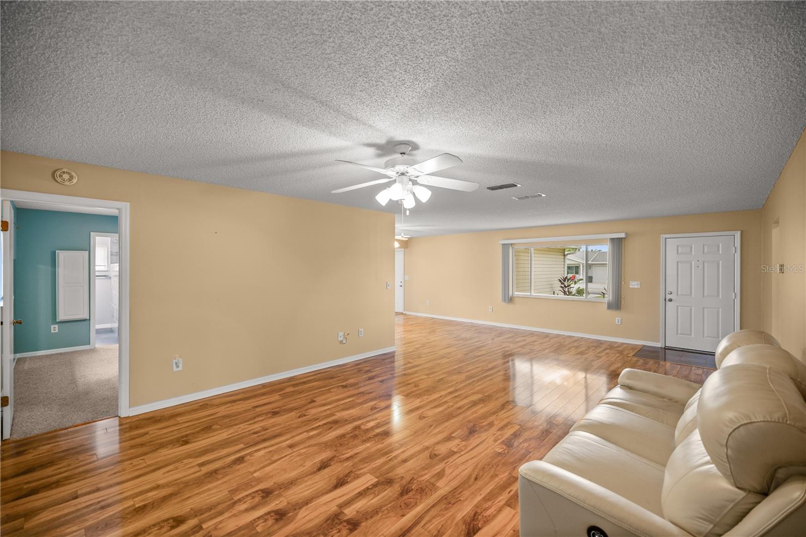 Priced to sell! Welcome to Spruce Creek South! Take advantage of this great opportunity to live in a 55+ golf community in a great location close to shopping, medical, entertainment by car or golf cart. No BOND!! A short drive to Spanish Springs square. The community offers many activities, do as little or as much as you would like. Dogwood model floor plan. This split 3 bedroom, 2 bath, 2 car garage has many updates throughout. Enjoy spending time in the enclosed lanai or sitting on the front covered porch. Open floor plan with living and dining area connected just off the kitchen for all of your entertaining needs. The living area also has an additional sitting area for added seating or to just relax while reading a book. Granite counter tops throughout. Beautiful walk in shower connected to the primary bedroom. Outdoor patio area perfect for your grill. Utility sink in the garage. . New Roof in 2022. New HVAC 2023. Home is move in ready, and available for a quick close!