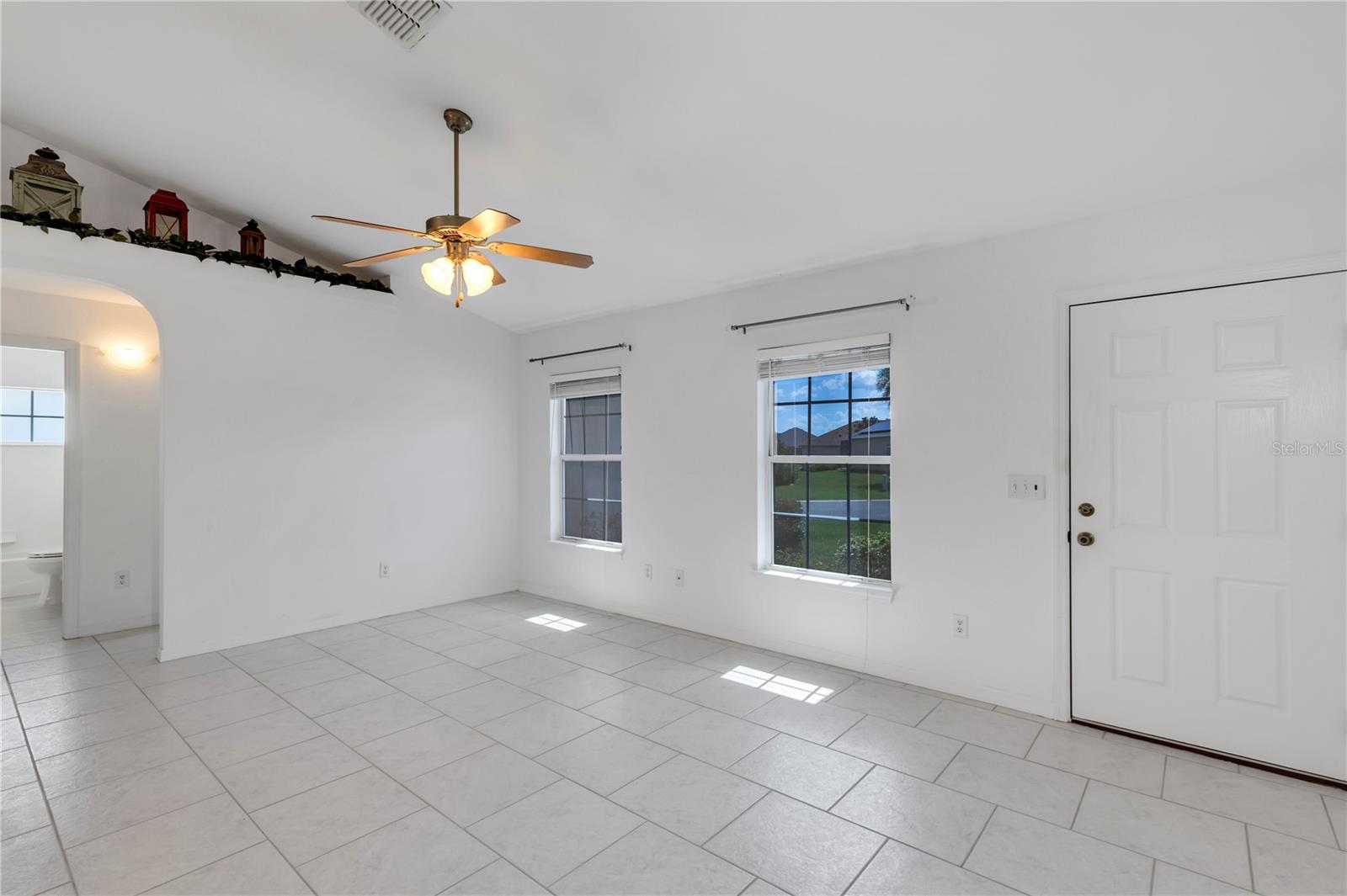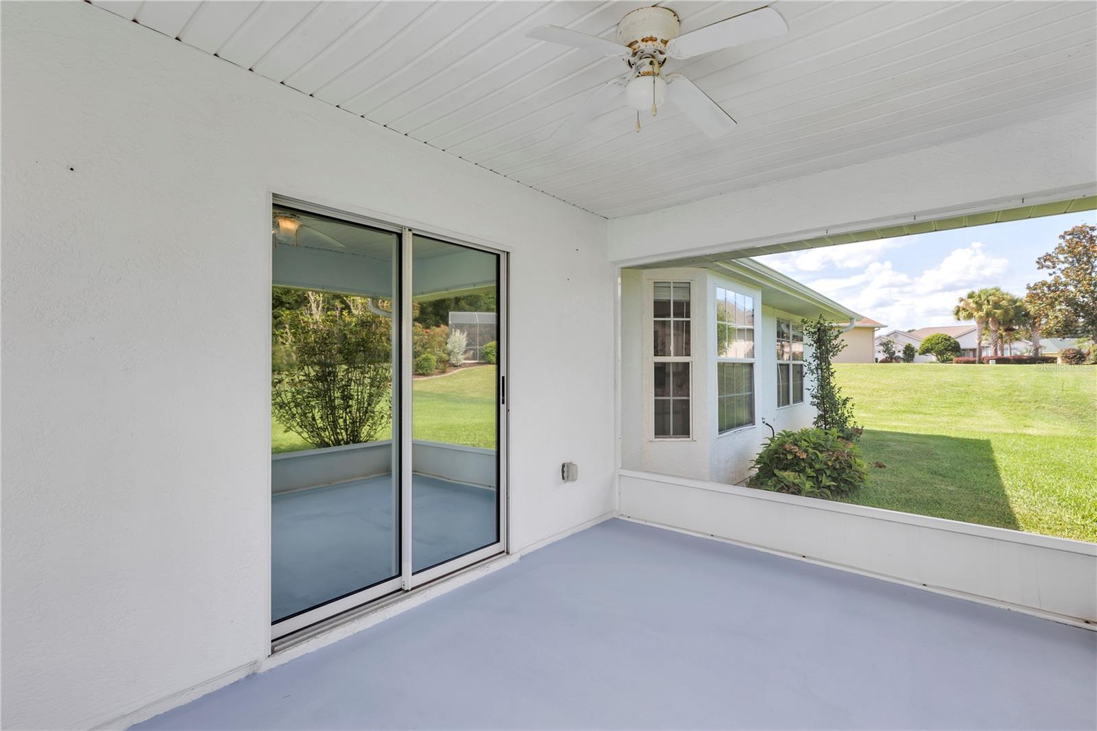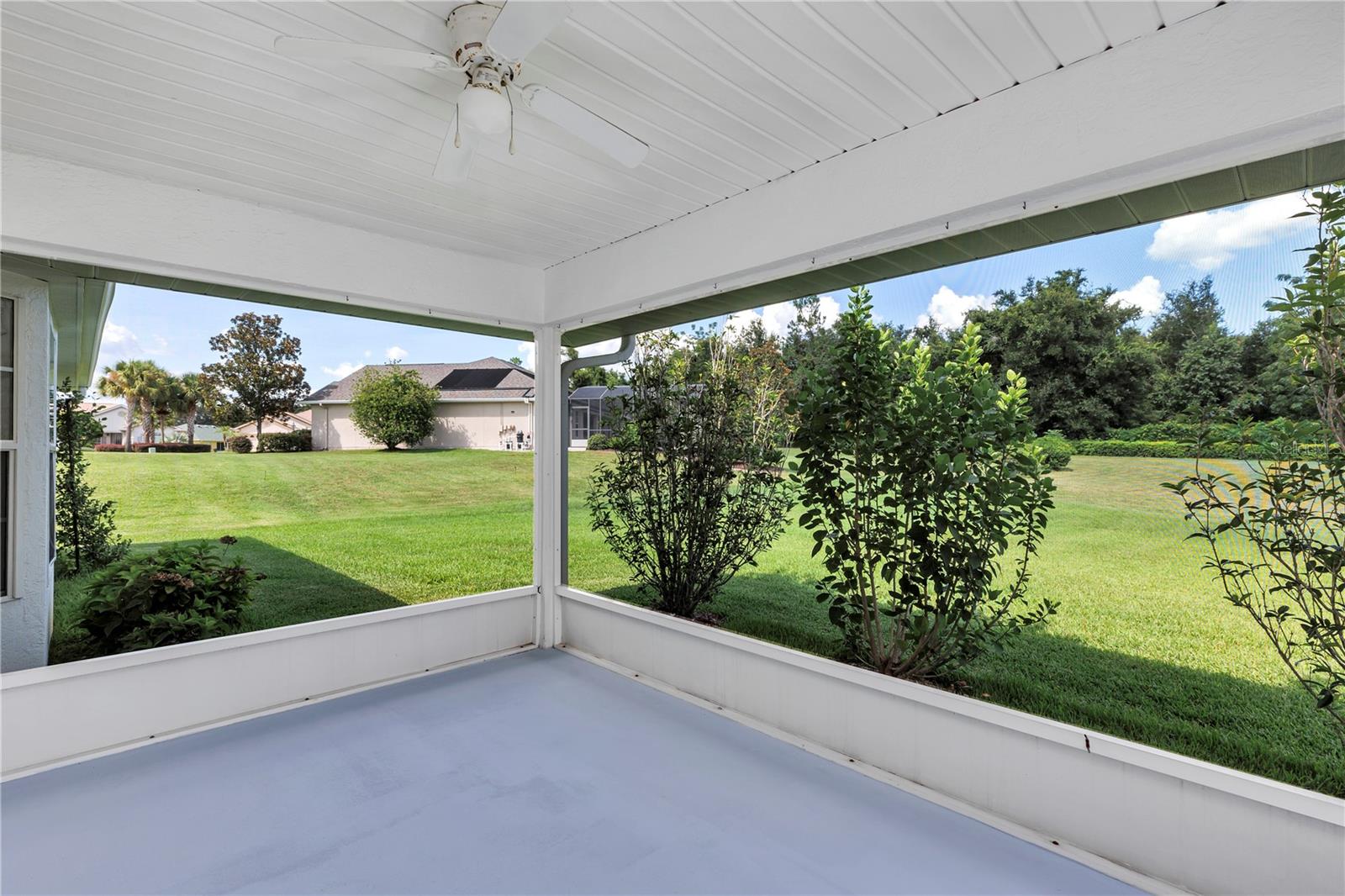 Come and check out this well-maintained “Lilly Model” 3 Bedroom / 2 Bath 1327 sq ft home is located in the highly desirable gated community of STONECREST 55+!!! So many wonderful things to say about this home. The roof is new (June 2024) and the HVAC system was recently replaced (AUG 2020). Fresh painted driveway. It has pristine ceramic flooring, beautifully manicured landscaping, and a coveted large yard with a view of nature. Once inside, you will feel like you are in a brand-new home with elegant ceramic tile throughout the center of the house encompassing the living room, dining room, and kitchen in a wonderfully open split plan. The kitchen has the color of snow cabinets, a pantry, new dishwasher, and lots of counter space. The open kitchen boasts a vaulted ceiling, breakfast nook, and a bump-out window, perfect for entertaining family and friends. This well thought out floor plan continues through to the spacious primary bedroom on the opposite side of the home, providing extra privacy and solitude. With walk-in closet and ensuite bathroom with vanity and tiled walk-in shower. On the guest-side of the home, when the family and grandkids visit, you have two carpeted bedrooms with plenty of closet space. Complete with a full bathroom with a tub and shower combination between the bedrooms the perfect configuration for making memories with loved ones. Relax and enjoy your morning coffee or evening libations on the screened-in patio overlooking a large greenspace and forested community property line while enjoying the extra privacy afforded by the double lot. The outdoor living space includes a patio for grilling out. Ideal for entertaining in this private backyard!! This home has separate laundry room conveniently adjoining a spacious two-car garage complete with storage cabinets. The attic space in the garage is great for storing holiday decorations and other precious mementos. There is peace of mind knowing your health is protected with a Nova whole-house water filtration system. Come and enjoy living in this 55+ golf community conveniently located close to The Villages and a plethora of shopping venues, medical providers & facilities, and entertainment galore. Stonecrest is also adjacent to Walmart, and just a bridge away by golf cart to The Villages Spanish Springs Town Square. Twenty-four -hour security and gated entrances ensure privacy and provide peace of mind in this warm and safe living environment. With so much to do you can pick from the Golf course, four pools (one in doors), over 100 clubs, pickleball, shuffleboard, & tennis courts, a craft room, a fitness center and a softball field. Please do not hesitate to schedule a showing