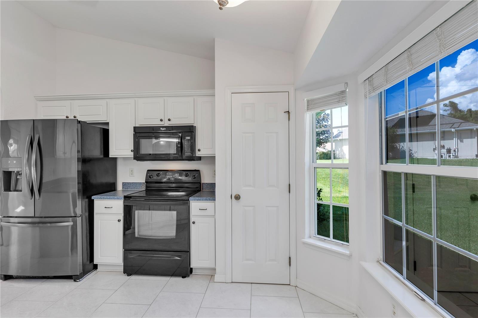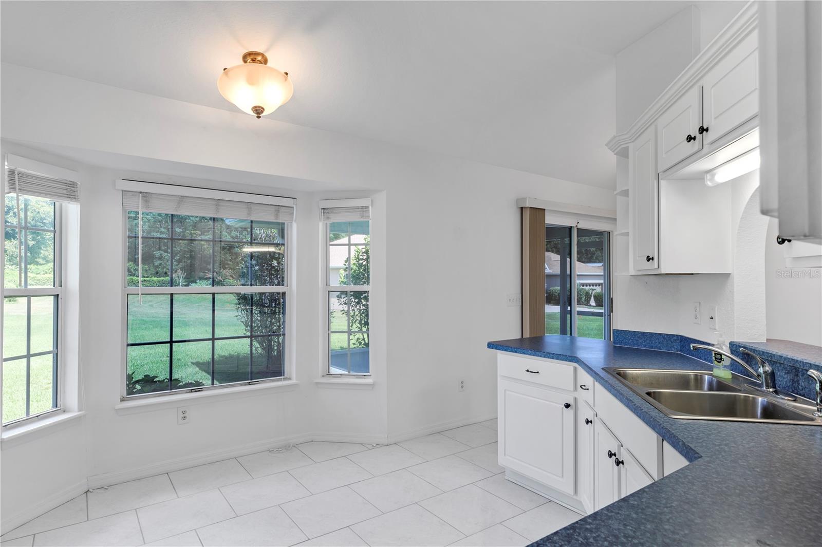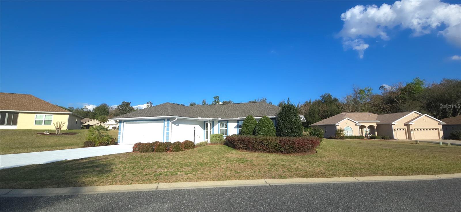 Come and check out this well-maintained “Lilly Model” 3 Bedroom / 2 Bath 1327 sq ft home is located in the highly desirable gated community of STONECREST 55+!!! So many wonderful things to say about this home. The roof is new (June 2024) and the HVAC system was recently replaced (AUG 2020). Fresh painted driveway. It has pristine ceramic flooring, beautifully manicured landscaping, and a coveted large yard with a view of nature. Once inside, you will feel like you are in a brand-new home with elegant ceramic tile throughout the center of the house encompassing the living room, dining room, and kitchen in a wonderfully open split plan. The kitchen has the color of snow cabinets, a pantry, new dishwasher, and lots of counter space. The open kitchen boasts a vaulted ceiling, breakfast nook, and a bump-out window, perfect for entertaining family and friends. This well thought out floor plan continues through to the spacious primary bedroom on the opposite side of the home, providing extra privacy and solitude. With walk-in closet and ensuite bathroom with vanity and tiled walk-in shower. On the guest-side of the home, when the family and grandkids visit, you have two carpeted bedrooms with plenty of closet space. Complete with a full bathroom with a tub and shower combination between the bedrooms the perfect configuration for making memories with loved ones. Relax and enjoy your morning coffee or evening libations on the screened-in patio overlooking a large greenspace and forested community property line while enjoying the extra privacy afforded by the double lot. The outdoor living space includes a patio for grilling out. Ideal for entertaining in this private backyard!! This home has separate laundry room conveniently adjoining a spacious two-car garage complete with storage cabinets. The attic space in the garage is great for storing holiday decorations and other precious mementos. There is peace of mind knowing your health is protected with a Nova whole-house water filtration system. Come and enjoy living in this 55+ golf community conveniently located close to The Villages and a plethora of shopping venues, medical providers & facilities, and entertainment galore. Stonecrest is also adjacent to Walmart, and just a bridge away by golf cart to The Villages Spanish Springs Town Square. Twenty-four -hour security and gated entrances ensure privacy and provide peace of mind in this warm and safe living environment. With so much to do you can pick from the Golf course, four pools (one in doors), over 100 clubs, pickleball, shuffleboard, & tennis courts, a craft room, a fitness center and a softball field. Please do not hesitate to schedule a showing
