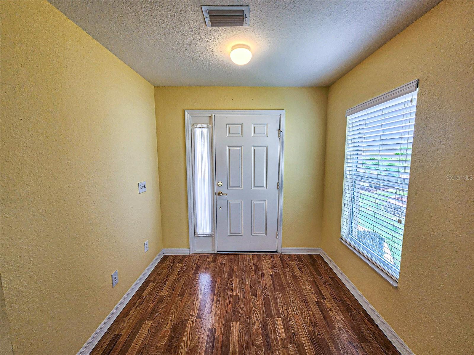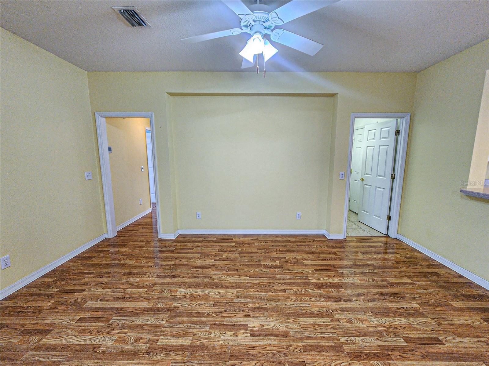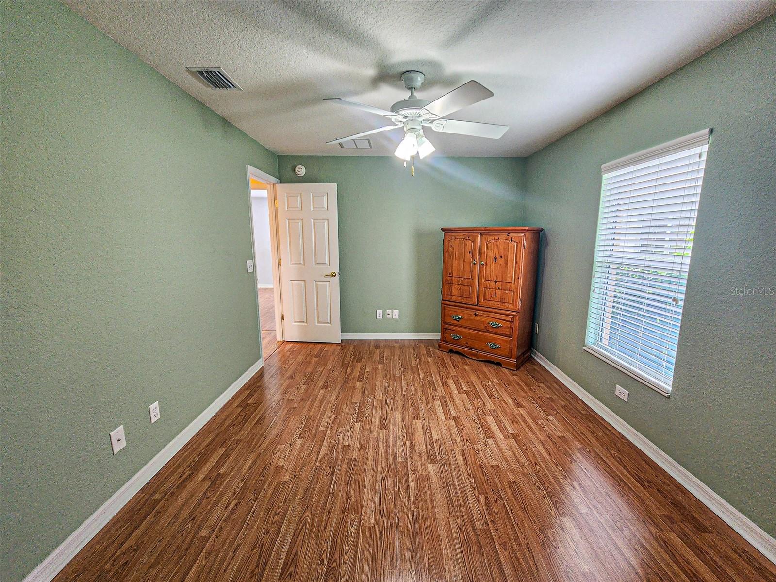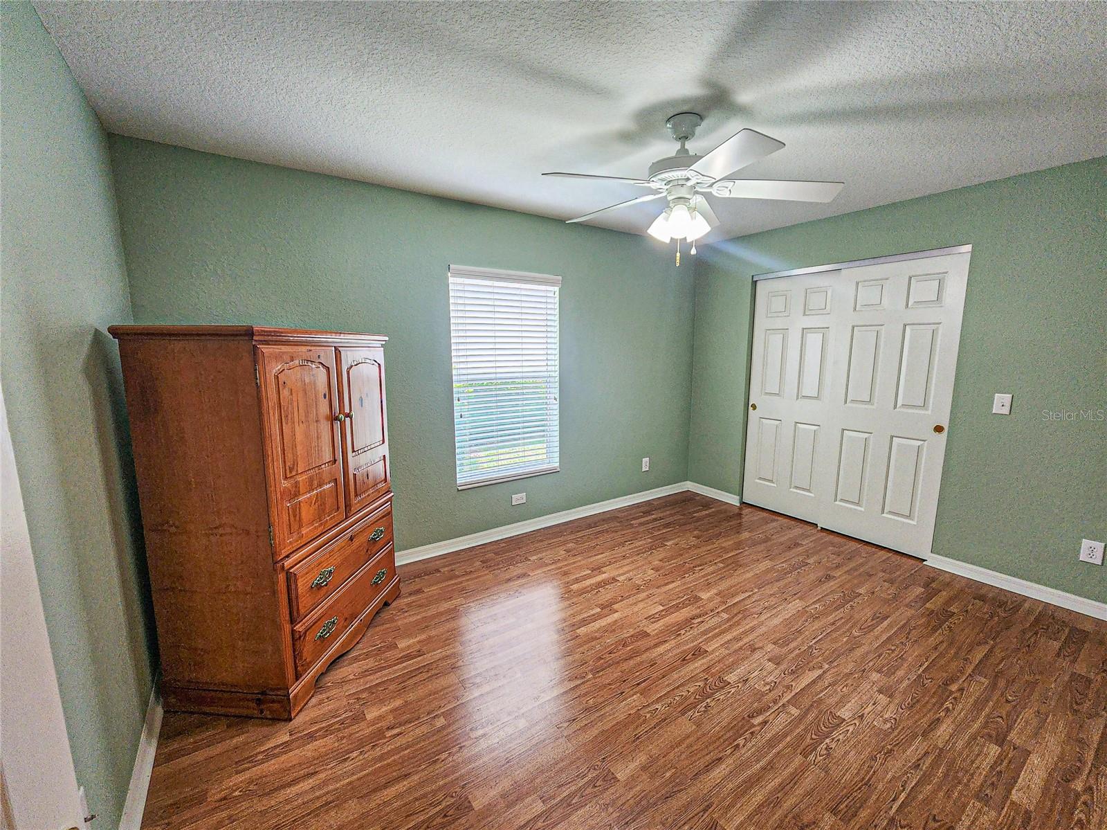 Welcome to this charming Challedon model home, nestled in the highly sought-after 55+ Del Webb Golf & Country Club Community. This meticulously maintained home offers fantastic curb appeal with textured driveway, sidewalk, hacienda landscape wall, and screen door on the garage. Step inside to a bright and inviting living room with combined dining area and easy to maintain laminate flooring. The front and inviting kitchen, is enhanced by a beautiful bow window that floods the space with natural light into the eat in area. The kitchen cabinets feature convenient pull-outs, a large pantry, and a breakfast bar, perfect for casual meals. The formal dining and living room combo are ideal for entertaining. The primary suite is spacious, with easy to maintain laminate floor, while the primary bath boasts double sinks, walk-in shower, tile floor, and plenty of storage. The guest bedroom and bath are equally comfortable for your guests. Enjoy the benefits of a private irrigation well, designed to help save on water costs. The garage comes with an epoxy paint finish for easy clean up, while the HVAC was replaced in 2020, re-shingled in 2014, and the home has been re-piped for peace of mind. Enjoy the acrylic window enclosed Lania year round with its beautiful view of the tranquil Florida oasis with landscaped islands. Don't miss this opportunity to enjoy resort-style living in a vibrant 55+ community!