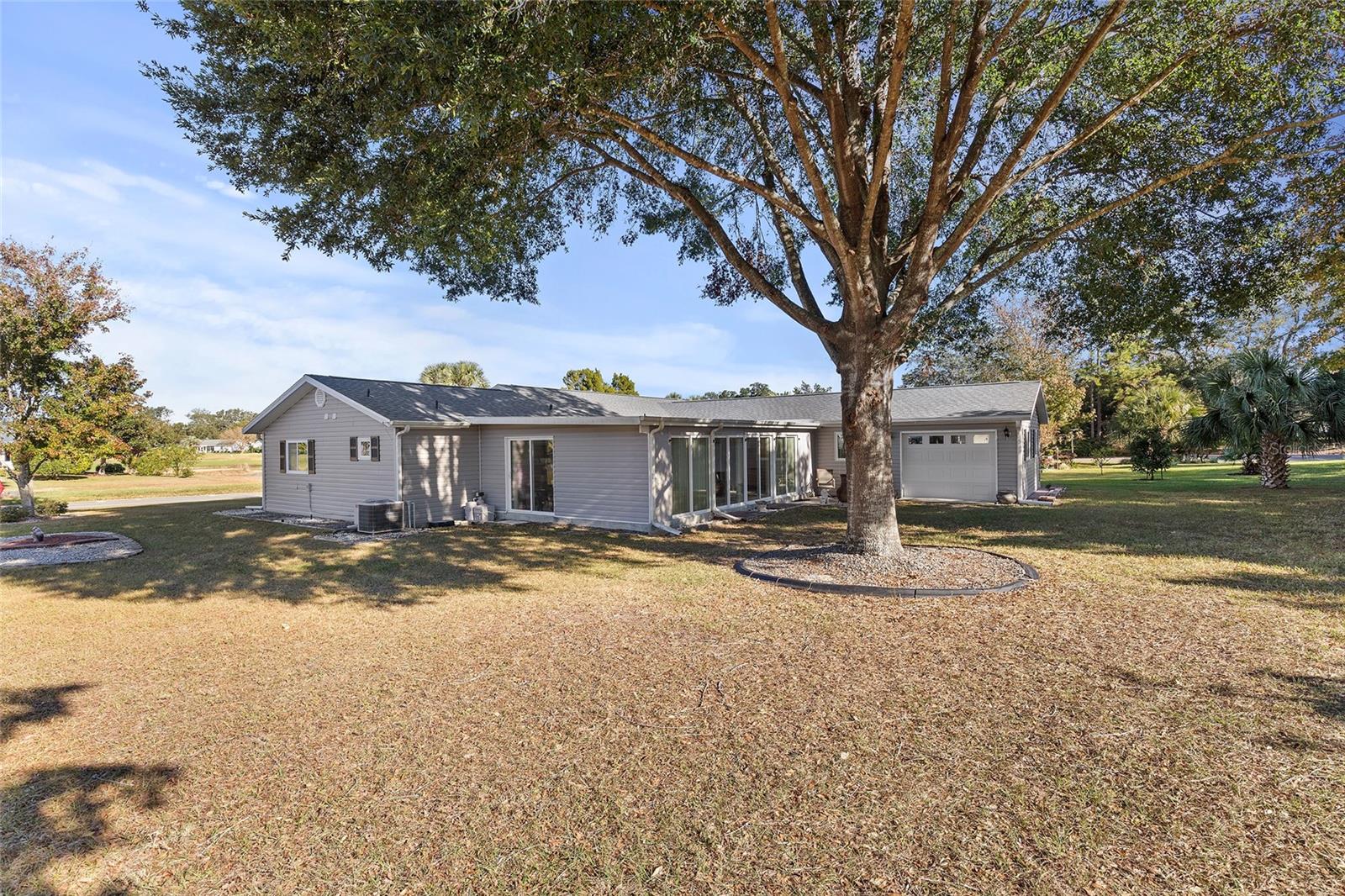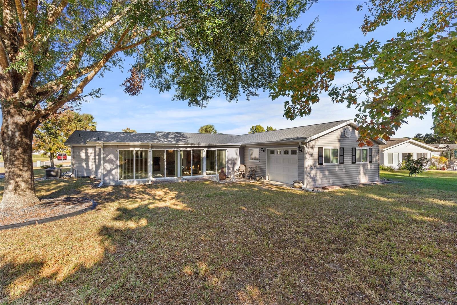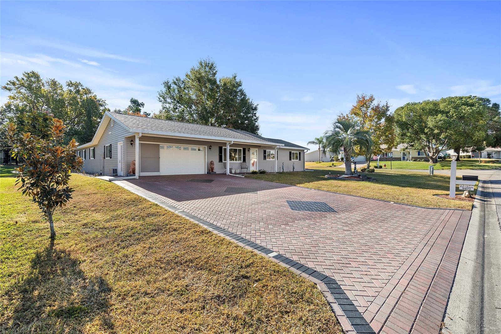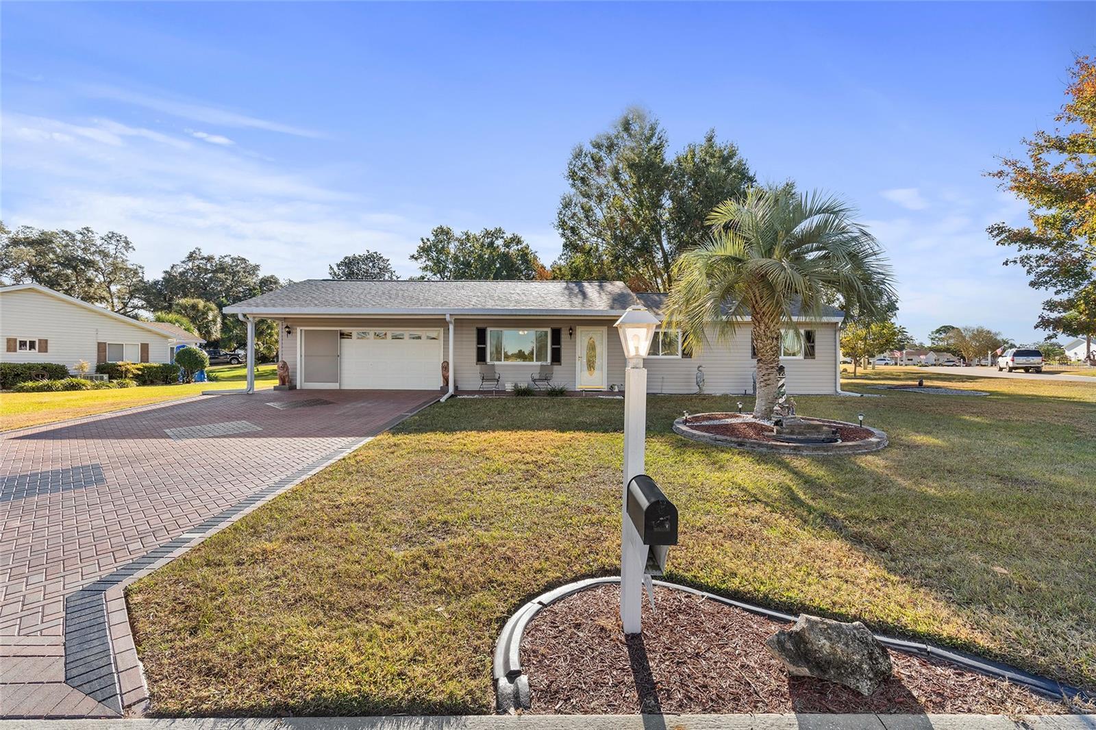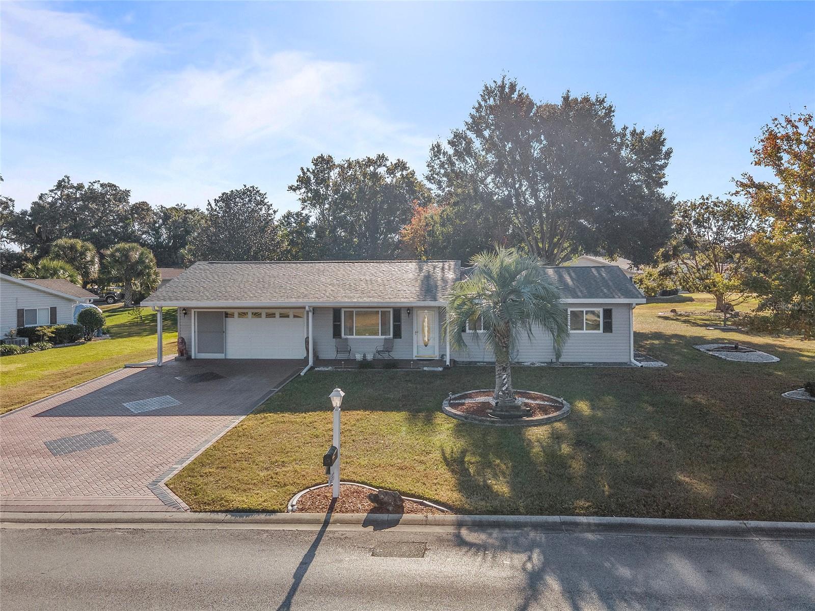 EXCEPTIONAL GARAGE AND WORKSHOP SPACE IDEAL FOR HOBBYISTS OR COLLECTORS.***NEW ROOF 2024, HVAC SYSTEM 2016, NEW VINYL SIDING 2023*** Meticulously maintained home in the sought after 55+ Gated Golf Community of SPRUCE CREEK SOUTH, with all the amenities, adjacent to The Villages, Florida. This home offers the perfect combination of charm, comfort, and functionality. SET ON A SPACIOUS CORNER LOT, the home’s exterior immediately catches the eye with its recent VINYL SIDING updated in (2023), extended brick paved driveway, and a welcoming covered front porch. THE OUTDOOR SPACE IS PERFECT FOR ENJOYING SERENE VIEWS OF THE NEARBY PONDS, A PICTURESQUE LIGHTHOUSE ON THE SIGNATURE HOLE OF THE LINKS GOLF COURSE. Stepping inside, the home opens with a welcoming lead glass entry door that leads into a thoughtfully extended and updated interior. A highlight of the home is the expansive Florida room, measuring 19 x 32 feet, which seamlessly connects to the main living space and is equipped with heat and air for year round comfort. The interior features Italian ceramic tile flooring through the kitchen, living and dining areas, hallway, and main bath, while the master bedroom and Florida room feature newly installed carpet. Updates to the second bedroom, master bath, and walk-in closet include new stylish and durable vinyl plank flooring. Both the kitchen and bathrooms have been tastefully updated, blending modern style with practicality. Vinyl double pane windows, installed in (2013), provide energy efficiency while allowing plenty of natural light. For added convenience, all furnishings will remain with the home, making it truly move-in ready. One of the standout features of this property is the oversized 22 x 40 foot garage. Designed to accommodate up to four vehicles or a boat, this space includes a dedicated golf cart area with its own garage door, as well as built-in cabinets for organized storage. The space is ready for a variety of uses and has been finished with care, though it is not yet heated or cooled. A 3-ton HVAC system, installed in (2016), is capable of extending climate control to this area if desired. The original two car garage also features a convenient screen enclosure. This home has seen numerous updates, including a NEW ROOF (2024). Its location within Spruce Creek South places it just a block from the community pool and center, ensuring convenient access to the neighborhood’s many amenities. Residents of Spruce Creek South enjoy a vibrant lifestyle with amenities like fitness facilities, saunas, organized classes, a library, and social activities. Golf cart access provides easy travel to local shopping, dining, medical offices, and more. This home offers a rare opportunity to enjoy the best of Florida living in an exceptional community. Schedule your private showing today to experience this unique property.