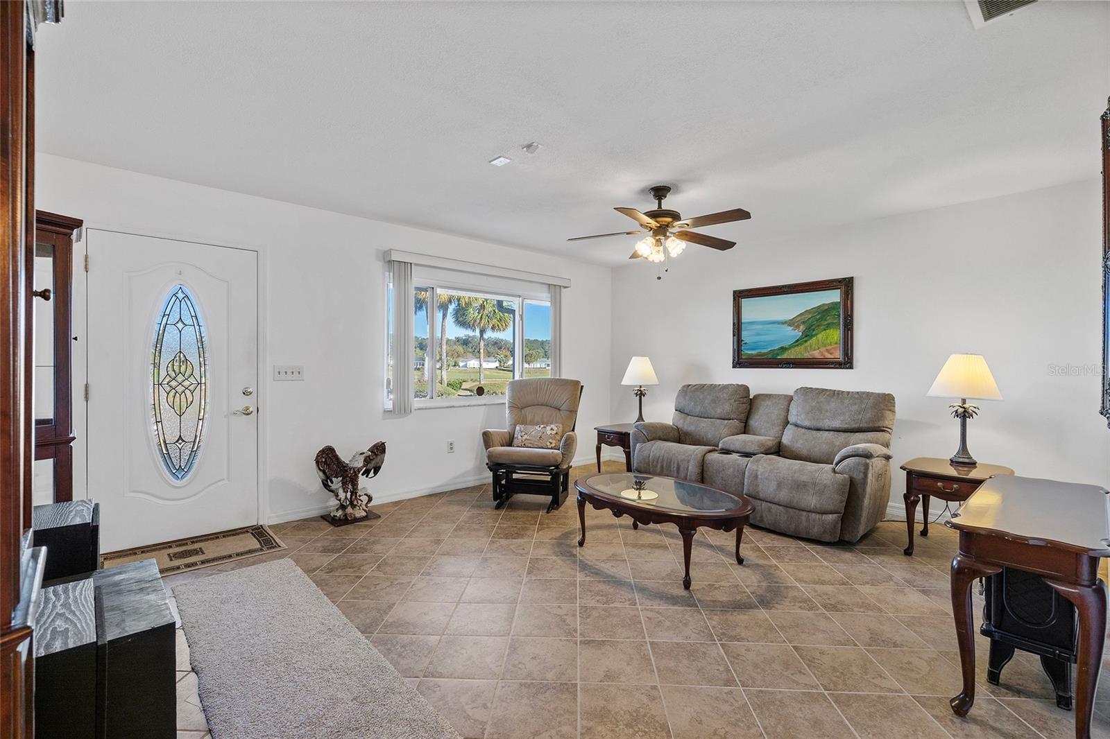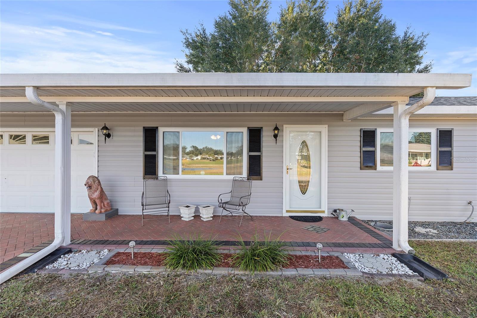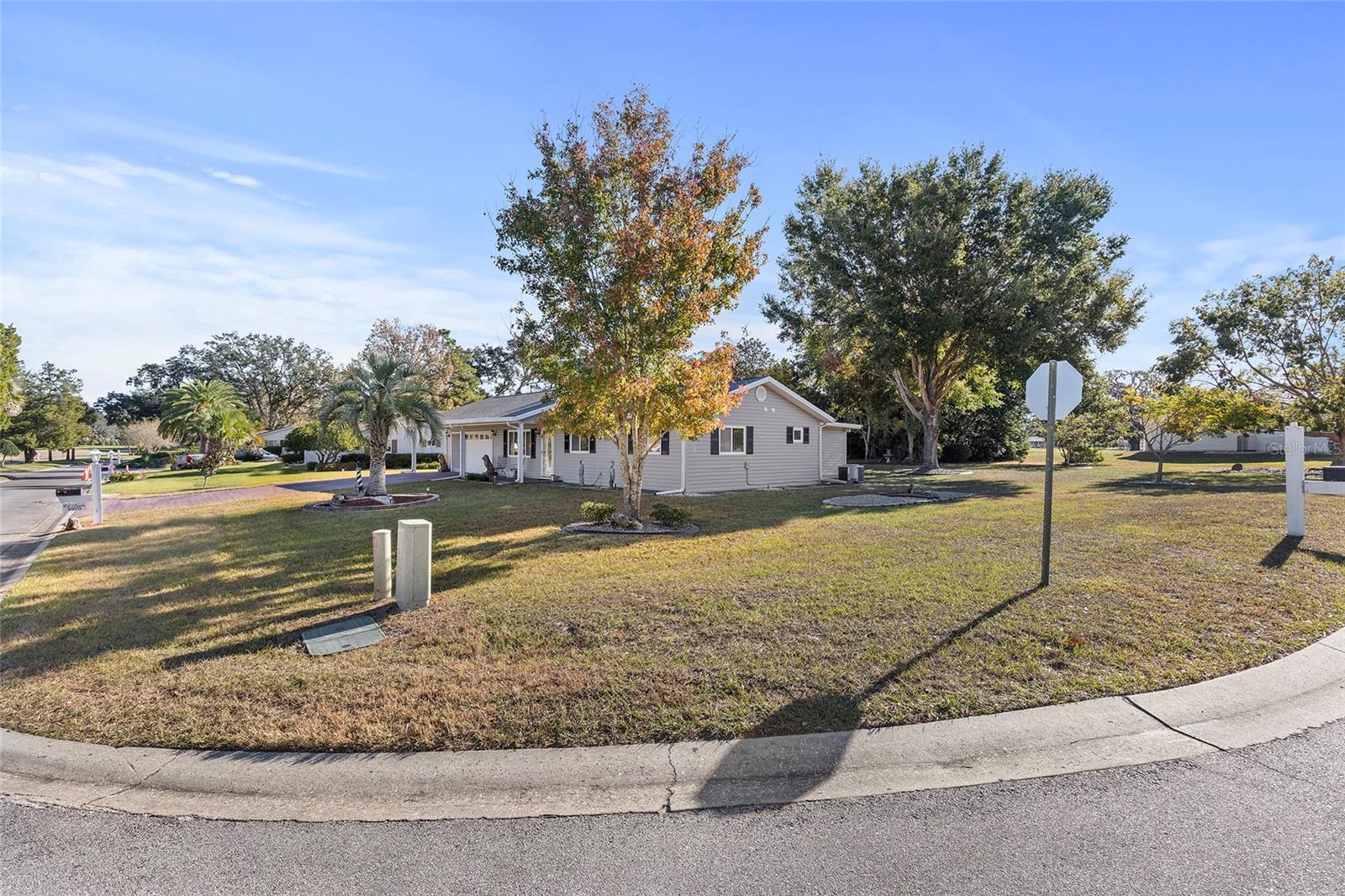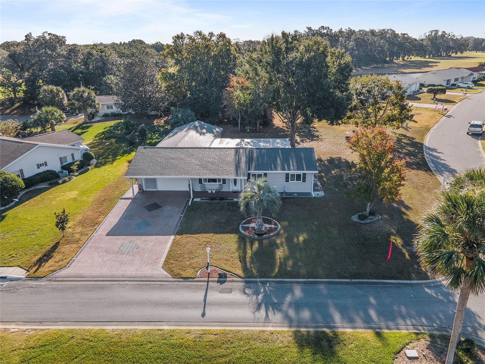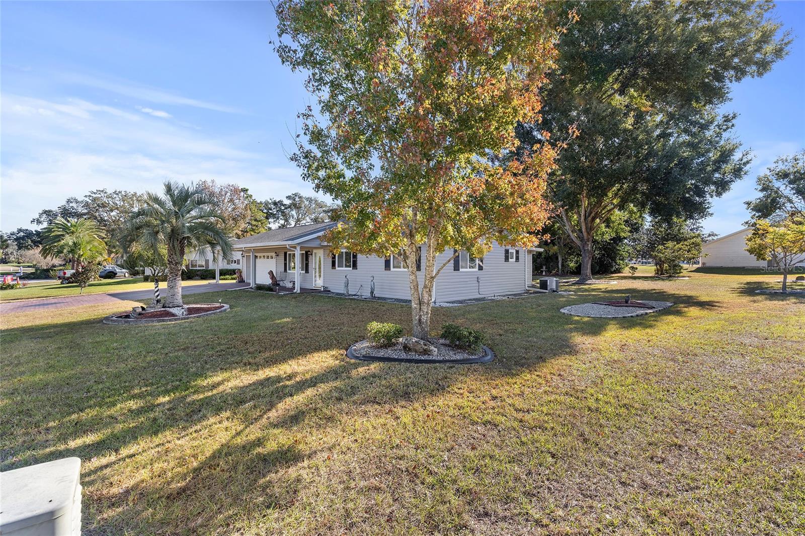 EXCEPTIONAL GARAGE AND WORKSHOP SPACE IDEAL FOR HOBBYISTS OR COLLECTORS.***NEW ROOF 2024, HVAC SYSTEM 2016, NEW VINYL SIDING 2023*** Meticulously maintained home in the sought after 55+ Gated Golf Community of SPRUCE CREEK SOUTH, with all the amenities, adjacent to The Villages, Florida. This home offers the perfect combination of charm, comfort, and functionality. SET ON A SPACIOUS CORNER LOT, the home’s exterior immediately catches the eye with its recent VINYL SIDING updated in (2023), extended brick paved driveway, and a welcoming covered front porch. THE OUTDOOR SPACE IS PERFECT FOR ENJOYING SERENE VIEWS OF THE NEARBY PONDS, A PICTURESQUE LIGHTHOUSE ON THE SIGNATURE HOLE OF THE LINKS GOLF COURSE. Stepping inside, the home opens with a welcoming lead glass entry door that leads into a thoughtfully extended and updated interior. A highlight of the home is the expansive Florida room, measuring 19 x 32 feet, which seamlessly connects to the main living space and is equipped with heat and air for year round comfort. The interior features Italian ceramic tile flooring through the kitchen, living and dining areas, hallway, and main bath, while the master bedroom and Florida room feature newly installed carpet. Updates to the second bedroom, master bath, and walk-in closet include new stylish and durable vinyl plank flooring. Both the kitchen and bathrooms have been tastefully updated, blending modern style with practicality. Vinyl double pane windows, installed in (2013), provide energy efficiency while allowing plenty of natural light. For added convenience, all furnishings will remain with the home, making it truly move-in ready. One of the standout features of this property is the oversized 22 x 40 foot garage. Designed to accommodate up to four vehicles or a boat, this space includes a dedicated golf cart area with its own garage door, as well as built-in cabinets for organized storage. The space is ready for a variety of uses and has been finished with care, though it is not yet heated or cooled. A 3-ton HVAC system, installed in (2016), is capable of extending climate control to this area if desired. The original two car garage also features a convenient screen enclosure. This home has seen numerous updates, including a NEW ROOF (2024). Its location within Spruce Creek South places it just a block from the community pool and center, ensuring convenient access to the neighborhood’s many amenities. Residents of Spruce Creek South enjoy a vibrant lifestyle with amenities like fitness facilities, saunas, organized classes, a library, and social activities. Golf cart access provides easy travel to local shopping, dining, medical offices, and more. This home offers a rare opportunity to enjoy the best of Florida living in an exceptional community. Schedule your private showing today to experience this unique property.