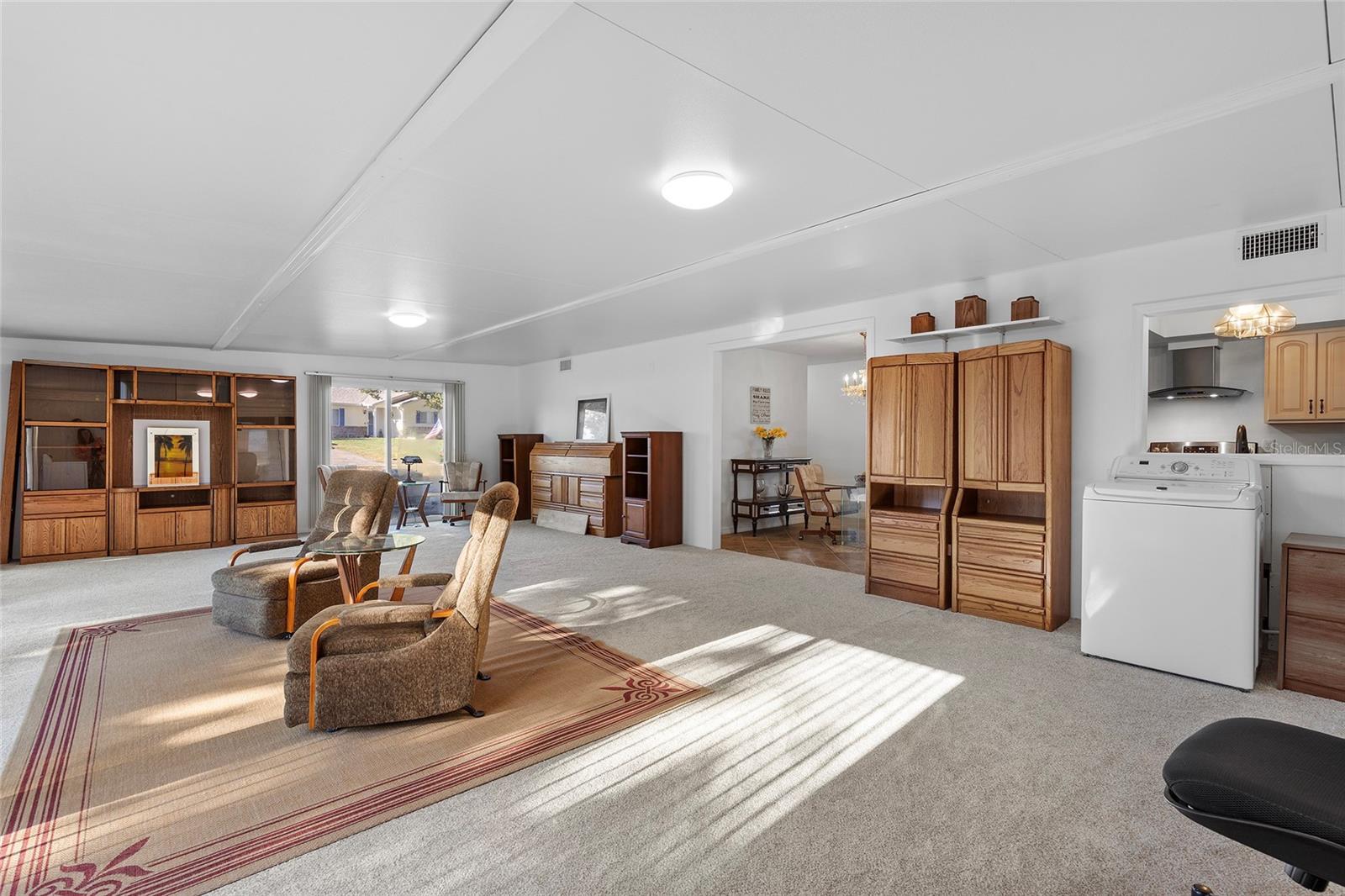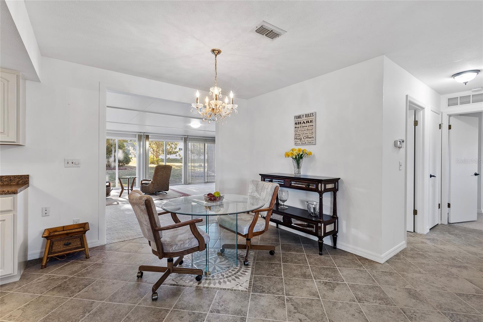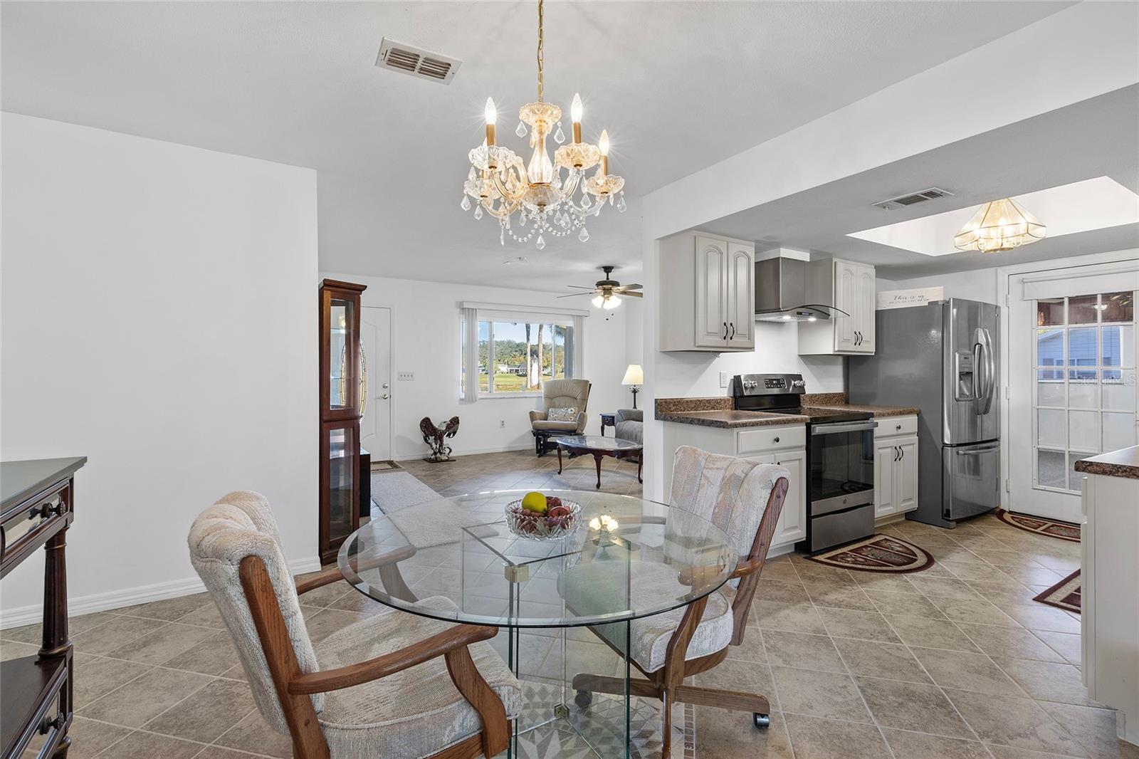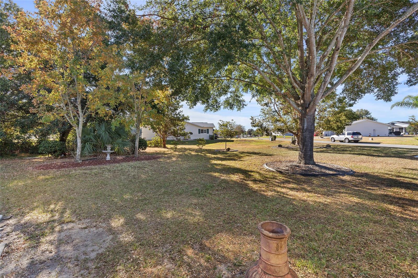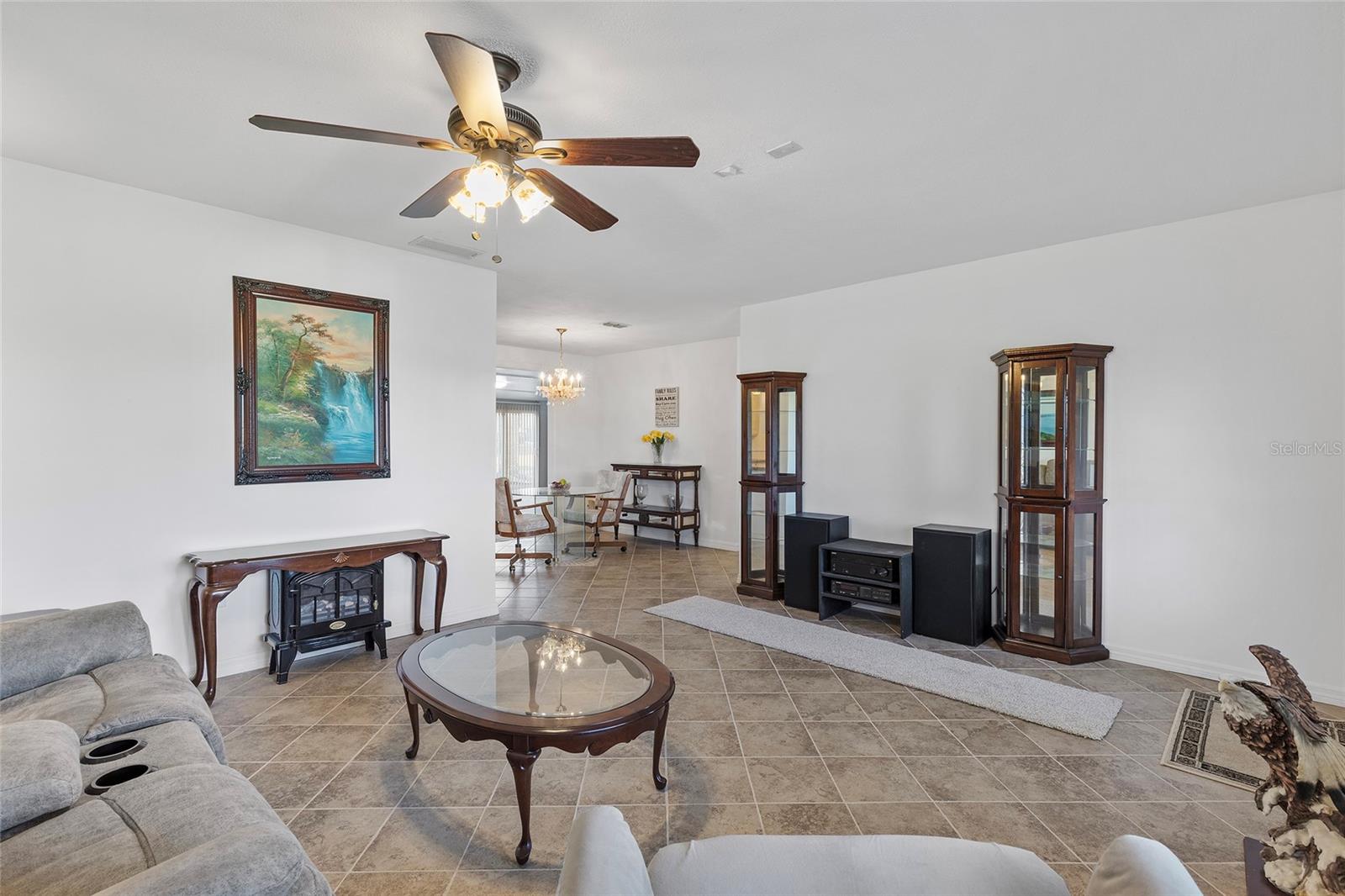 EXCEPTIONAL GARAGE AND WORKSHOP SPACE IDEAL FOR HOBBYISTS OR COLLECTORS.***NEW ROOF 2024, HVAC SYSTEM 2016, NEW VINYL SIDING 2023*** Meticulously maintained home in the sought after 55+ Gated Golf Community of SPRUCE CREEK SOUTH, with all the amenities, adjacent to The Villages, Florida. This home offers the perfect combination of charm, comfort, and functionality. SET ON A SPACIOUS CORNER LOT, the home’s exterior immediately catches the eye with its recent VINYL SIDING updated in (2023), extended brick paved driveway, and a welcoming covered front porch. THE OUTDOOR SPACE IS PERFECT FOR ENJOYING SERENE VIEWS OF THE NEARBY PONDS, A PICTURESQUE LIGHTHOUSE ON THE SIGNATURE HOLE OF THE LINKS GOLF COURSE. Stepping inside, the home opens with a welcoming lead glass entry door that leads into a thoughtfully extended and updated interior. A highlight of the home is the expansive Florida room, measuring 19 x 32 feet, which seamlessly connects to the main living space and is equipped with heat and air for year round comfort. The interior features Italian ceramic tile flooring through the kitchen, living and dining areas, hallway, and main bath, while the master bedroom and Florida room feature newly installed carpet. Updates to the second bedroom, master bath, and walk-in closet include new stylish and durable vinyl plank flooring. Both the kitchen and bathrooms have been tastefully updated, blending modern style with practicality. Vinyl double pane windows, installed in (2013), provide energy efficiency while allowing plenty of natural light. For added convenience, all furnishings will remain with the home, making it truly move-in ready. One of the standout features of this property is the oversized 22 x 40 foot garage. Designed to accommodate up to four vehicles or a boat, this space includes a dedicated golf cart area with its own garage door, as well as built-in cabinets for organized storage. The space is ready for a variety of uses and has been finished with care, though it is not yet heated or cooled. A 3-ton HVAC system, installed in (2016), is capable of extending climate control to this area if desired. The original two car garage also features a convenient screen enclosure. This home has seen numerous updates, including a NEW ROOF (2024). Its location within Spruce Creek South places it just a block from the community pool and center, ensuring convenient access to the neighborhood’s many amenities. Residents of Spruce Creek South enjoy a vibrant lifestyle with amenities like fitness facilities, saunas, organized classes, a library, and social activities. Golf cart access provides easy travel to local shopping, dining, medical offices, and more. This home offers a rare opportunity to enjoy the best of Florida living in an exceptional community. Schedule your private showing today to experience this unique property.