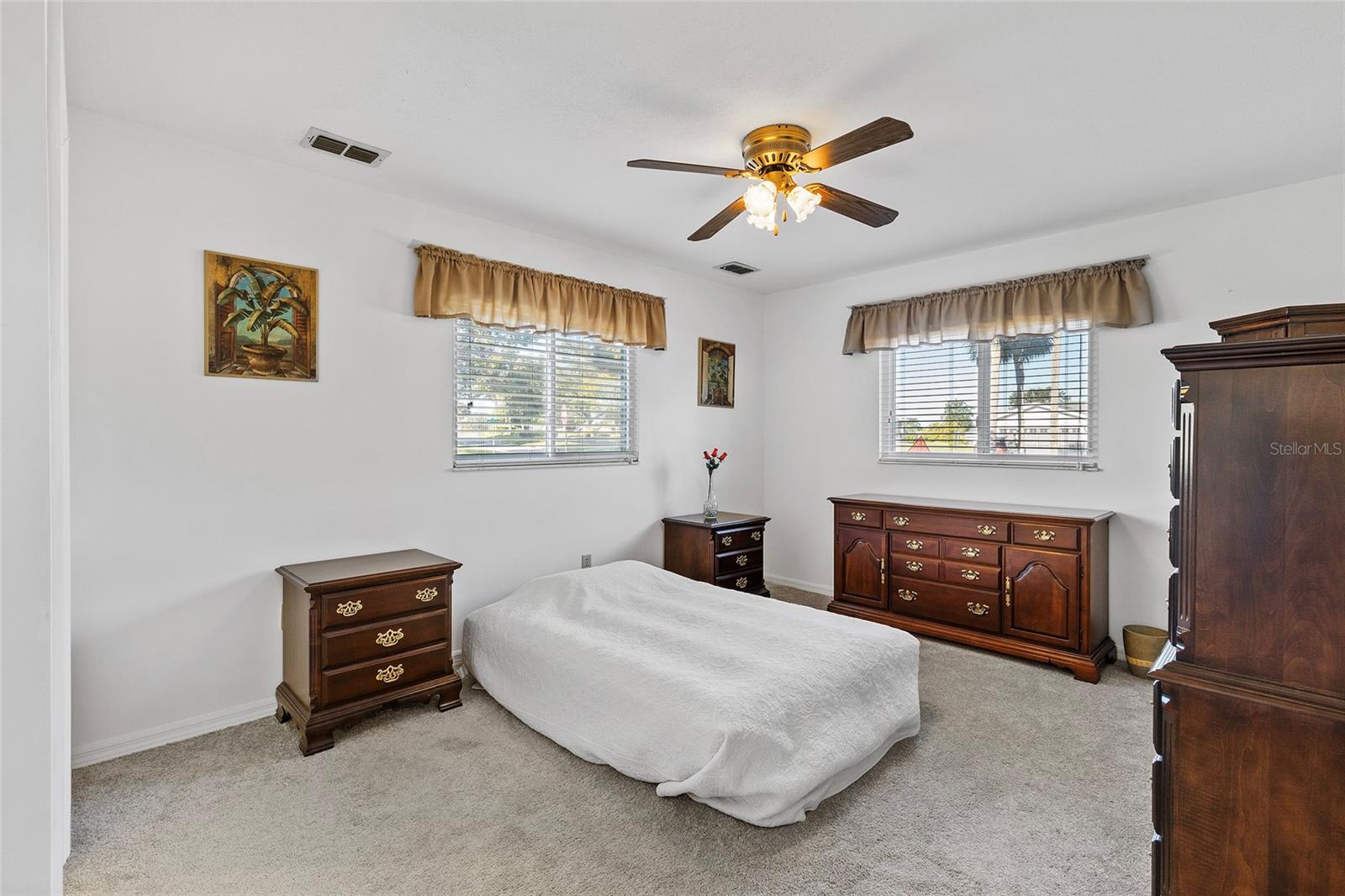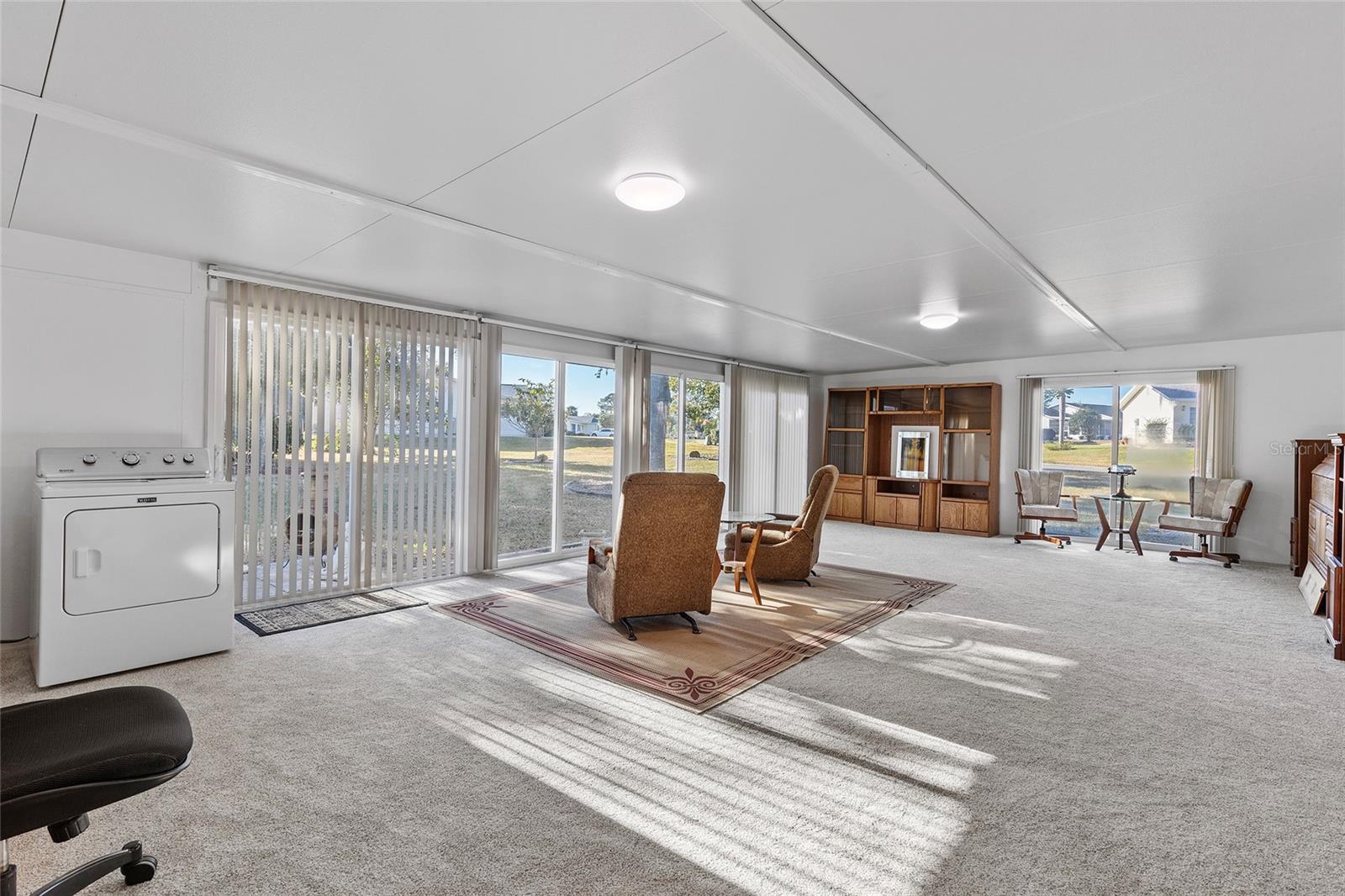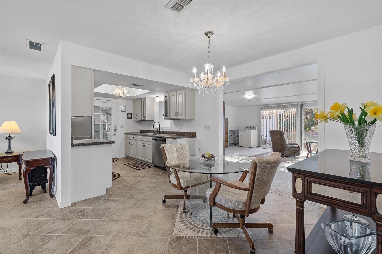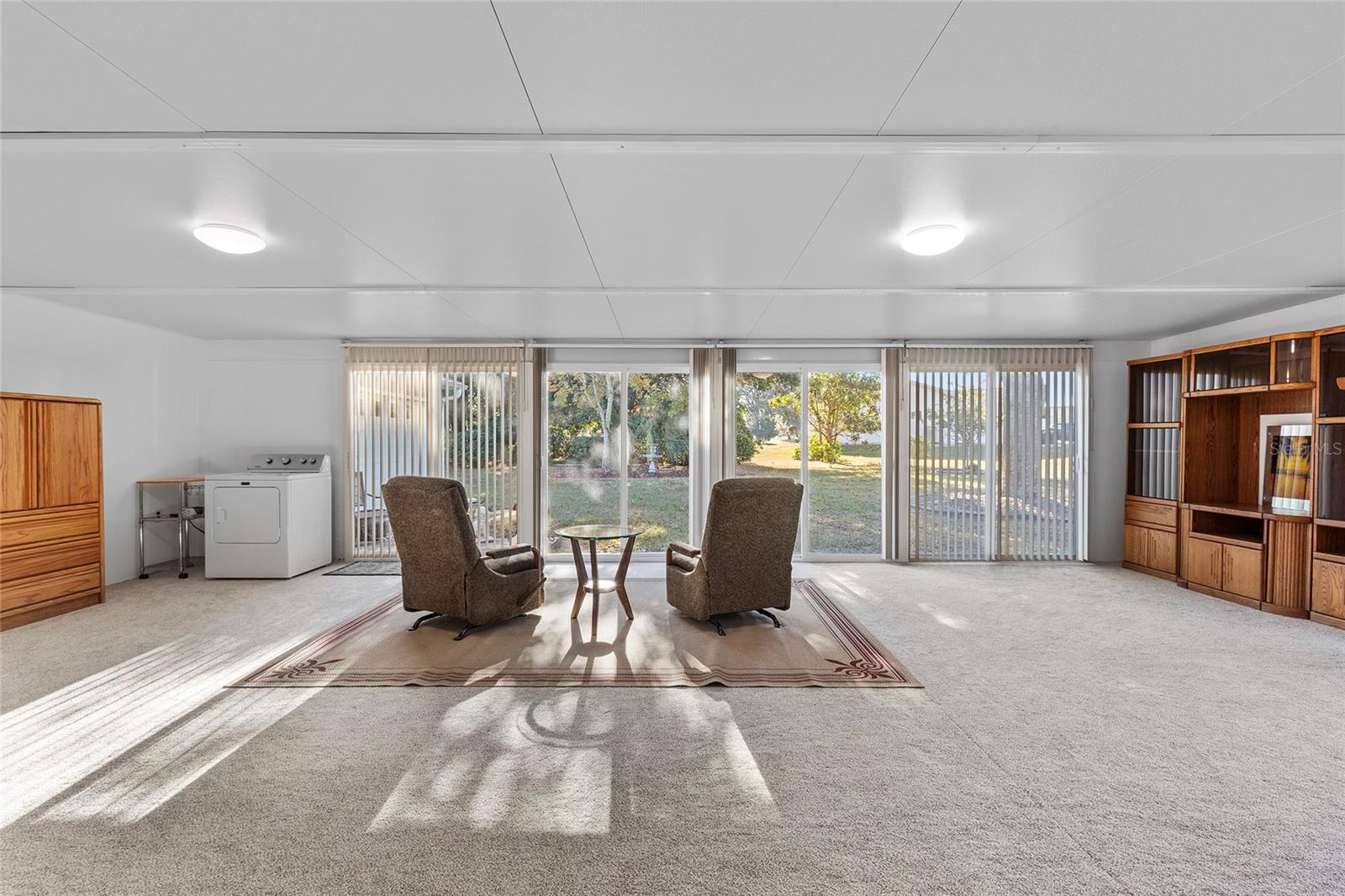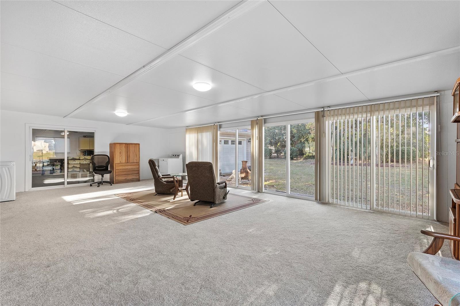EXCEPTIONAL GARAGE AND WORKSHOP SPACE IDEAL FOR HOBBYISTS OR COLLECTORS.***NEW ROOF 2024, HVAC SYSTEM 2016, NEW VINYL SIDING 2023*** Meticulously maintained home in the sought after 55+ Gated Golf Community of SPRUCE CREEK SOUTH, with all the amenities, adjacent to The Villages, Florida. This home offers the perfect combination of charm, comfort, and functionality. SET ON A SPACIOUS CORNER LOT, the home’s exterior immediately catches the eye with its recent VINYL SIDING updated in (2023), extended brick paved driveway, and a welcoming covered front porch. THE OUTDOOR SPACE IS PERFECT FOR ENJOYING SERENE VIEWS OF THE NEARBY PONDS, A PICTURESQUE LIGHTHOUSE ON THE SIGNATURE HOLE OF THE LINKS GOLF COURSE. Stepping inside, the home opens with a welcoming lead glass entry door that leads into a thoughtfully extended and updated interior. A highlight of the home is the expansive Florida room, measuring 19 x 32 feet, which seamlessly connects to the main living space and is equipped with heat and air for year round comfort. The interior features Italian ceramic tile flooring through the kitchen, living and dining areas, hallway, and main bath, while the master bedroom and Florida room feature newly installed carpet. Updates to the second bedroom, master bath, and walk-in closet include new stylish and durable vinyl plank flooring. Both the kitchen and bathrooms have been tastefully updated, blending modern style with practicality. Vinyl double pane windows, installed in (2013), provide energy efficiency while allowing plenty of natural light. For added convenience, all furnishings will remain with the home, making it truly move-in ready. One of the standout features of this property is the oversized 22 x 40 foot garage. Designed to accommodate up to four vehicles or a boat, this space includes a dedicated golf cart area with its own garage door, as well as built-in cabinets for organized storage. The space is ready for a variety of uses and has been finished with care, though it is not yet heated or cooled. A 3-ton HVAC system, installed in (2016), is capable of extending climate control to this area if desired. The original two car garage also features a convenient screen enclosure. This home has seen numerous updates, including a NEW ROOF (2024). Its location within Spruce Creek South places it just a block from the community pool and center, ensuring convenient access to the neighborhood’s many amenities. Residents of Spruce Creek South enjoy a vibrant lifestyle with amenities like fitness facilities, saunas, organized classes, a library, and social activities. Golf cart access provides easy travel to local shopping, dining, medical offices, and more. This home offers a rare opportunity to enjoy the best of Florida living in an exceptional community. Schedule your private showing today to experience this unique property.