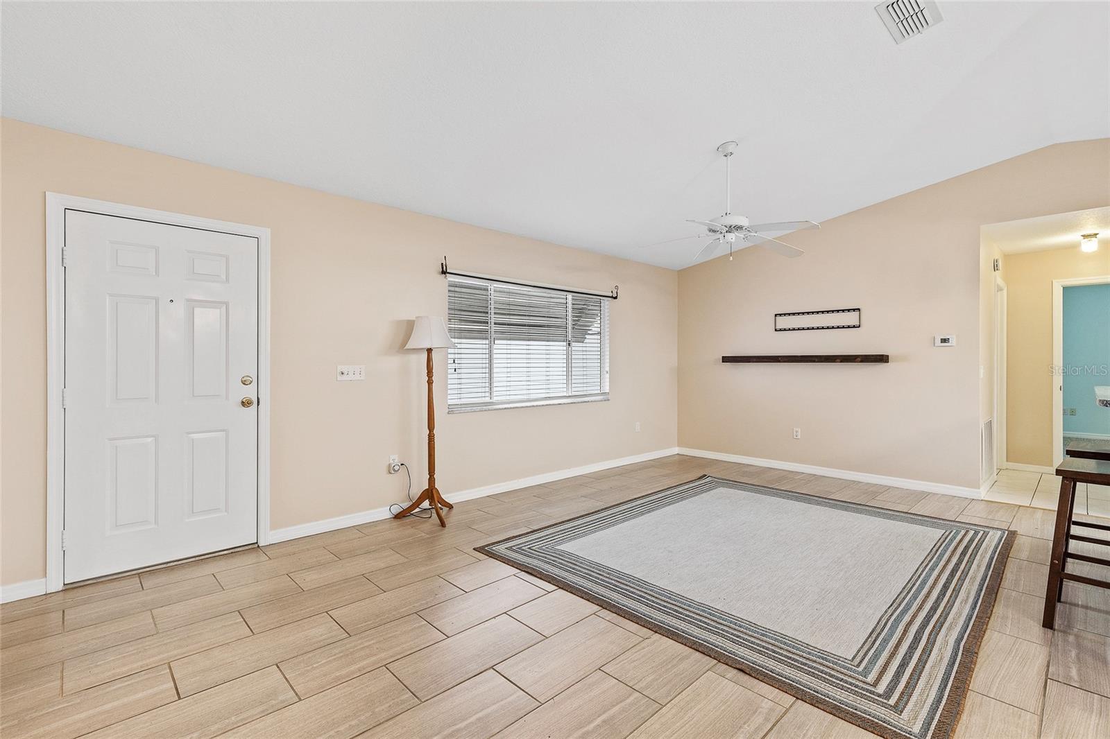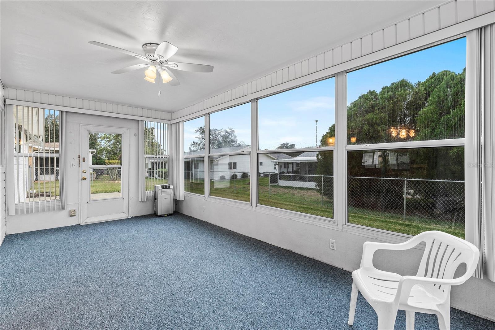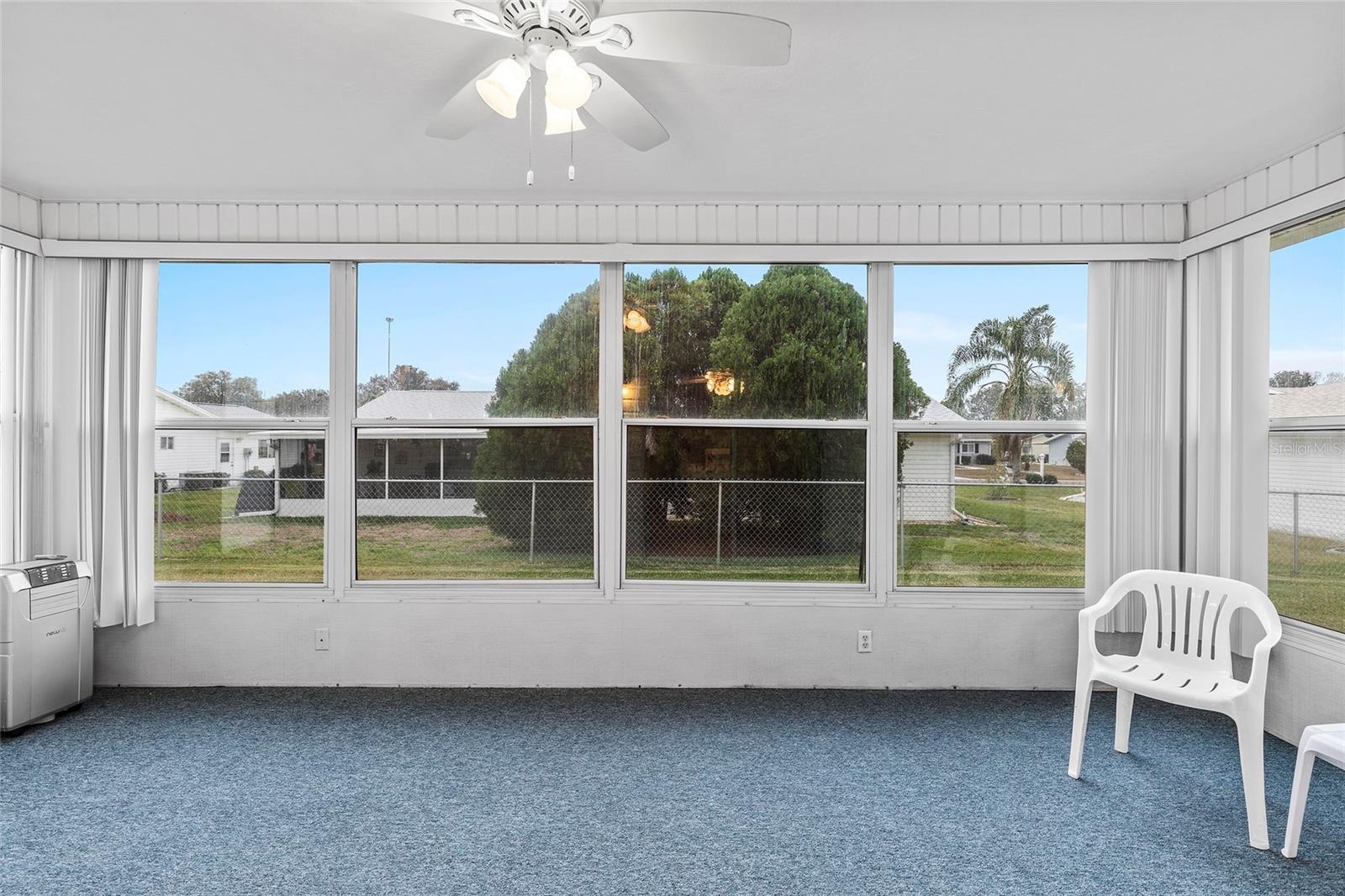 NEW ROOF (2023), NEW HVAC (2016)! YOUR LUCKY DAY!! The beauty is back on the market due to contingency. Located in the Desirable 55+ Gated Golf Community of SPRUCE CREEK SOUTH, this 3 Bedroom, 2 Bath HOLLY floor plan offers a comfortable and low-maintenance lifestyle, just minutes from THE VILLAGES, Florida. With convenient access to shopping, dining, medical facilities, and all the community amenities, this property has everything you need for easy living. Inside, the home features HIGH Ceilings and a practical layout. The kitchen is updated with GRANITE countertops, while TILE PLANK Flooring in the Living and Dining areas provides durability and style. All wet areas are TILED, and the Carpeted bedrooms add a cozy touch. The Florida room, equipped with a floor cooling unit, extends your living space, making it a great spot to relax year round. The BACKYARD is FENCED, perfect for pets, and includes a patio slab ready for grilling or outdoor seating. A decorative painted driveway adds charm, and the inside laundry room makes daily chores simple and convenient. Recent updates, including NEW ROOF 2023 and HVAC SYSTEM 2016, ensure peace of mind and energy efficiency. This home is located in a golf cart-friendly community, making it easy to access all nearby amenities. Whether you’re looking for an active lifestyle or a quiet retreat, this property is a great choice. Don’t wait, schedule your showing today and start your Florida retirement the right way!