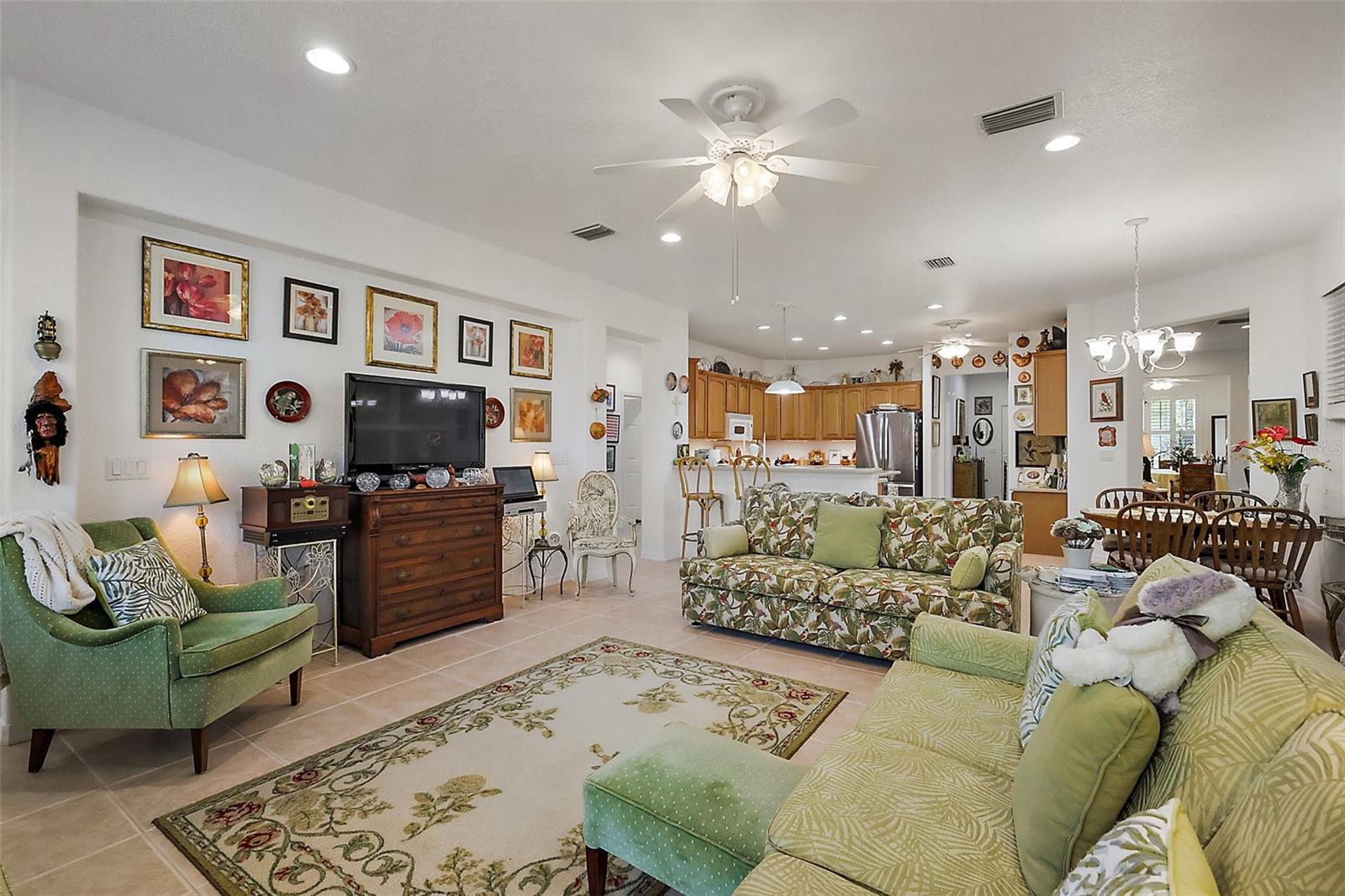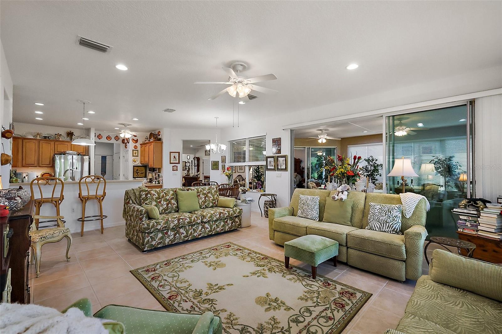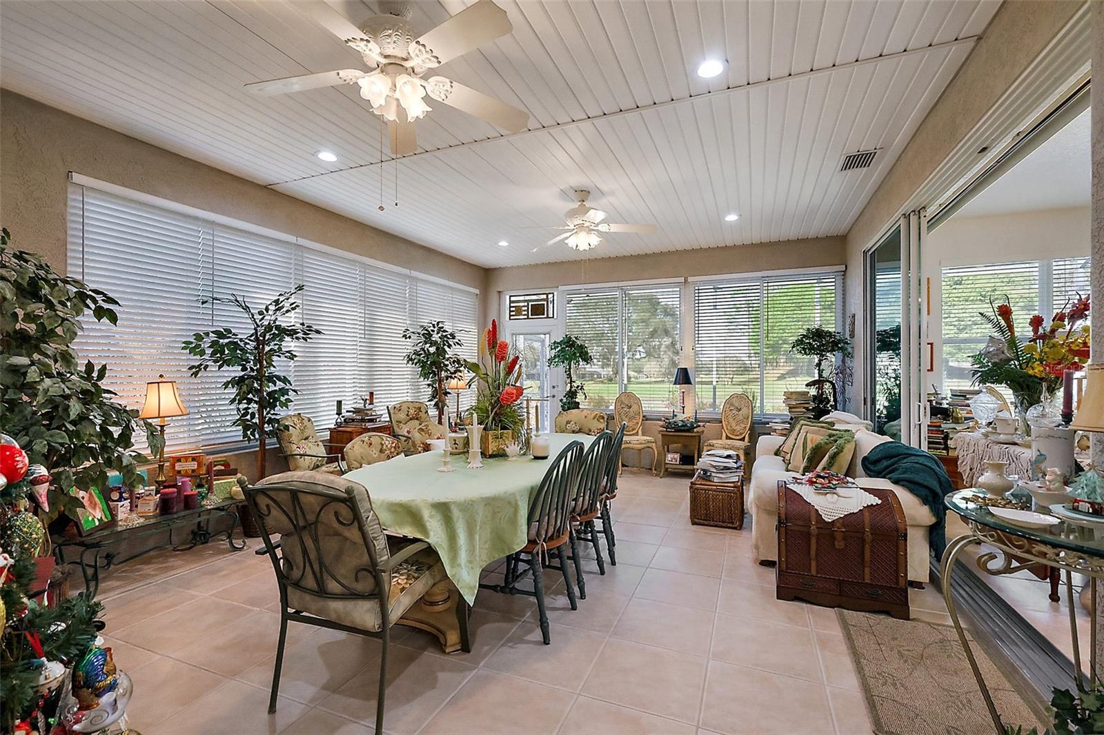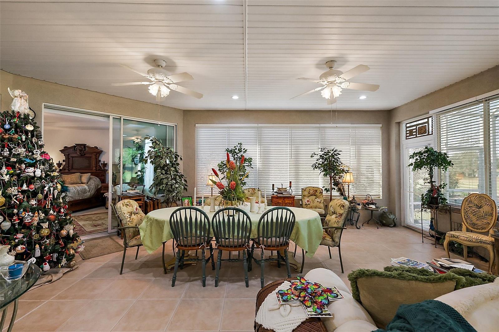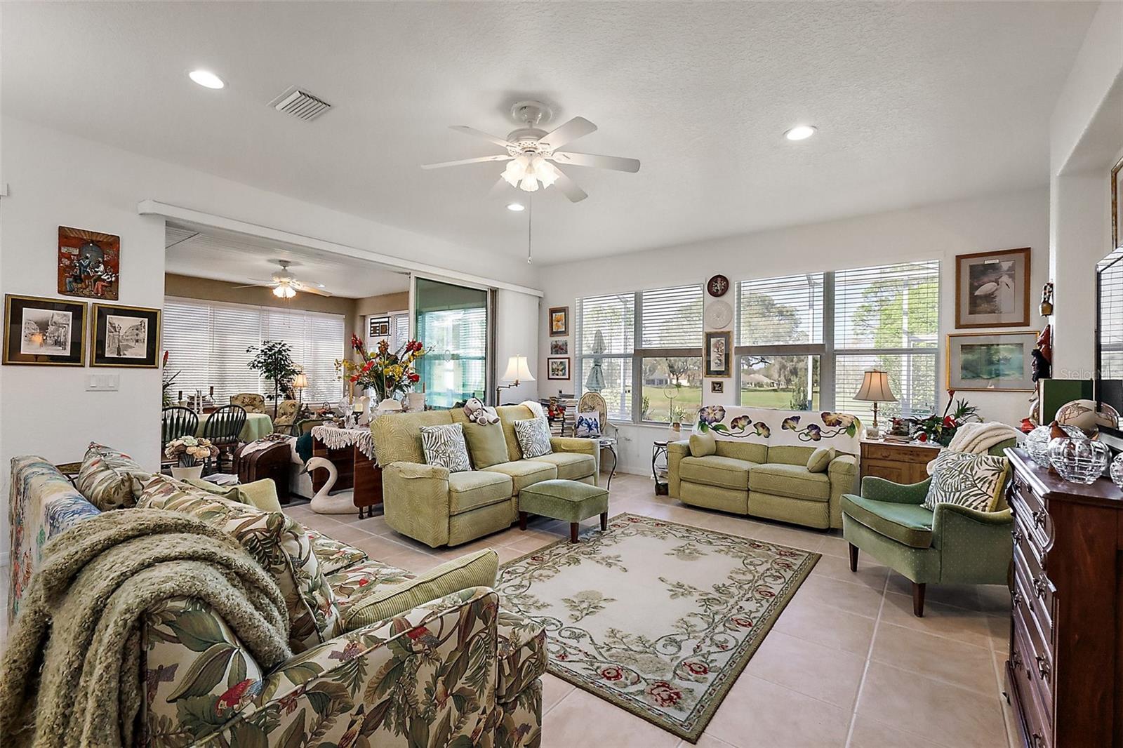 Welcome to your dream home in the sought after Del Webb Spruce Creek Golf & Country Club in the subdivision of Monarch.This expansive, block & stucco Lexington home, is set against the lush, rolling greens of the Memorial golf course. Step inside to discover an open floor plan with breathtaking views of the fairways. Large tile flooring throughout living areas. The large gourmet kitchen has Corian countertops, a spacious island, breakfast bar & under cabinet lighting. The great room is a perfect setting for gatherings large & small. The primary master suite is carpeted, & is a true private retreat, complete with a luxurious tiled en-suite bath & generous closet space. The two guest bedrooms are carpeted & ensure comfort & privacy with an adjoining bath. There is also a half bath. The den/office overlooks the golf course. A tiled glass enclosed under air & heat lanai is designed for year round enjoyment. This inviting space is perfect for morning coffee, relaxed afternoons or gatherings & a tranquil oasis, where you can unwind while taking in the stunning views of the golf course. Walk out the lanai into a birdcage which completes your outdoor living. The home has been home re-piped. Sensor lighting around the whole exterior, well maintained landscaping, an electric garage door screen, a side screened garage door, roof 2020, HVAC 2016. Seller offering a one year Broward factory warranty. Don't miss the opportunity to see this exceptional property.