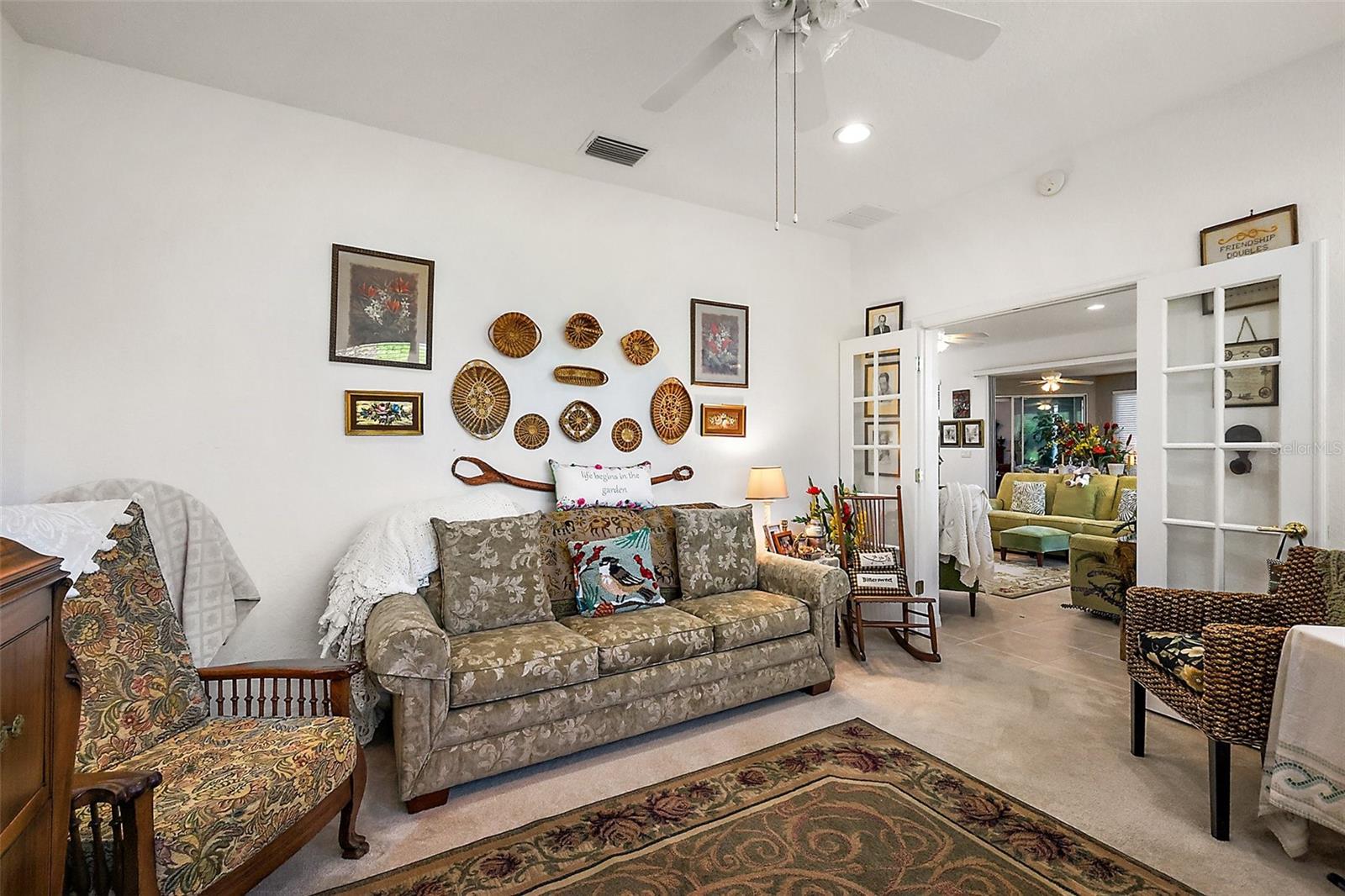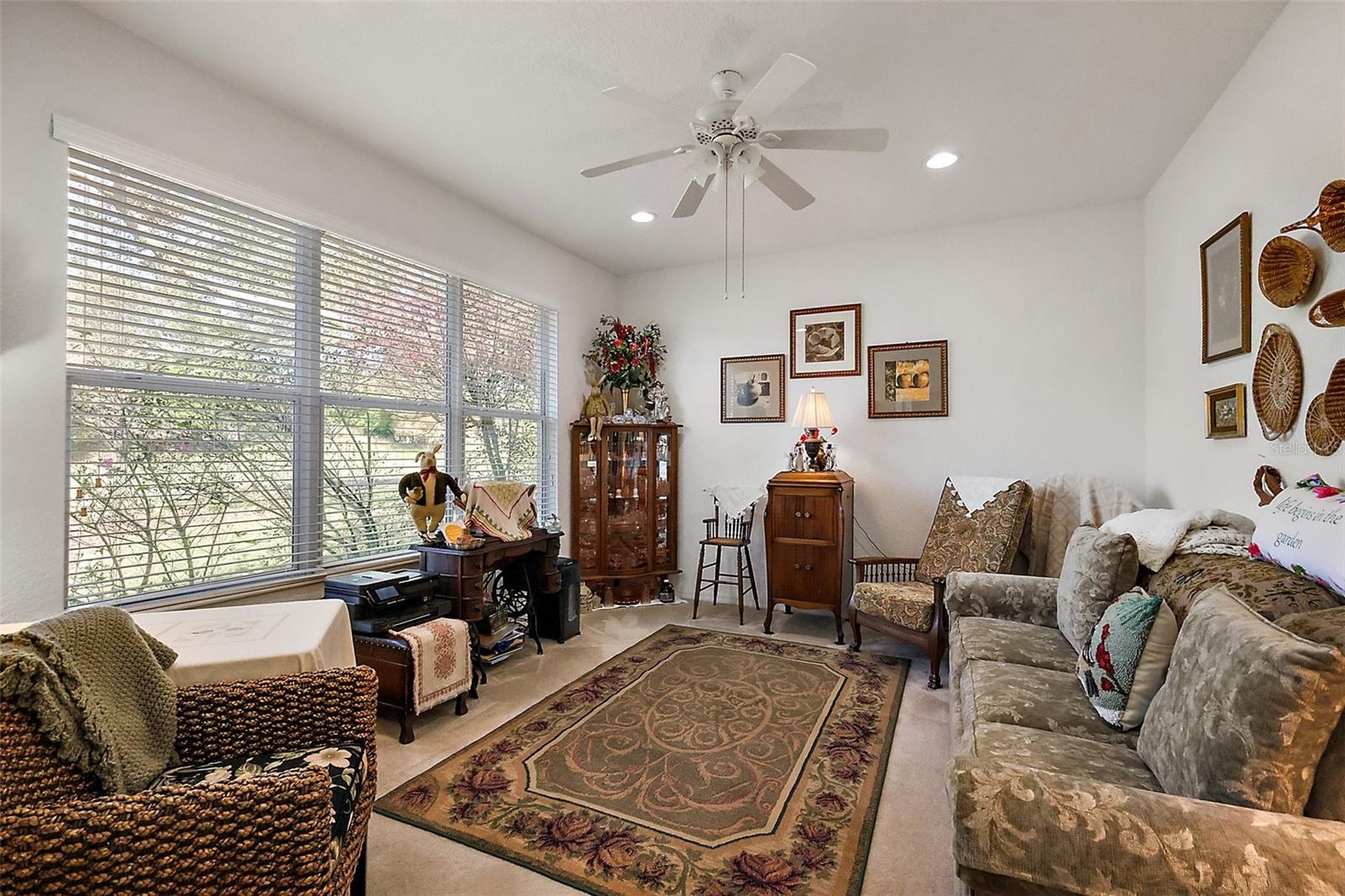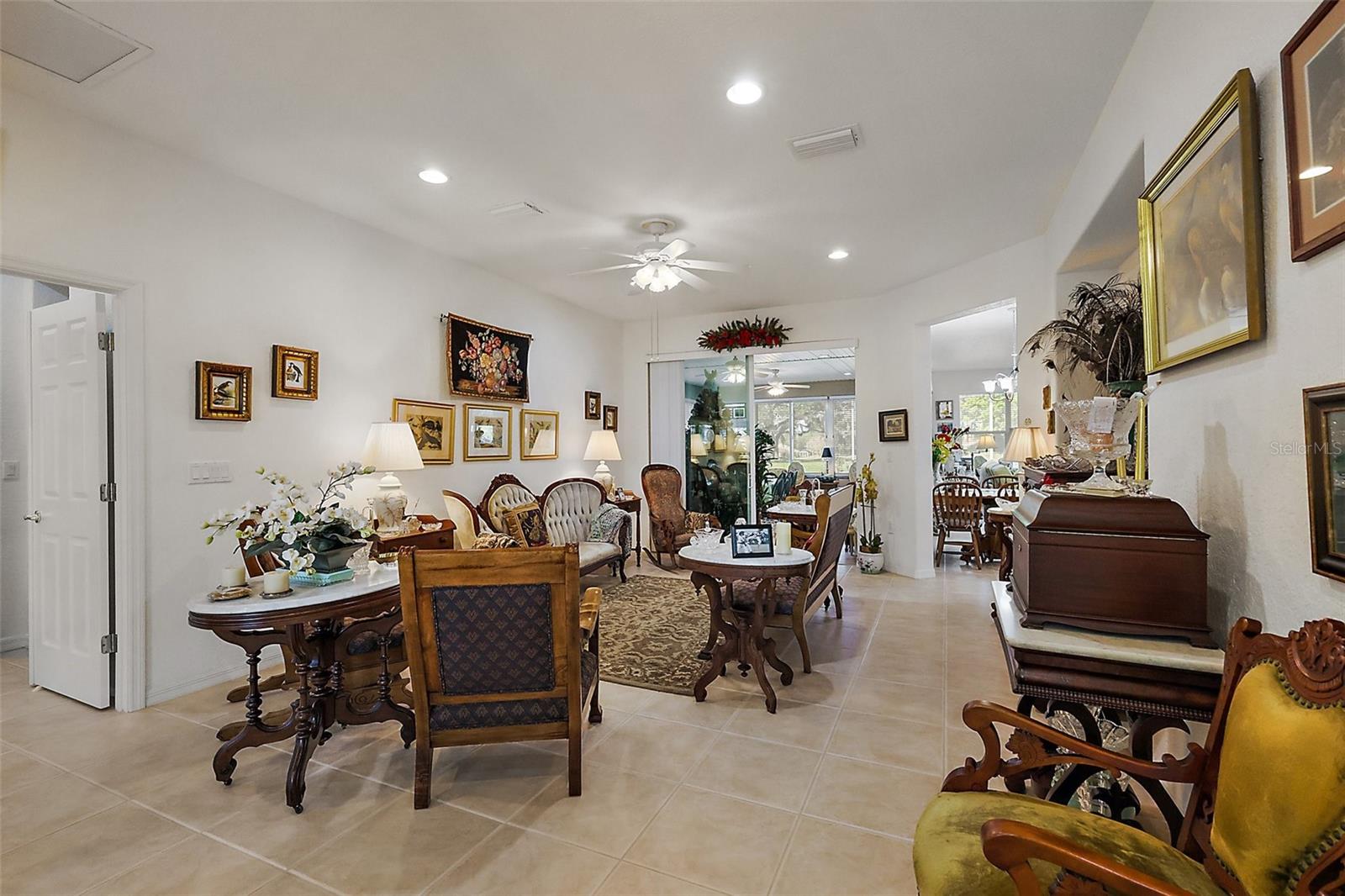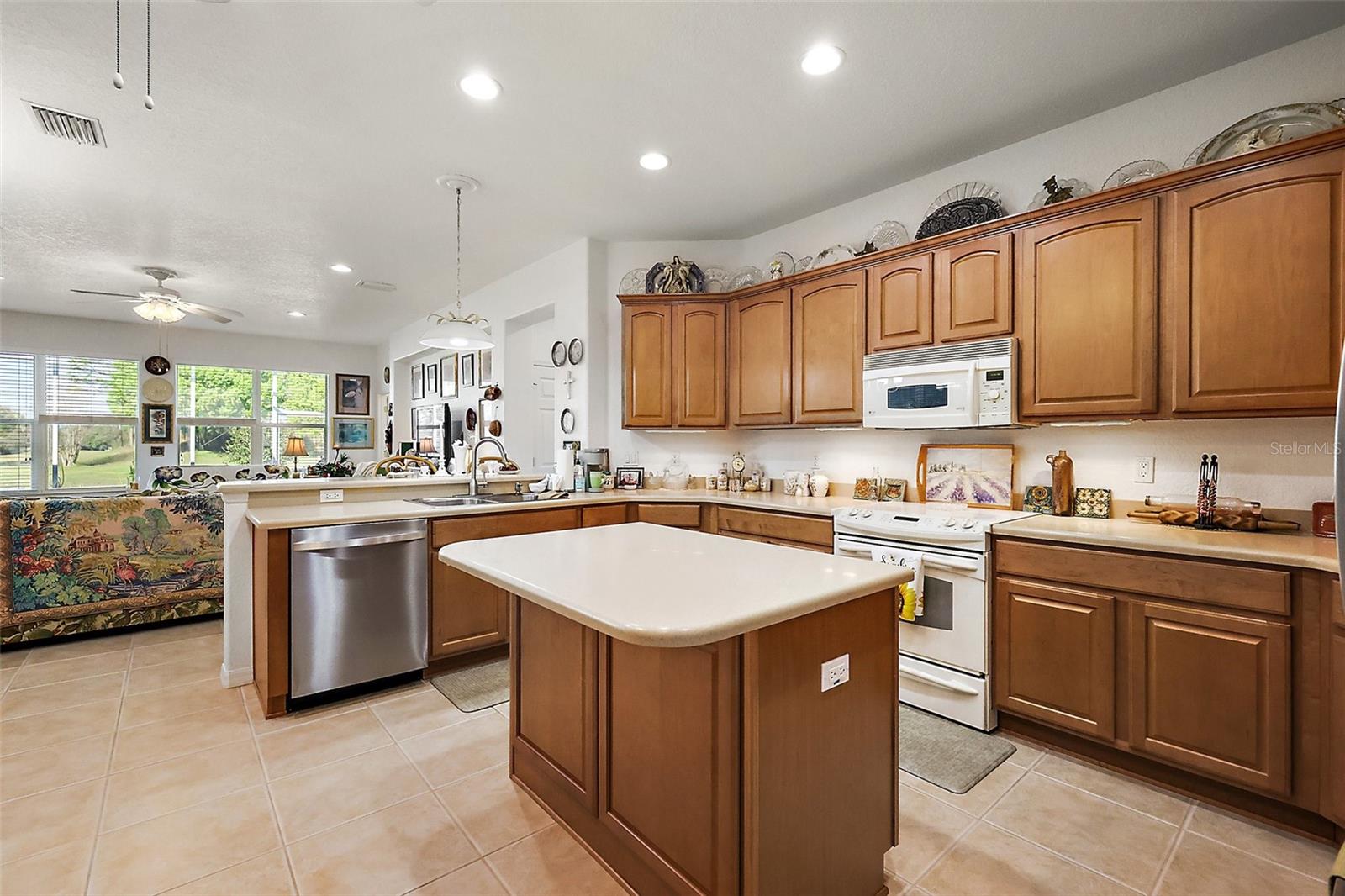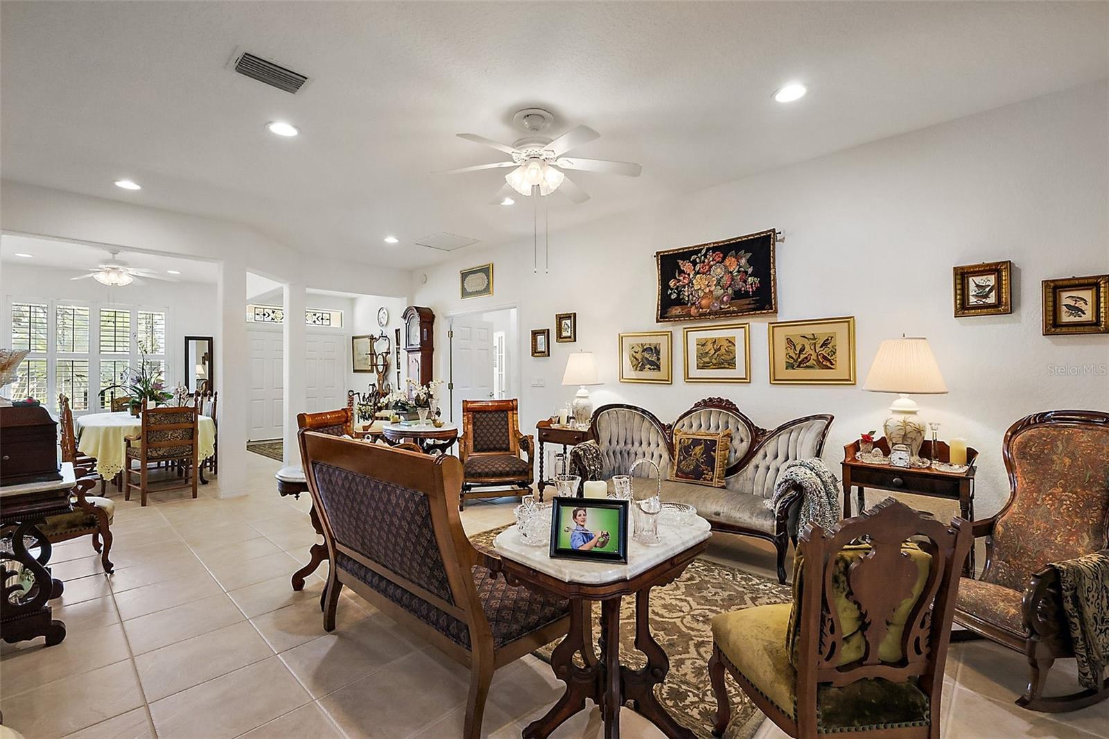 Welcome to your dream home in the sought after Del Webb Spruce Creek Golf & Country Club in the subdivision of Monarch.This expansive, block & stucco Lexington home, is set against the lush, rolling greens of the Memorial golf course. Step inside to discover an open floor plan with breathtaking views of the fairways. Large tile flooring throughout living areas. The large gourmet kitchen has Corian countertops, a spacious island, breakfast bar & under cabinet lighting. The great room is a perfect setting for gatherings large & small. The primary master suite is carpeted, & is a true private retreat, complete with a luxurious tiled en-suite bath & generous closet space. The two guest bedrooms are carpeted & ensure comfort & privacy with an adjoining bath. There is also a half bath. The den/office overlooks the golf course. A tiled glass enclosed under air & heat lanai is designed for year round enjoyment. This inviting space is perfect for morning coffee, relaxed afternoons or gatherings & a tranquil oasis, where you can unwind while taking in the stunning views of the golf course. Walk out the lanai into a birdcage which completes your outdoor living. The home has been home re-piped. Sensor lighting around the whole exterior, well maintained landscaping, an electric garage door screen, a side screened garage door, roof 2020, HVAC 2016. Seller offering a one year Broward factory warranty. Don't miss the opportunity to see this exceptional property.