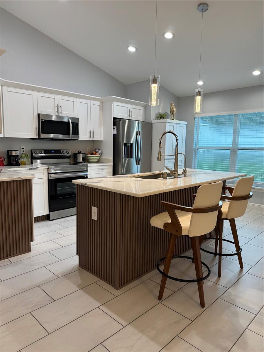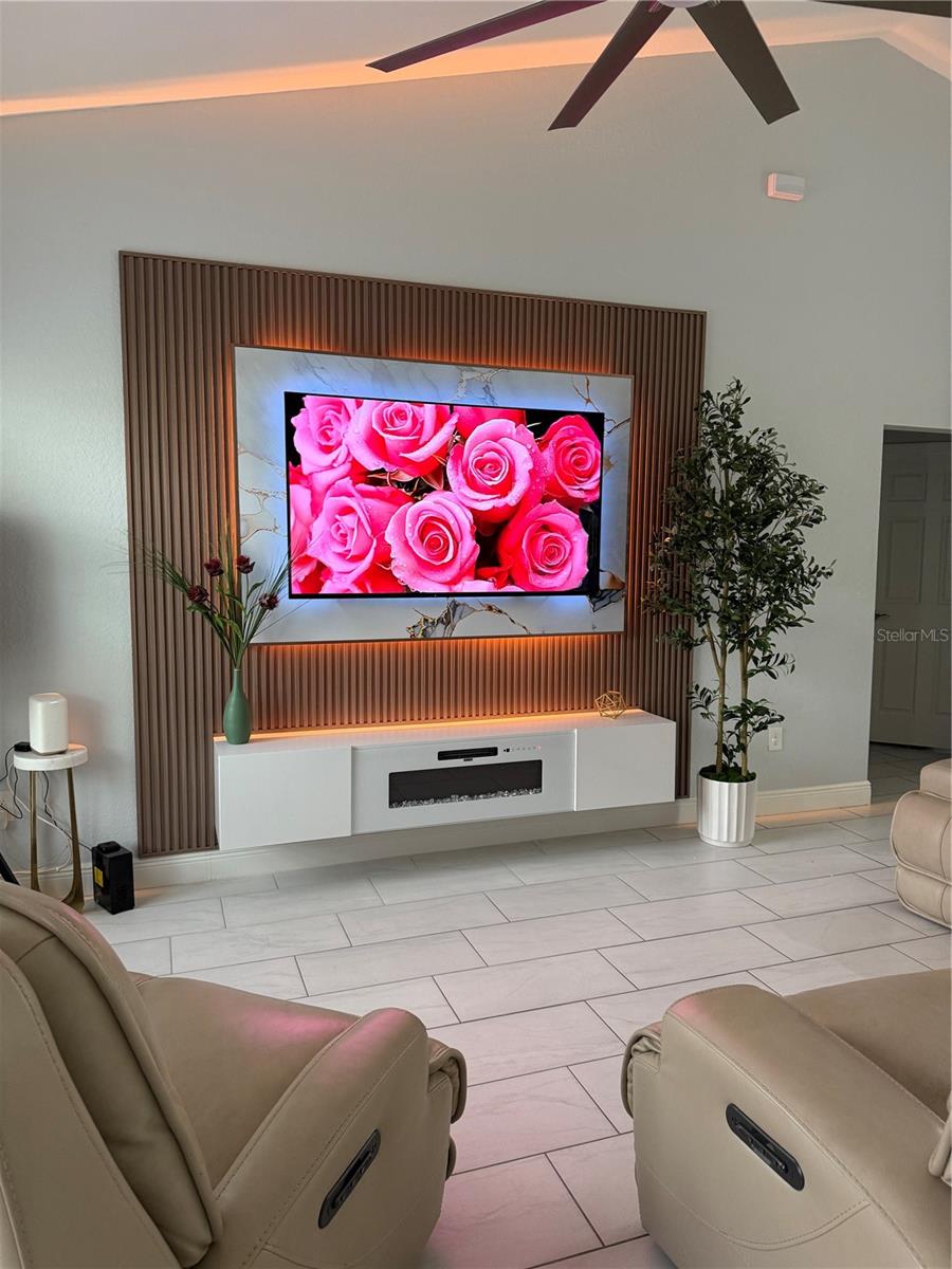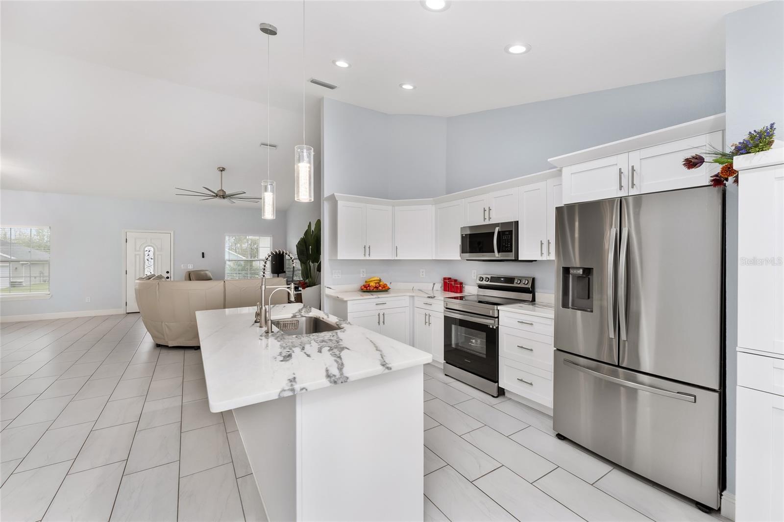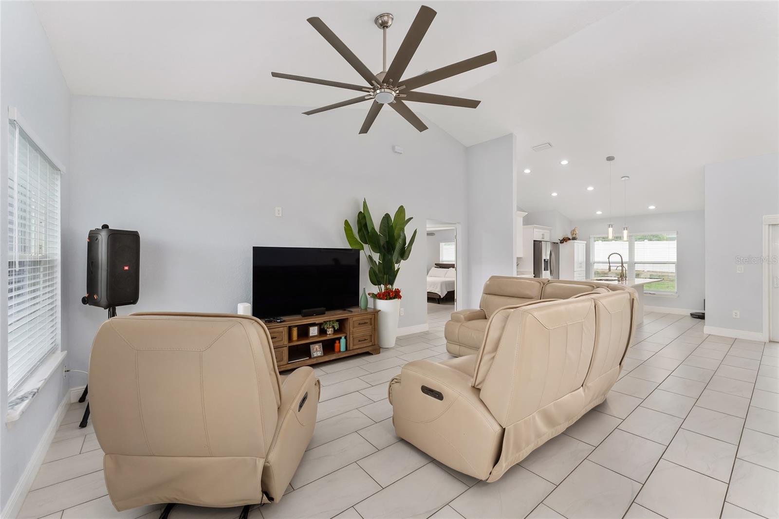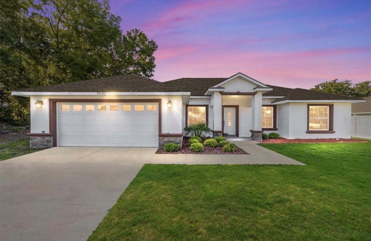 LOCATION! LOCATION! This property qualifies for 100% FINANCING USDA! NO HOA/CDD! Welcome to this charming and vibrant 3-bedroom, 2-bath in Orange Blossom Hills. Sellers have added an ACCENT WALL in living room with LED LIGHTS & ELECTRIC FIREPLACE. Entry area also has a beautiful accent wall with mirror and shelf. With 1,700 SQFT of Living space. NO CARPET, FULLY FENCED YARD. Concrete Block Construction. Open Floorplan with TILE FLOORS THROUGHOUT. GRANITE countertops are featured throughout the kitchen, bathrooms, laundry, and even the windowsills. Split bedroom design. The primary bedroom boasts a spacious walk-in closet, DOUBLE VANITY, and a gorgeous TILED WALK-IN SHOWER, PLUS+ a linen closet for added convenience. On the opposite side of the home, you'll find two additional bedrooms and a full bathroom with a shower/tub combo. Property is on Well Water and comes with a WATER FILTRATION SYSTEM. ALL APPLIANCES INCLUDED! GARAGE is equipped with MINI-SPLIT A/C UNIT. Location is key and this home offers the best of it! Directly across from The Villages Publix shopping plaza on Mulberry Lane, with VA clinic nearby. Medical offices, Restaurants, COSTCO, Golf Courses/Driving Range, Movie Theater, and gas stations are just minutes away. NO HOA/CDD fees.