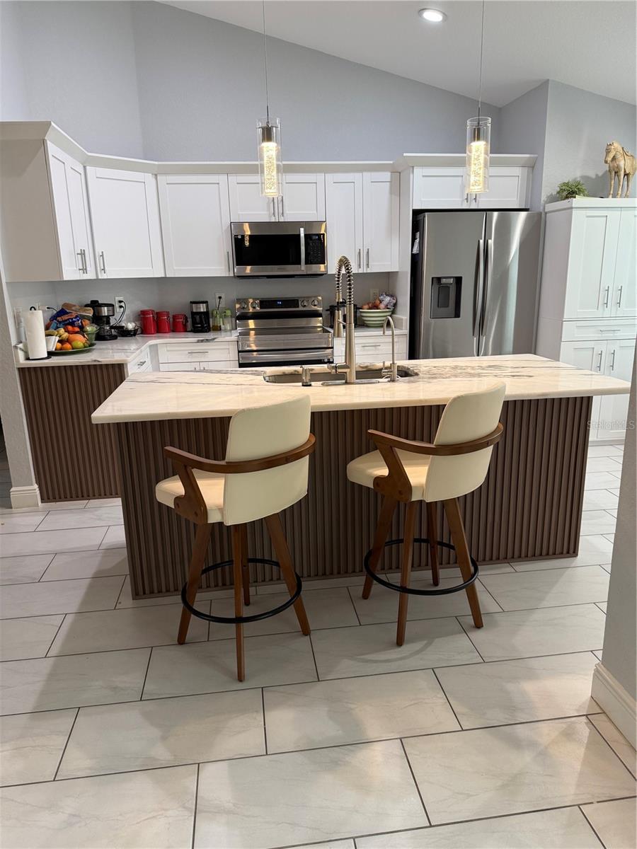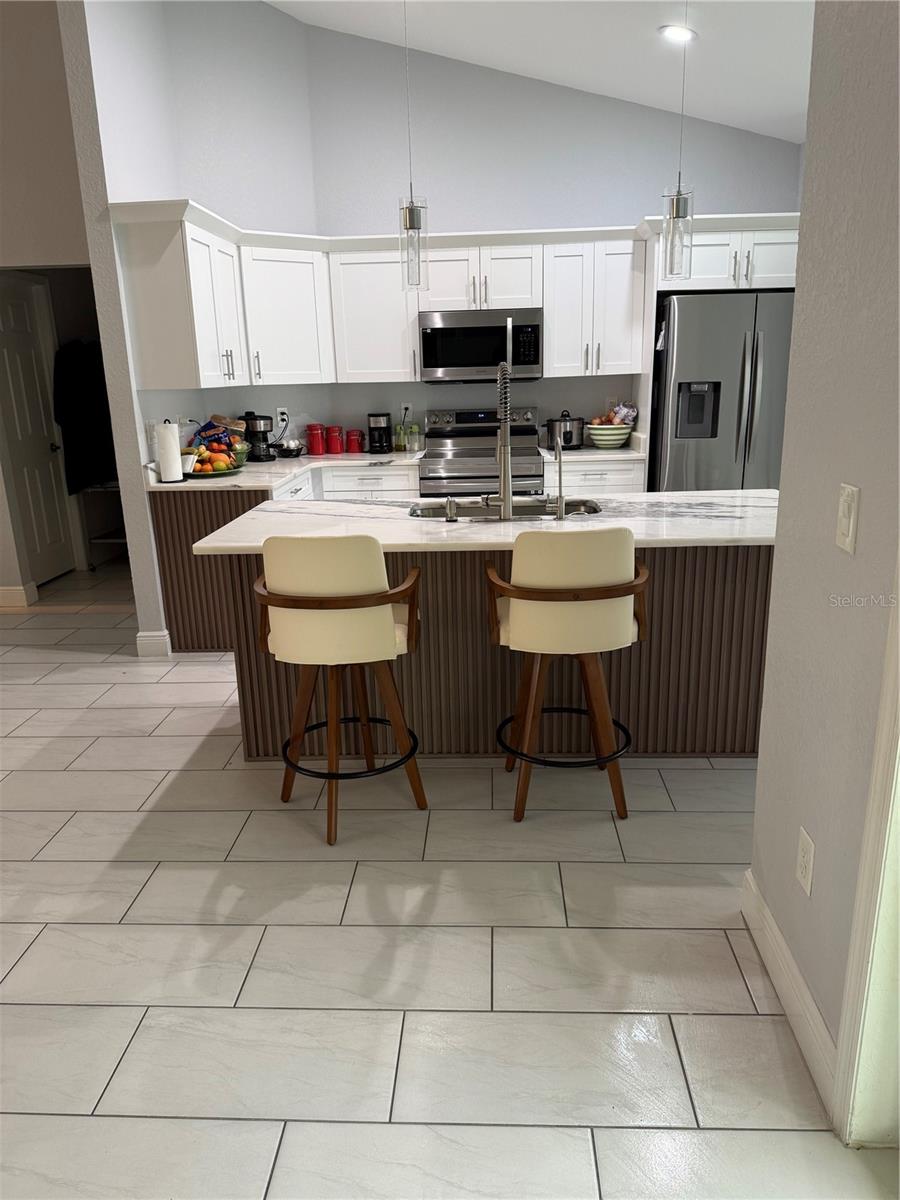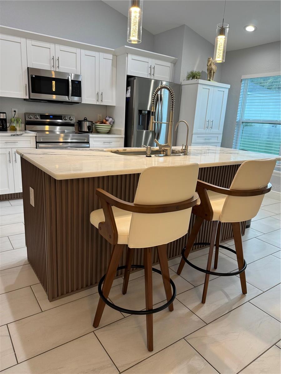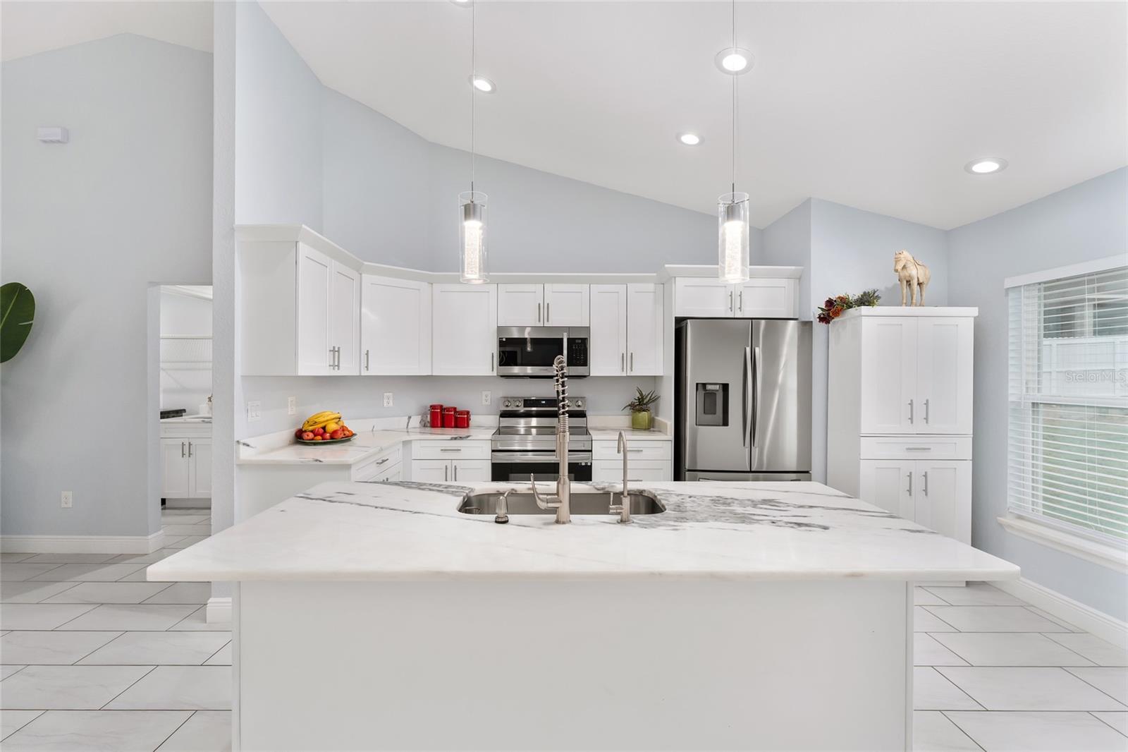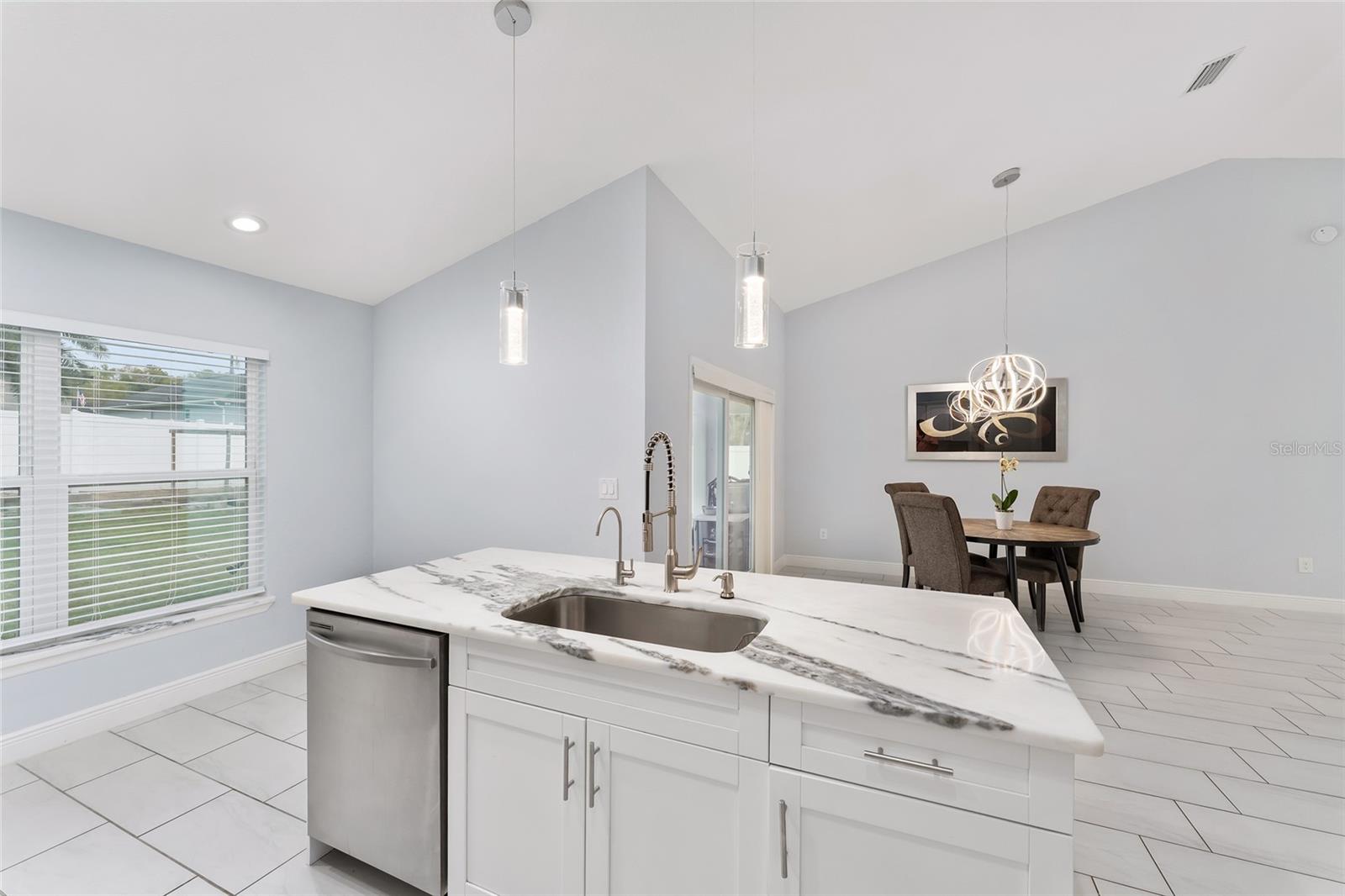 LOCATION! LOCATION! This property qualifies for 100% FINANCING USDA! NO HOA/CDD! Welcome to this charming and vibrant 3-bedroom, 2-bath in Orange Blossom Hills. Sellers have added an ACCENT WALL in living room with LED LIGHTS & ELECTRIC FIREPLACE. Entry area also has a beautiful accent wall with mirror and shelf. With 1,700 SQFT of Living space. NO CARPET, FULLY FENCED YARD. Concrete Block Construction. Open Floorplan with TILE FLOORS THROUGHOUT. GRANITE countertops are featured throughout the kitchen, bathrooms, laundry, and even the windowsills. Split bedroom design. The primary bedroom boasts a spacious walk-in closet, DOUBLE VANITY, and a gorgeous TILED WALK-IN SHOWER, PLUS+ a linen closet for added convenience. On the opposite side of the home, you'll find two additional bedrooms and a full bathroom with a shower/tub combo. Property is on Well Water and comes with a WATER FILTRATION SYSTEM. ALL APPLIANCES INCLUDED! GARAGE is equipped with MINI-SPLIT A/C UNIT. Location is key and this home offers the best of it! Directly across from The Villages Publix shopping plaza on Mulberry Lane, with VA clinic nearby. Medical offices, Restaurants, COSTCO, Golf Courses/Driving Range, Movie Theater, and gas stations are just minutes away. NO HOA/CDD fees.