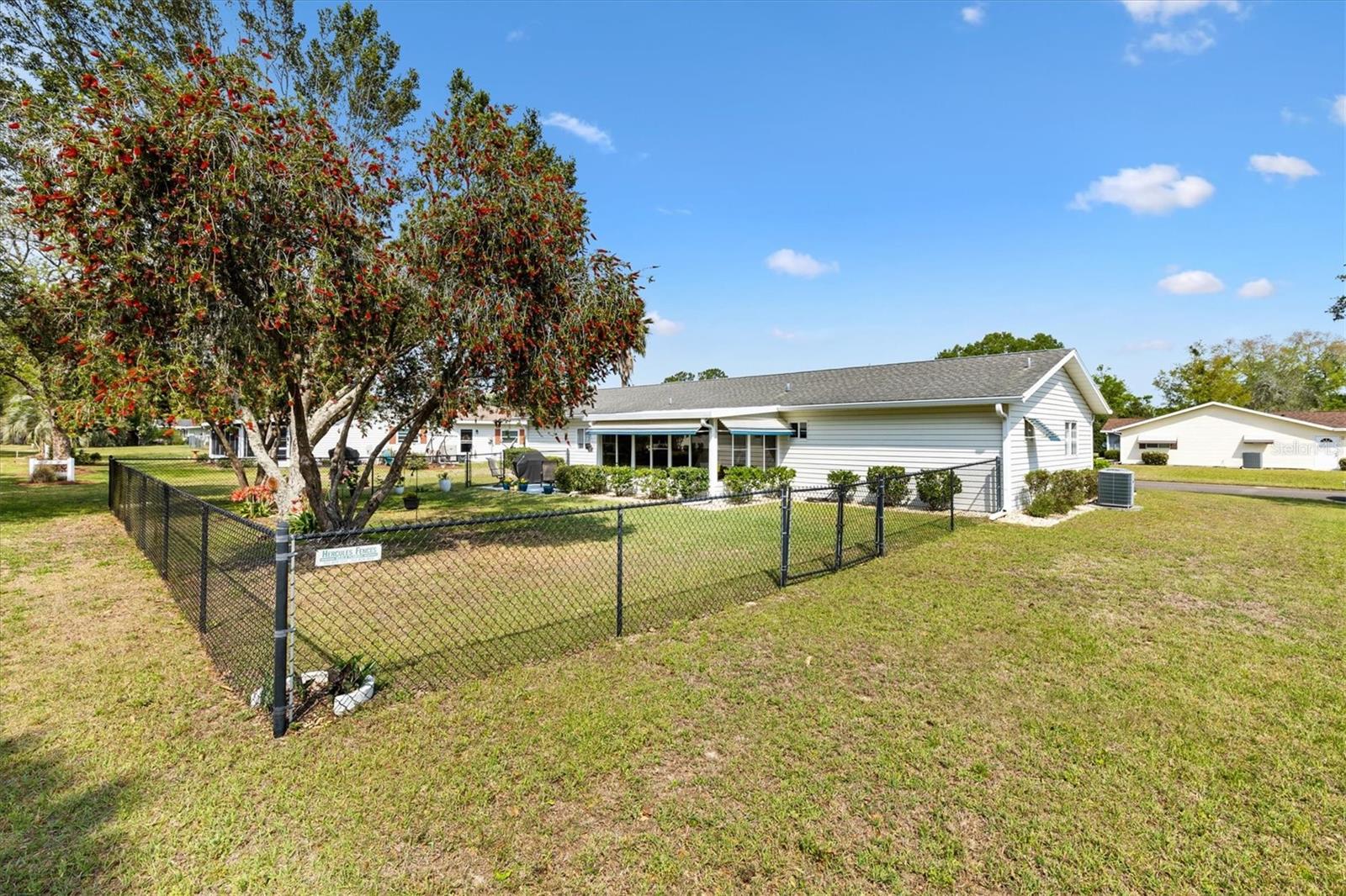 NEW ROOF 2025, HVAC 2017! Step into this charming 2 Bedroom, 2 Bath PECAN floor plan and discover the perfect blend of comfort and convenience in this sought after 55+ Golf Community, adjacent to THE VILLAGES, Florida. Inside, neutral tones and abundant natural light create a bright, welcoming ambiance. New LAMINATE flooring flows seamlessly throughout, while TILE in the enclosed lanai adds a stylish touch. The lanai extends your living space and leads to a patio slab and a fully enclosed backyard with a vinyl-coated CHAIN LINK FENCE a perfect retreat for you and your fur babies! The kitchen has been tastefully updated with a new slimline microwave, custom countertops, backsplash, and an additional pantry cabinet. Stylish updated light fixtures and ceiling fans enhance the home’s modern appeal. The spacious primary suite offers a private oasis with a large walk-in closet and an en-suite bath. For added convenience, the garage Features a sliding screen door, and the HVAC system (replaced in 2017) ensures year-round comfort. Beyond your doorstep, SPRUCE CREEK SOUTH offers a lifestyle like no other! Enjoy The Links Golf Club and Clubhouse, Featuring an exercise facility, saunas, his-and-hers bathrooms, showers, and a heated pool with a separate jacuzzi and outdoor bath facilities. Stay active and social with fitness classes, seasonal events with live entertainment, a billiards room, a library, and card rooms. Everyday conveniences including shopping, dining, and medical facilities are just a golf cart ride away. Don’t miss your chance to experience the energy and amenities of this fantastic 55+ golf community! Schedule your private tour today and start living your retirement dream!