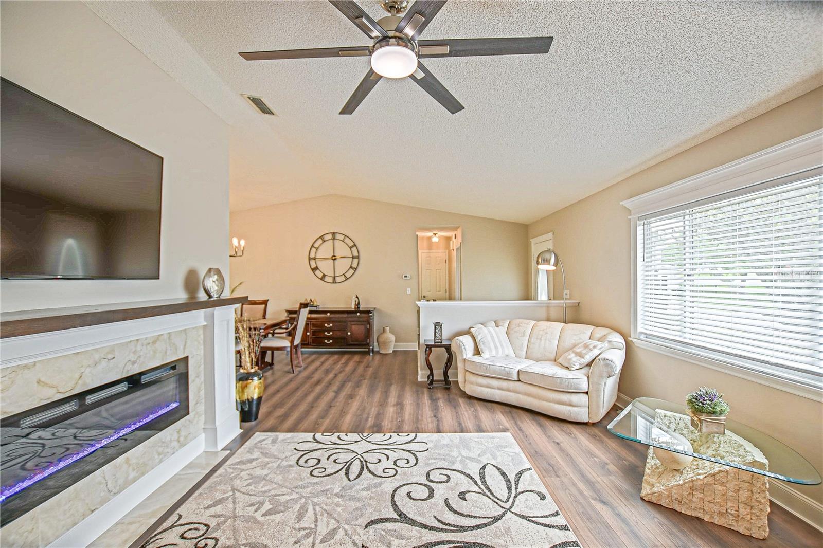 Price reduced over $20,000! Absolutely Beautiful! This home is truly a rare find in the Spruce Creek South community, offering a level of style and quality that’s hard to come by! Completely updated by its owner, a skilled master craftsman, every inch of this property is a showcase of great taste and attention to detail. Every corner radiates sophistication, from the upscale furnishings to the thoughtfully selected decor that rivals or - surpasses – a model home. Beautifully decorated and featuring brand-new appliances and upscale furniture, it feels like stepping into a designer’s dream home. The extra wide electric fire place on the wall adds both warmth and a contemporary focal point to the living room. The custom trim molding around all windows and doors and the 6 inch baseboards showcase the craftsman and attention to detail, giving the home a polished, high-end feel. New LVP flooring, tile, solid wood cabinets, granite countertops, vanities, lighting, mirrors and many others add to the the showcase. It’s being sold TURNKEY, so everything you see—furniture, decor, and more—comes with it. If you’re someone who appreciates elegance, attention to detail, and a fair price, this unique home is sure to impress! (NEW ROOF 2024 - A/C 2017 - the following items do not convey: small nik-naks in the home, tree plant in the corner of the L.R. and lawn tractor iin the garage do not convey).