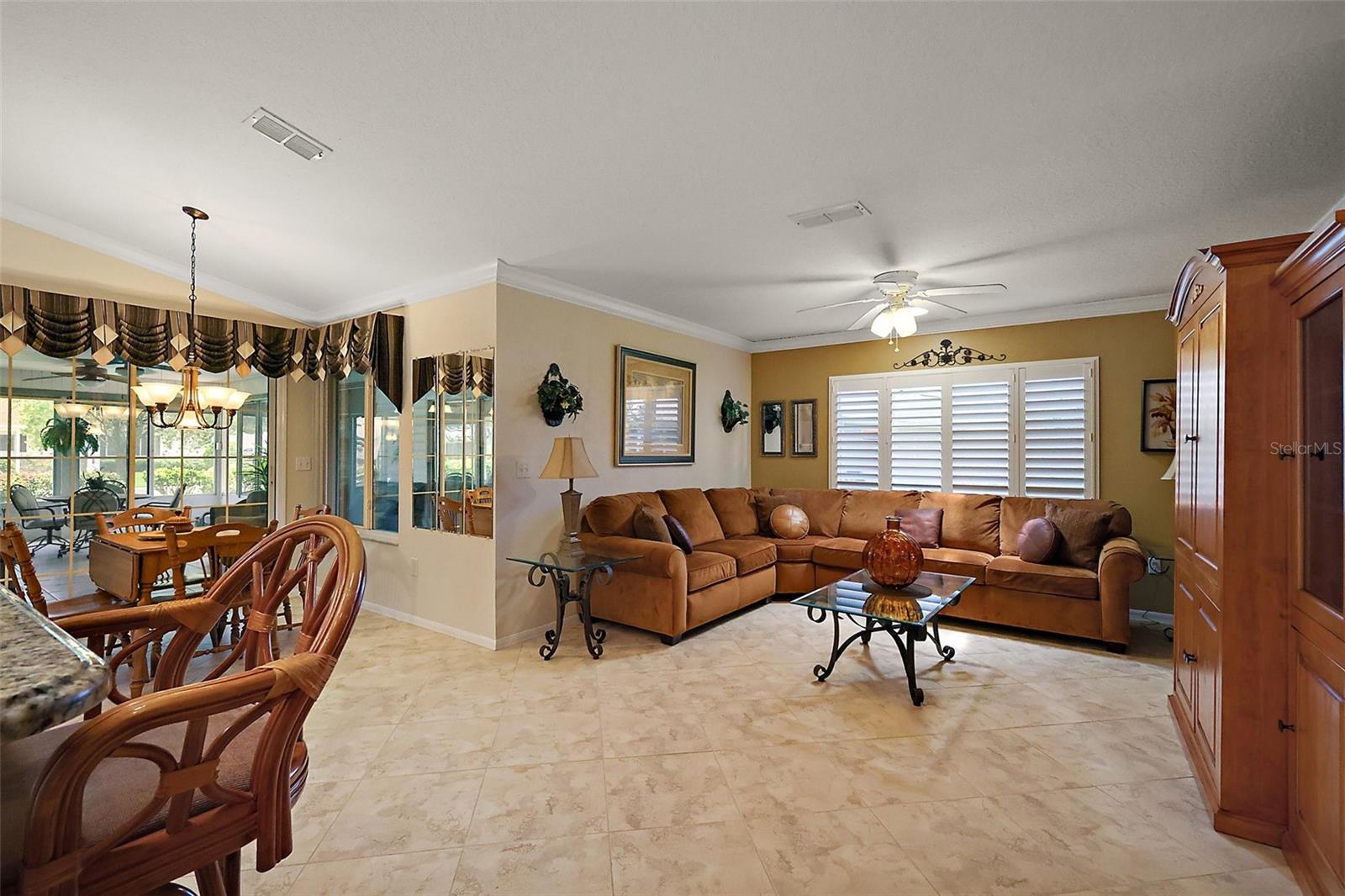 -This Beatiful home is waiting for a New Owner! Aspen Model - Split Floor plan 3 Large Bedrooms 2 Full Baths- Big Eat in Kitchen With Loads of Cabinets- Granite Counter Tops Large Breakfast Bar - Family room - Dining Room- Living Room with Sliders to Enclosed Lanai 13 x 23 with Tile Flooring that leads you to a 10 x 21 covered Birdcage - Inside Laundry Room- Attached 2 Car Garage with a side door - Utility Sink - Electric Garage Screen - There is a Well on the property that is Shared with one neighbor for Irrigation Only- Roof 2013 A/C 2009 The Home is in a 55+ Community of Del Webb Golf & Country Club/ Gated 24 hours - Two 18 hole Golf Course - 2 Out door Pools One Indoor - State of the art Gym - Community Center - Pickle Ball & Tennis Courts -Softball Field - To many Clubs to mention - Close to the Villages - Resturants - Shopping & Medical