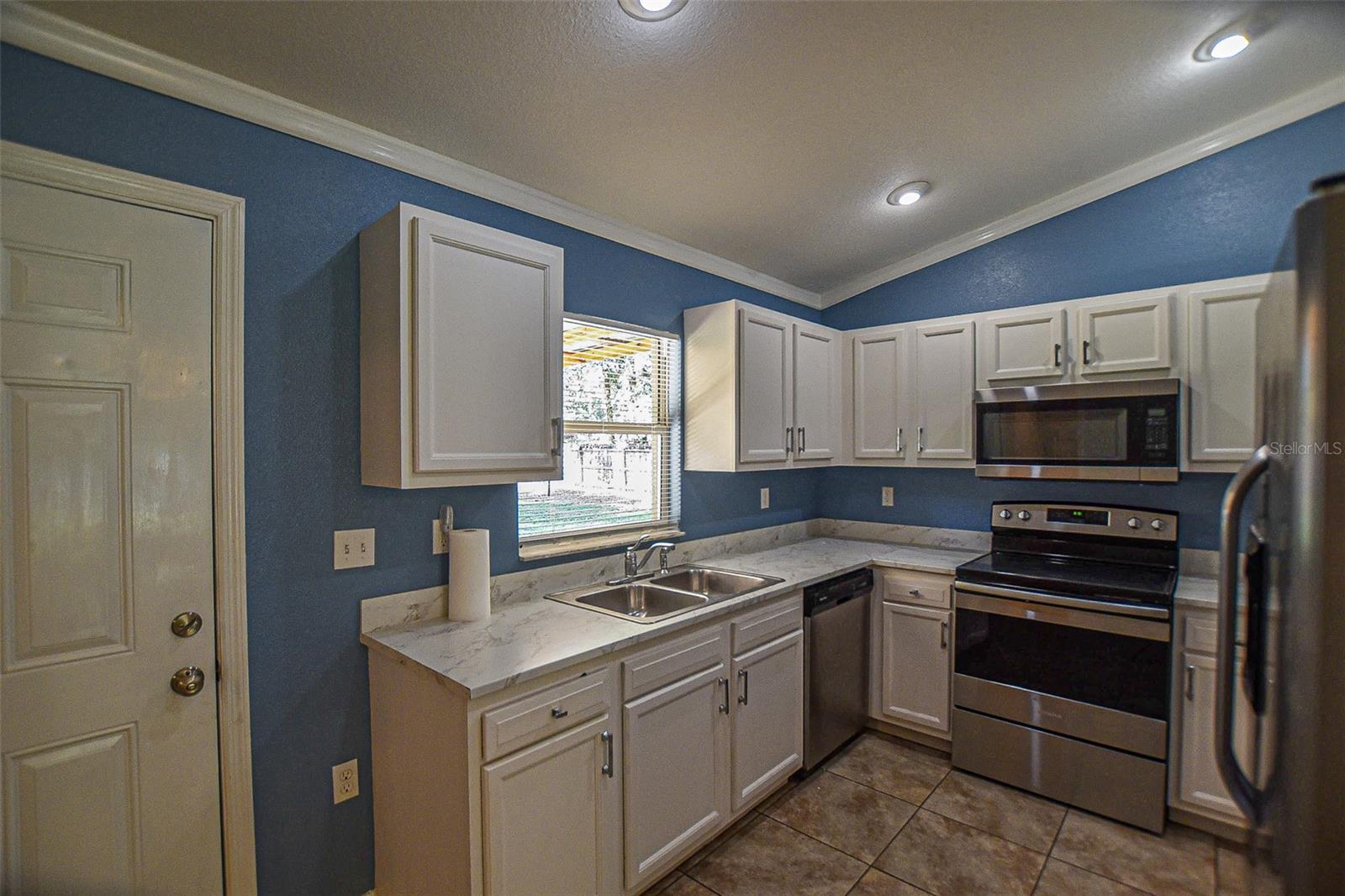 Under contract-accepting backup offers. Priced to sell. Great updated home 3/2 with ceramic tile flooring throughout. Cathedral ceilings, light kitchen cabinets and newer stainless-steel appliances. Back open patio deep backyard and back is completely fenced. Roof was replaced in 2021. Darling picket fence in the front of house makes for great curb appeal. Interior recently painted and garage floor painted. Call for your private showing