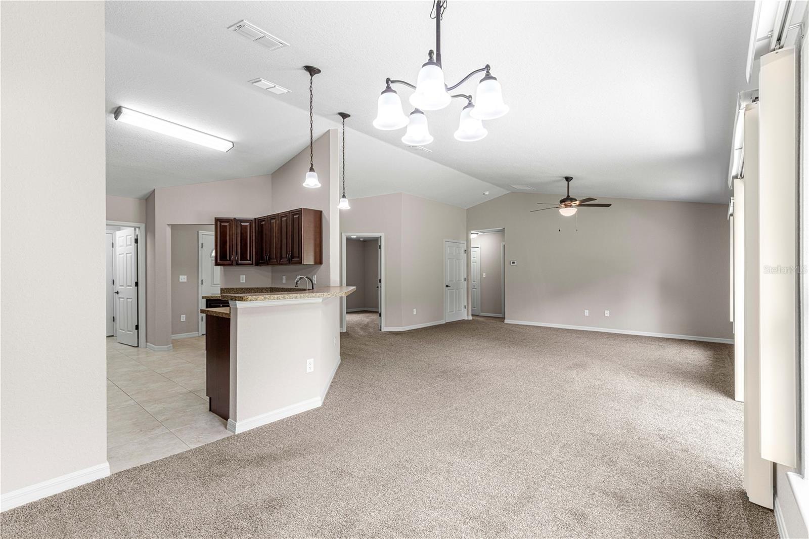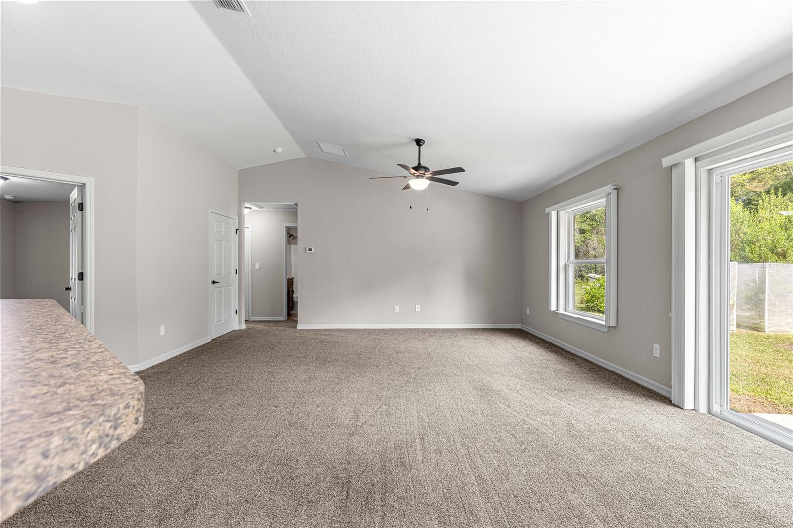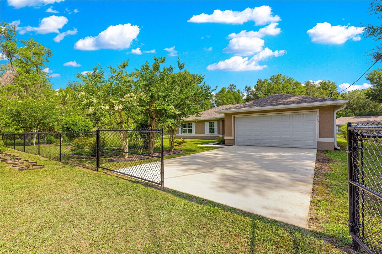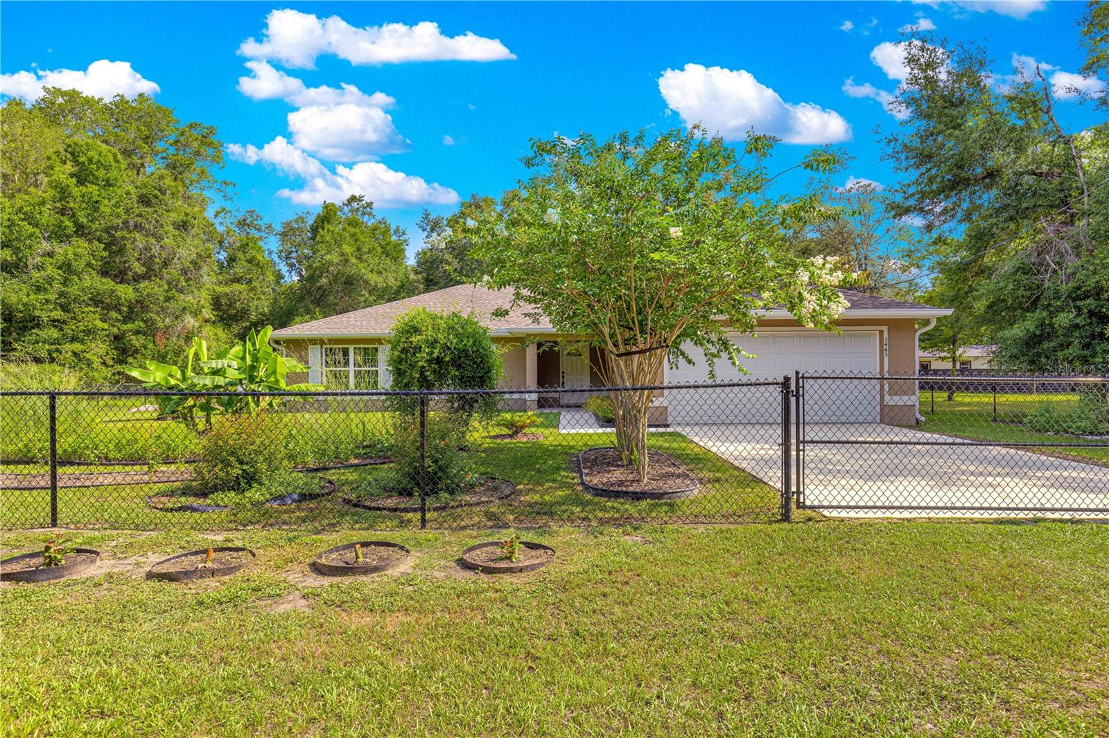 Better Than New! Spacious 4-Bedroom Home in a Peaceful Setting. Welcome to this beautifully maintained 4-bedroom, 2-bath home offering over 2,200 square feet under roof with added extras like installed blinds, gutters, and fencing — without the wait of new construction. Situated in a quiet, peaceful neighborhood, this home features cathedral ceilings and a bright, open layout perfect for both everyday living and entertaining. The kitchen comes complete with all appliances, a convenient breakfast bar, pantry, and a separate dining area. The expansive living room is perfect for gatherings or relaxing evenings at home. The primary suite boasts a generous walk-in closet and dual vanities for added comfort. Three additional bedrooms provide plenty of space for family, guests, or a home office. Step outside to a fully fenced and gated yard (.29 acres), beautifully landscaped with mature plantings and plenty of space to enjoy the outdoors. Don’t miss this rare opportunity to own a better-than-new home in a tranquil location! Just minutes to Belleview, I75 and the Villages.