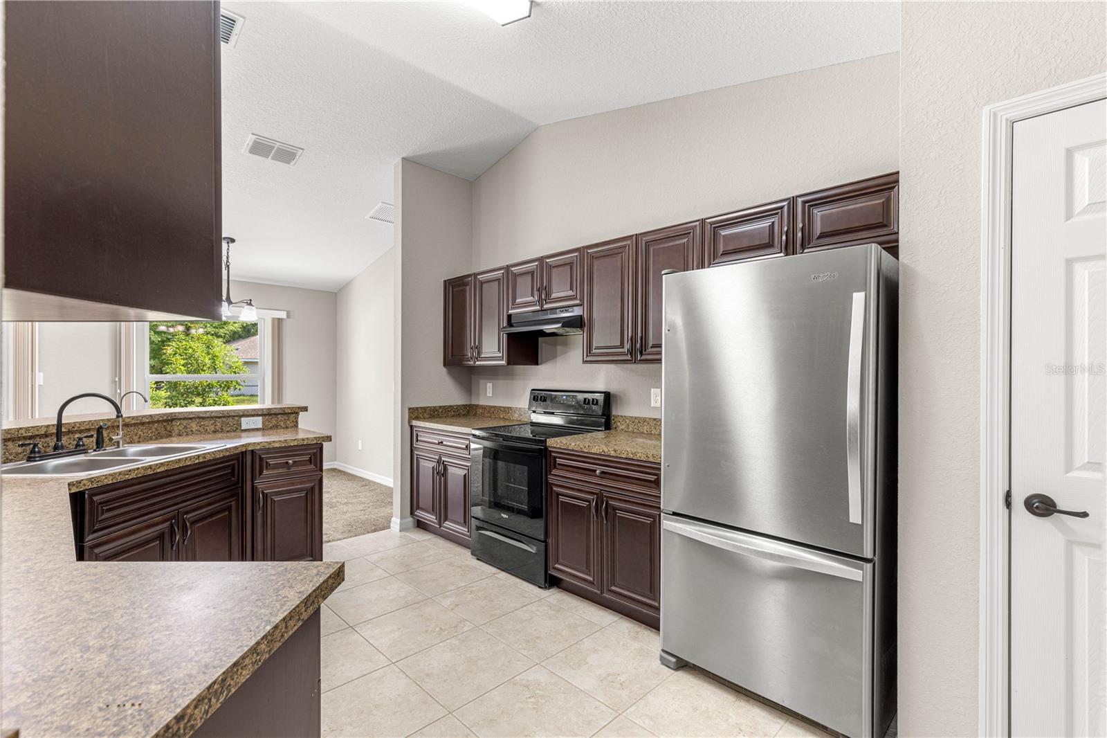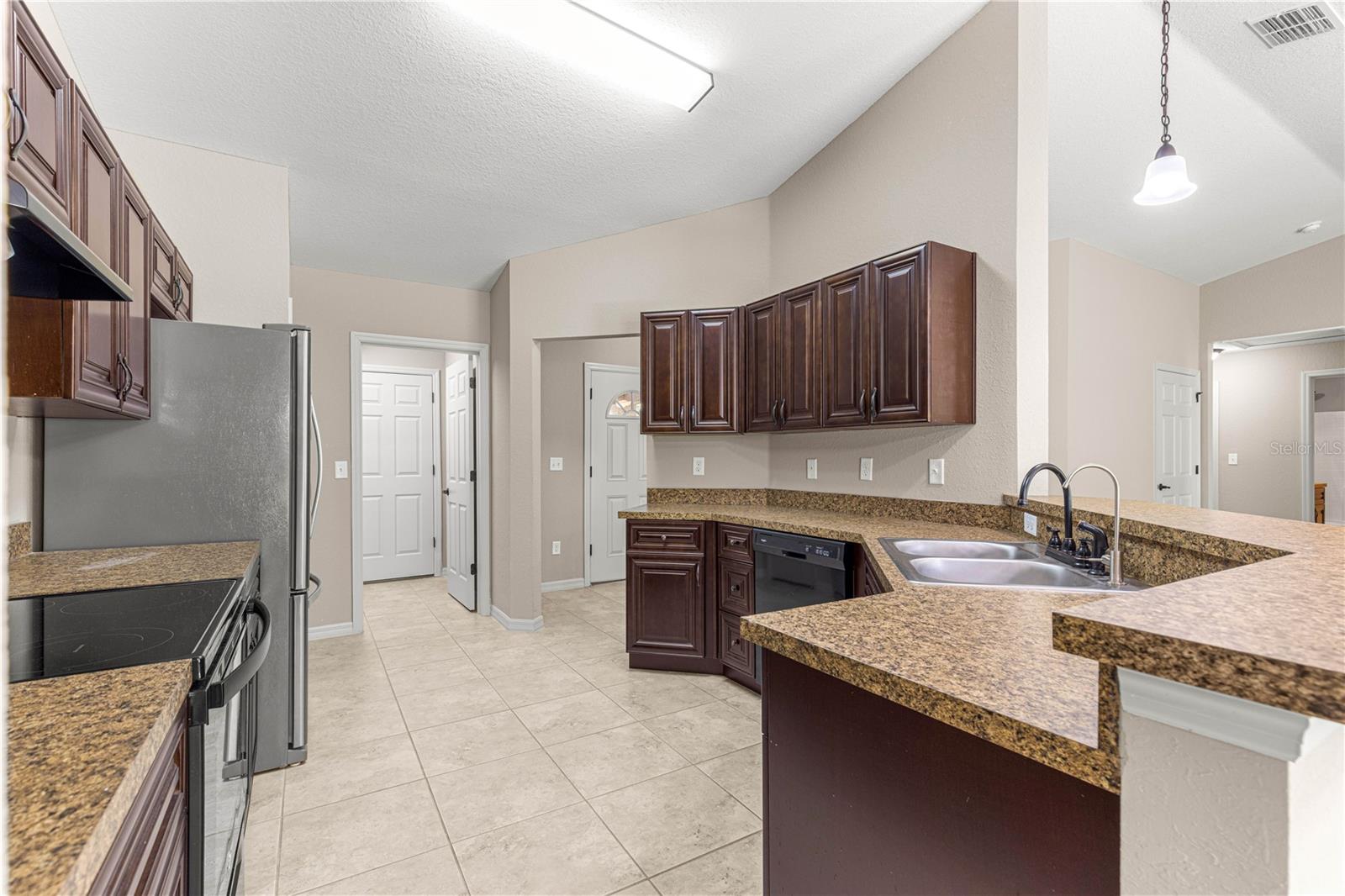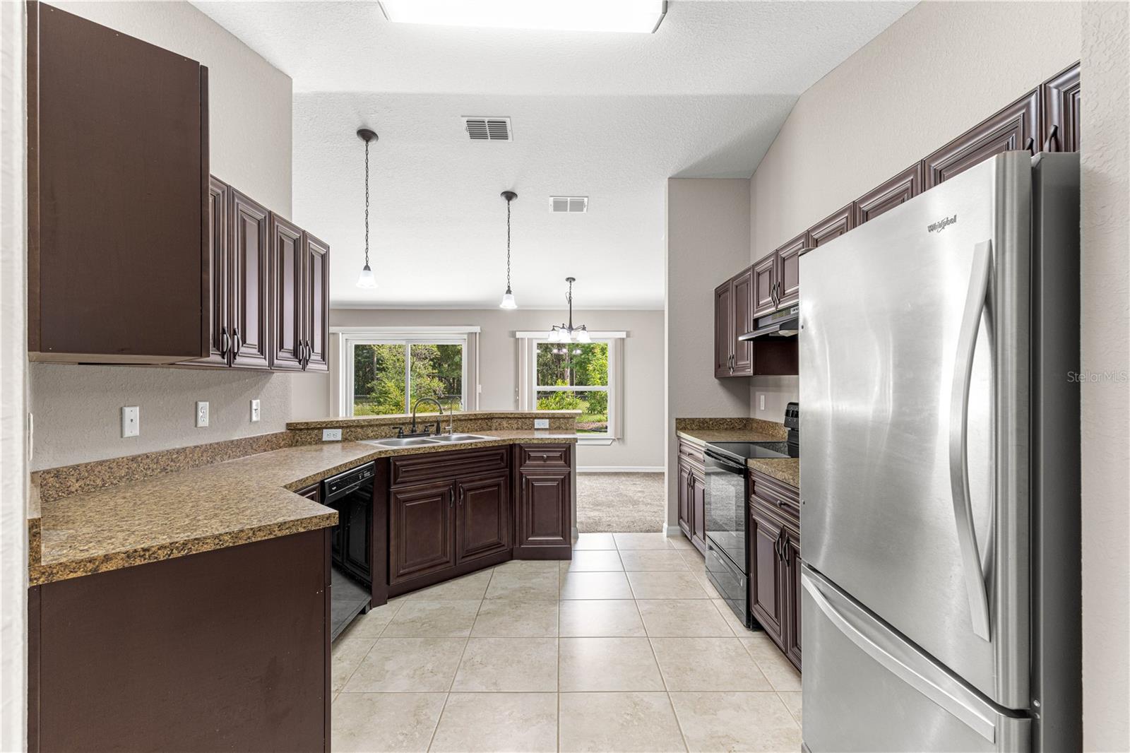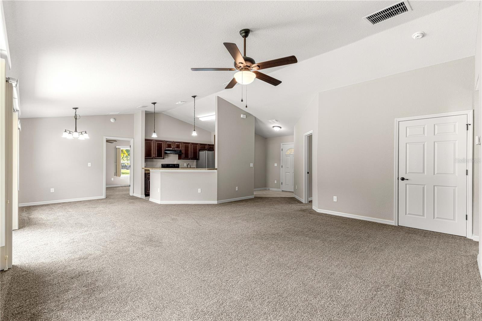 Better Than New! Spacious 4-Bedroom Home in a Peaceful Setting. Welcome to this beautifully maintained 4-bedroom, 2-bath home offering over 2,200 square feet under roof with added extras like installed blinds, gutters, and fencing — without the wait of new construction. Situated in a quiet, peaceful neighborhood, this home features cathedral ceilings and a bright, open layout perfect for both everyday living and entertaining. The kitchen comes complete with all appliances, a convenient breakfast bar, pantry, and a separate dining area. The expansive living room is perfect for gatherings or relaxing evenings at home. The primary suite boasts a generous walk-in closet and dual vanities for added comfort. Three additional bedrooms provide plenty of space for family, guests, or a home office. Step outside to a fully fenced and gated yard (.29 acres), beautifully landscaped with mature plantings and plenty of space to enjoy the outdoors. Don’t miss this rare opportunity to own a better-than-new home in a tranquil location! Just minutes to Belleview, I75 and the Villages.
