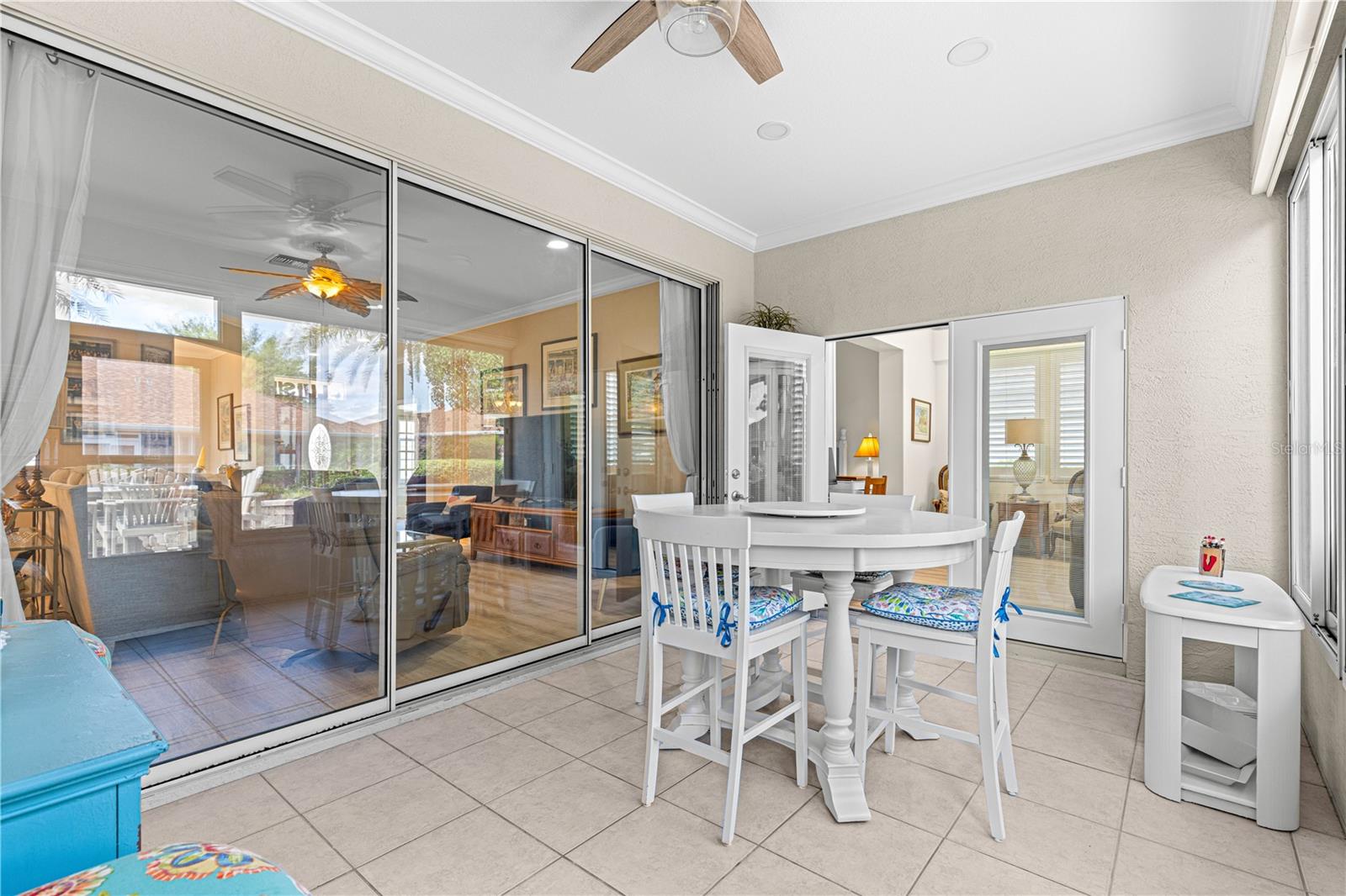 Priced to sale!!Beautifully updated and modified Granville model boasts 2-bedroom split plan with a den and an addition off of the guest bedroom adding extra living space to the guest area and could be utilized as a mother-in-law suite as guest bathroom has door that opens from the bedroom to the guest bathroom. Brick pavers on driveway and sidewalk and entry foyer. Enter the double entry glass doors to a roomy foyer. The den has French doors and can be used as an additional bedroom or office. Crown molding throughout the home adds an elegant touch. Remodeled guest bathroom and primary bathroom are tastefully done. Updated window treatments and luxury vinyl laminate adds to the beautiful decor of the home. Light cabinets in the spacious dine in kitchen with stainless steel appliances opens to a dining room/living room. Sliding doors lead to an enclosed lanai and an outside brick paver and walled patio, great for entertaining and enjoying the Florida weather. The garage is extended with extra room for a golf car or work shop or storage area and has a screen and a sink and vinyl flooring. House also has a water softener system. Roof re-shingled 6/2025 See this beautiful home today you won't be dissappointed