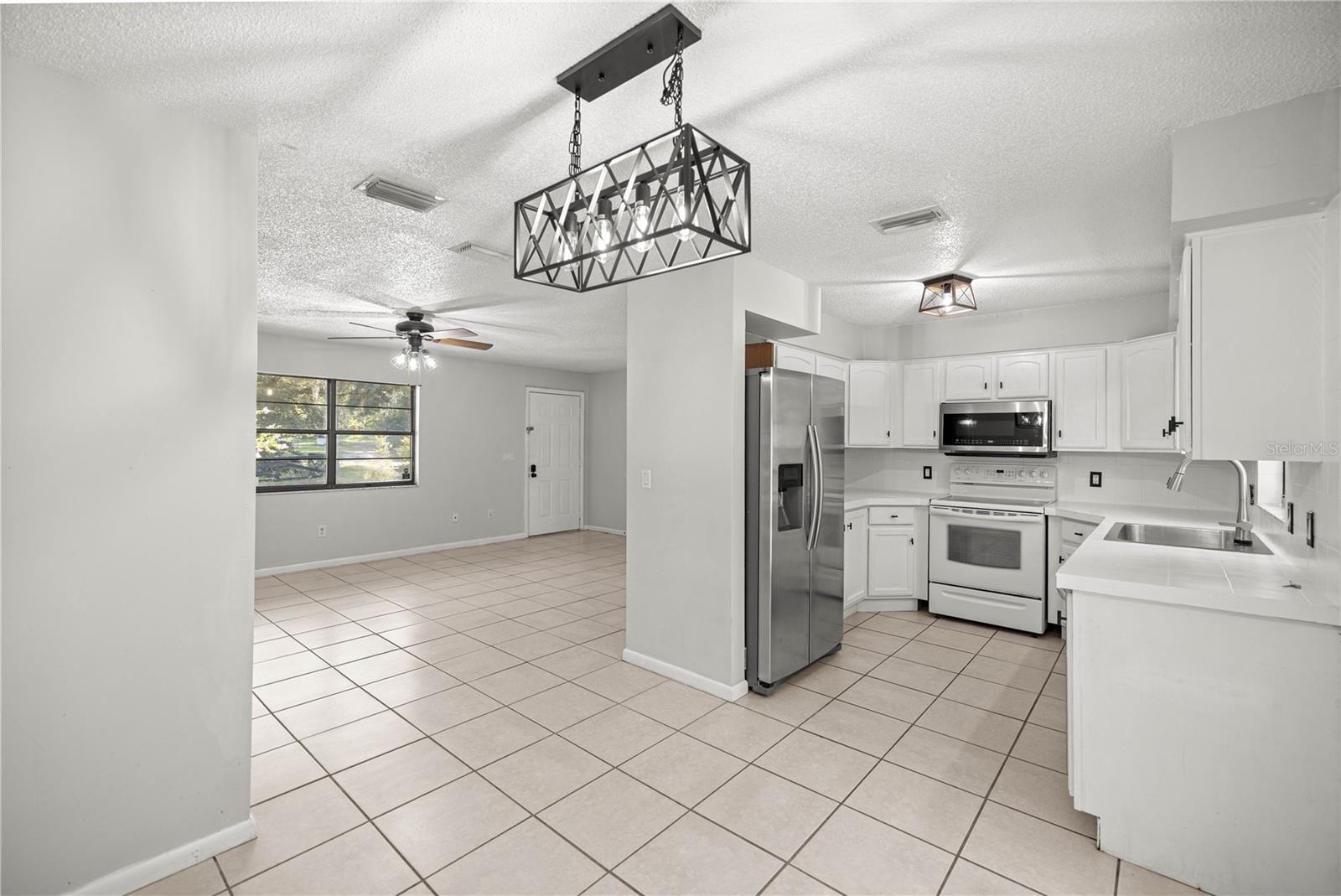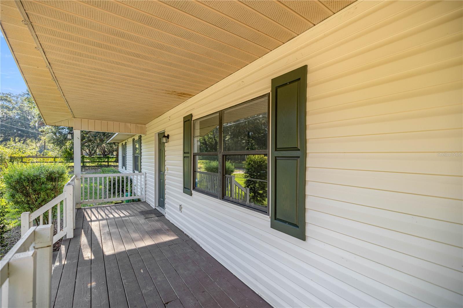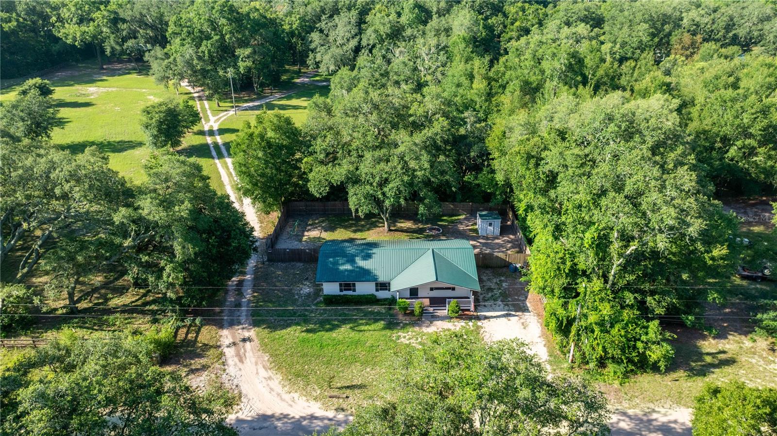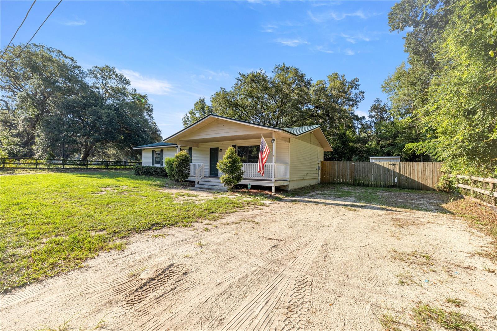 Charming 3/2 home in Summerfield offering peaceful rural living just minutes from The Villages! Zoned A1 and eligible for *USDA financing*, this property sits on a beautifully treed lot with a spacious fenced backyard, perfect for entertaining or relaxing under mature shade trees. Enjoy your morning coffee on the expansive *24-foot front porch* or unwind on the back deck at sunset. Inside, the home features a welcoming open layout with an eat-in kitchen showcasing a tile backsplash, a deep sink with gooseneck faucet. Updates throughout a custom wood accent wall, and stylish finishes that lend a cozy farmhouse feel. The primary suite includes laminate flooring, two large closets, and an updated bath. Two additional bedrooms have tile flooring and ample closet space. The guest bath features a fiberglass tub/shower combo and a waterfall faucet. A laundry closet with custom shelving adds functionality and storage. Outside, a 6-foot privacy fence with double gates and a storage shed provide convenience and space. Located close to shopping, dining, and recreation—yet tucked away in a serene country setting. Don’t miss this move-in ready home—schedule your showing today!