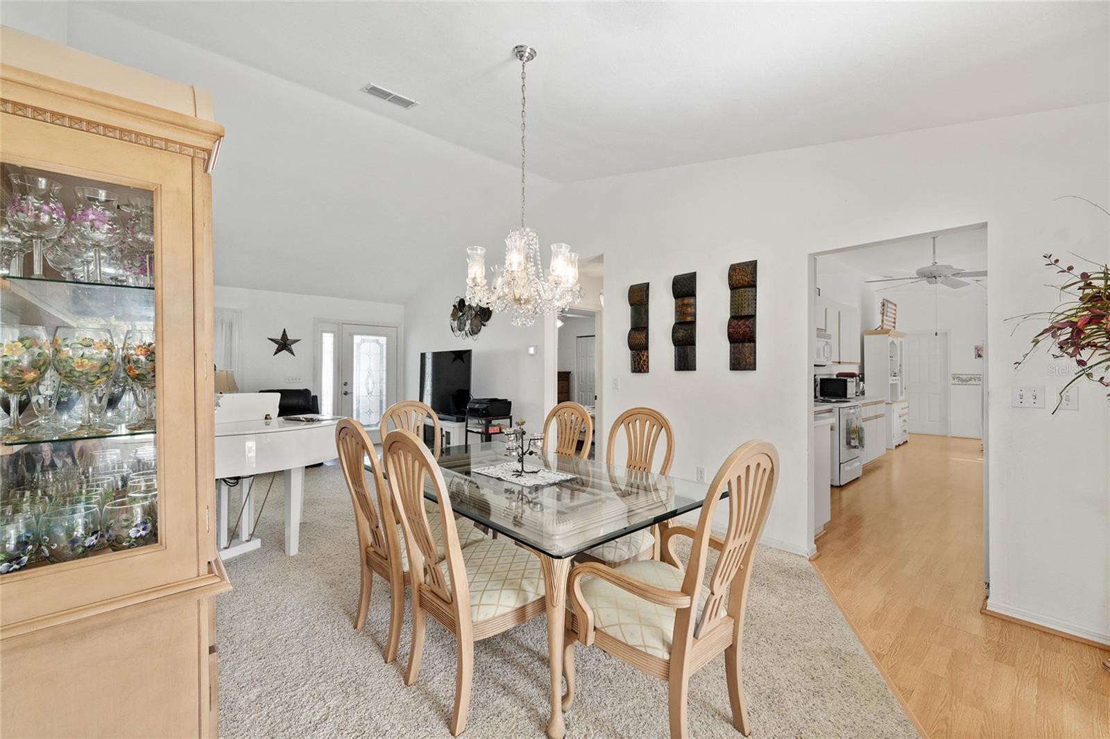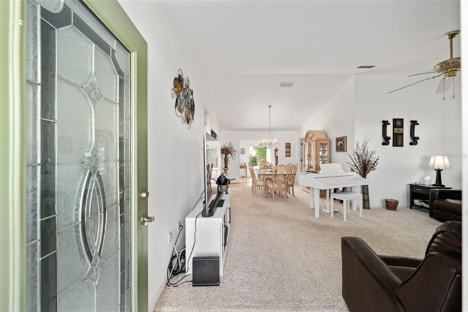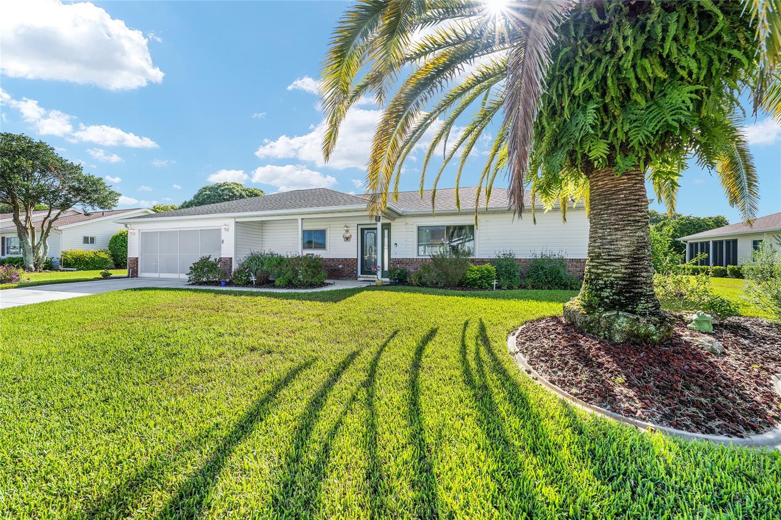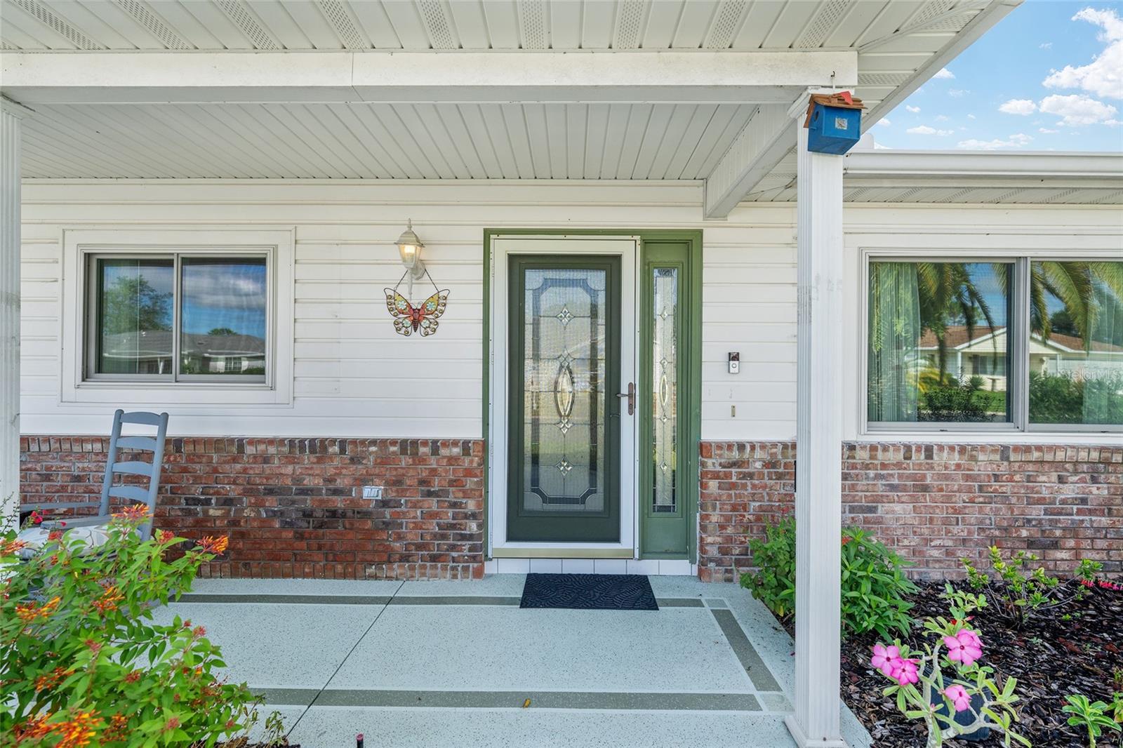A beautiful home in great condition! Not too big, not too small. Curb appeal with the brick belt-line on the front of the home. A desirable FIR floor plan has a covered screened bird cage. $23,000 was paid for new ANDERSEN Windows in 2024. The window over the kitchen sink and the three tall windows at the kitchen dinette area look out to the birdbath and Monarch Butterfly Garden in the backyard. The new living room windows provide viewing of butterflys and hummingbirds attracted to the plants in the front of the home. This home has many relaxing venues to watch nature from. There is a patio in the spacious back yard which is large enough for a dog fence. The large eat-in kitchen has a bay window with so many kitchen cabinets and so much counter space, a “chef’s Dream kitchen”.Vaulted Ceiling in main area. INDOOR LAUNDRY/Utility Room. ROOF 2014, $19,000. was paid for LENNOX 19.4 SEER HVAC in 2024. Located with convenient proximity to the Front Gate in the neighborhood of CANDLESTONE. AWARD-WINNING Del Webb Spruce Creek Golf & Country Club is a GATED, 3,250 home, +55 Community with over 70 clubs, 3 pools, a Clubhouse, a Fitness Center, Bocce Ball, Shuffleboard, 12 Pickle ball Courts, 7 Tennis Courts, Sand Volleyball, Water Volleyball, Lake Vista Gazebo, Pavilions, Walking Paths and so much more! Come see this beautiful community with a GORGEOUS Tree Canopy on the Boulevard and its own Restaurant, Liberty Grille. Come, enjoy the four (4) 9-hole Golf Courses today and begin living your BEST LIFE! COME SEE FOR YOURSELF!
