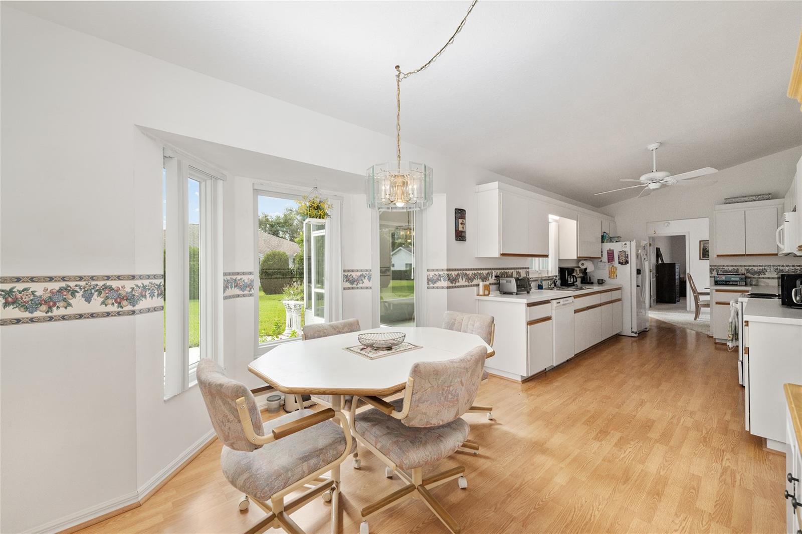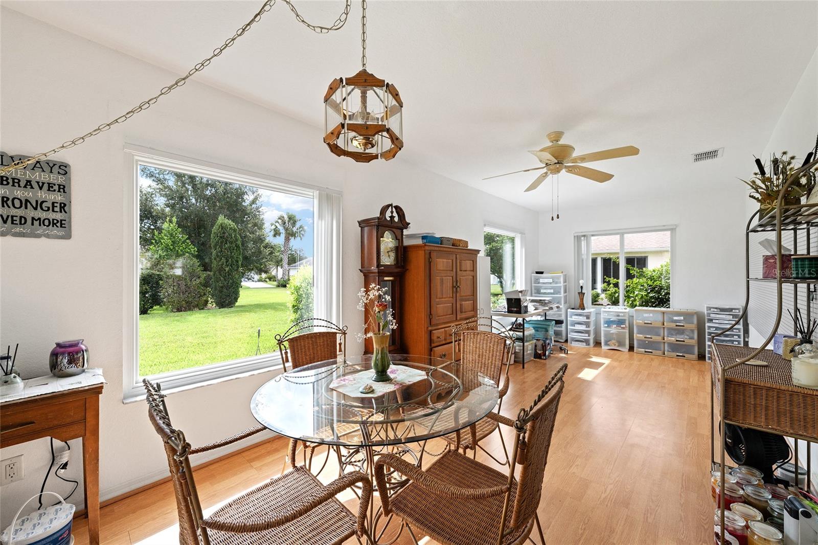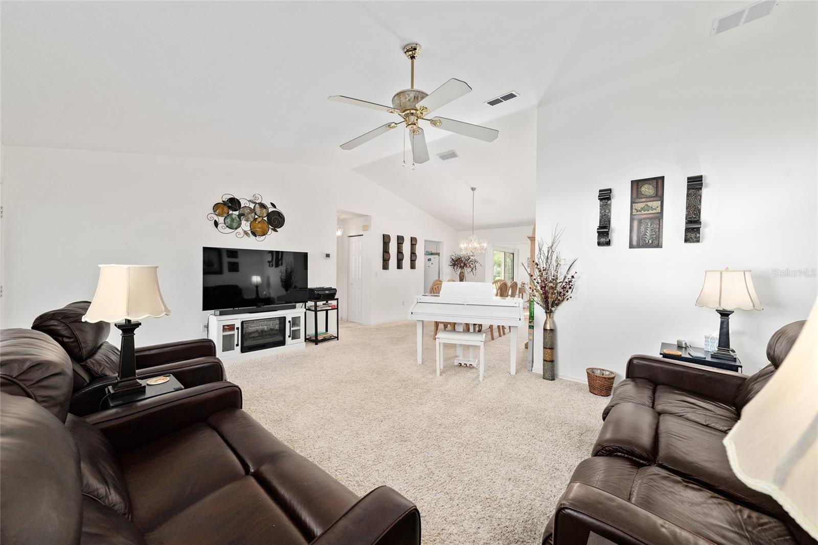 A beautiful home in great condition! Not too big, not too small. Curb appeal with the brick belt-line on the front of the home. A desirable FIR floor plan has a covered screened bird cage. $23,000 was paid for new ANDERSEN Windows in 2024. The window over the kitchen sink and the three tall windows at the kitchen dinette area look out to the birdbath and Monarch Butterfly Garden in the backyard. The new living room windows provide viewing of butterflys and hummingbirds attracted to the plants in the front of the home. This home has many relaxing venues to watch nature from. There is a patio in the spacious back yard which is large enough for a dog fence. The large eat-in kitchen has a bay window with so many kitchen cabinets and so much counter space, a “chef’s Dream kitchen”.Vaulted Ceiling in main area. INDOOR LAUNDRY/Utility Room. ROOF 2014, $19,000. was paid for LENNOX 19.4 SEER HVAC in 2024. Located with convenient proximity to the Front Gate in the neighborhood of CANDLESTONE. AWARD-WINNING Del Webb Spruce Creek Golf & Country Club is a GATED, 3,250 home, +55 Community with over 70 clubs, 3 pools, a Clubhouse, a Fitness Center, Bocce Ball, Shuffleboard, 12 Pickle ball Courts, 7 Tennis Courts, Sand Volleyball, Water Volleyball, Lake Vista Gazebo, Pavilions, Walking Paths and so much more! Come see this beautiful community with a GORGEOUS Tree Canopy on the Boulevard and its own Restaurant, Liberty Grille. Come, enjoy the four (4) 9-hole Golf Courses today and begin living your BEST LIFE! COME SEE FOR YOURSELF!