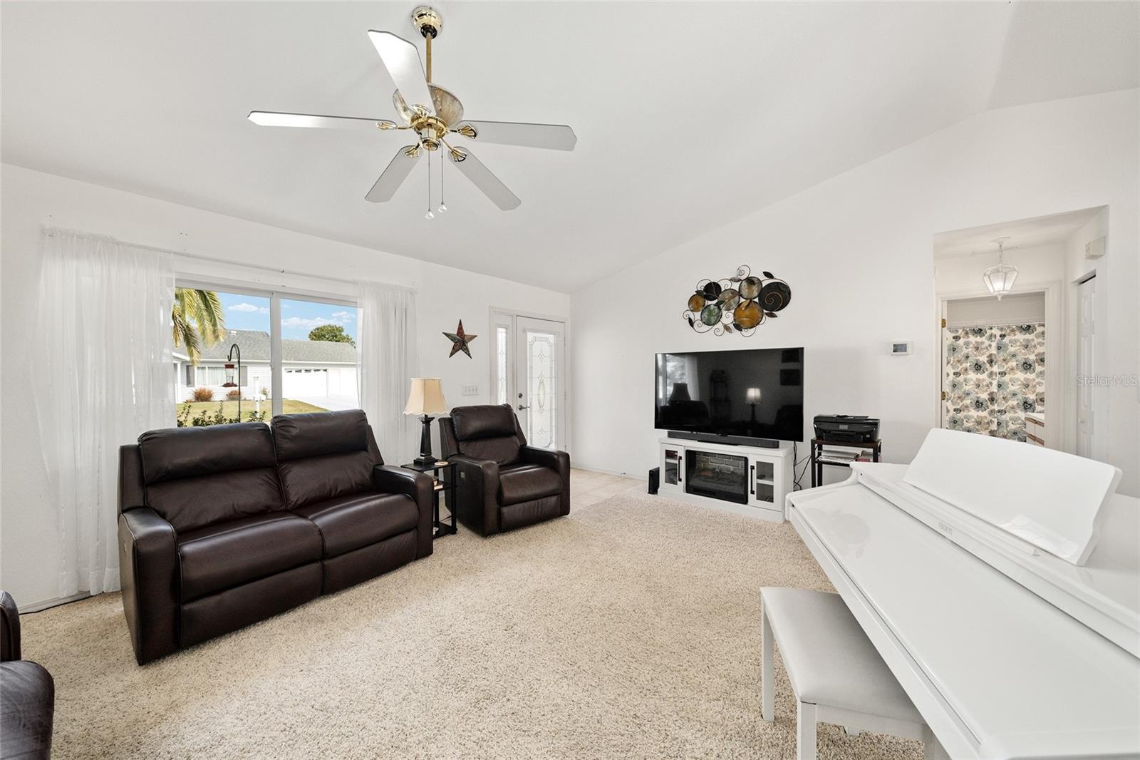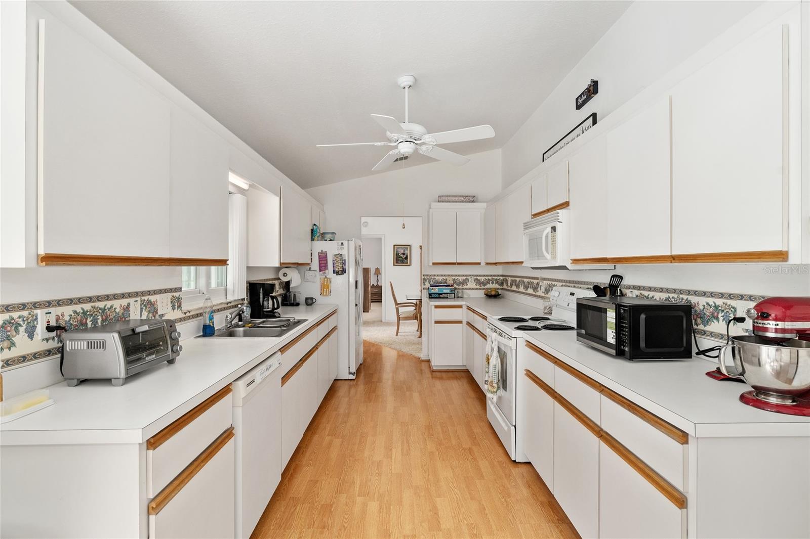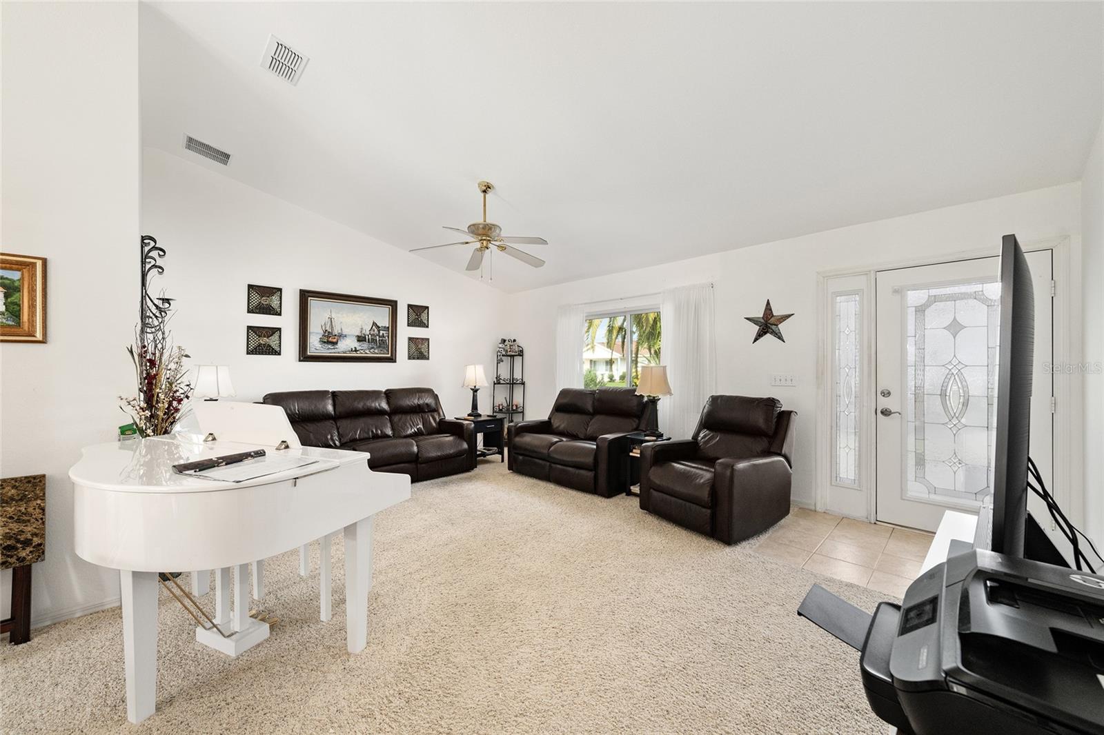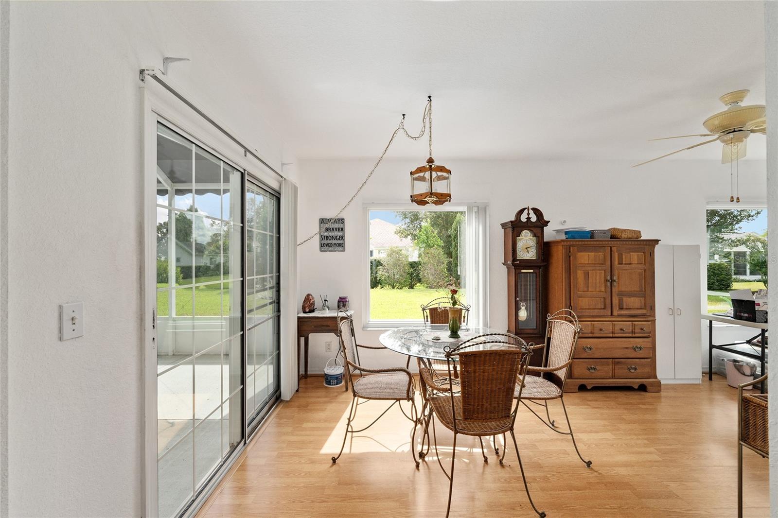 A beautiful home in great condition! Not too big, not too small. Curb appeal with the brick belt-line on the front of the home. A desirable FIR floor plan has a covered screened bird cage. $23,000 was paid for new ANDERSEN Windows in 2024. The window over the kitchen sink and the three tall windows at the kitchen dinette area look out to the birdbath and Monarch Butterfly Garden in the backyard. The new living room windows provide viewing of butterflys and hummingbirds attracted to the plants in the front of the home. This home has many relaxing venues to watch nature from. There is a patio in the spacious back yard which is large enough for a dog fence. The large eat-in kitchen has a bay window with so many kitchen cabinets and so much counter space, a “chef’s Dream kitchen”.Vaulted Ceiling in main area. INDOOR LAUNDRY/Utility Room. ROOF 2014, $19,000. was paid for LENNOX 19.4 SEER HVAC in 2024. Located with convenient proximity to the Front Gate in the neighborhood of CANDLESTONE. AWARD-WINNING Del Webb Spruce Creek Golf & Country Club is a GATED, 3,250 home, +55 Community with over 70 clubs, 3 pools, a Clubhouse, a Fitness Center, Bocce Ball, Shuffleboard, 12 Pickle ball Courts, 7 Tennis Courts, Sand Volleyball, Water Volleyball, Lake Vista Gazebo, Pavilions, Walking Paths and so much more! Come see this beautiful community with a GORGEOUS Tree Canopy on the Boulevard and its own Restaurant, Liberty Grille. Come, enjoy the four (4) 9-hole Golf Courses today and begin living your BEST LIFE! COME SEE FOR YOURSELF!
