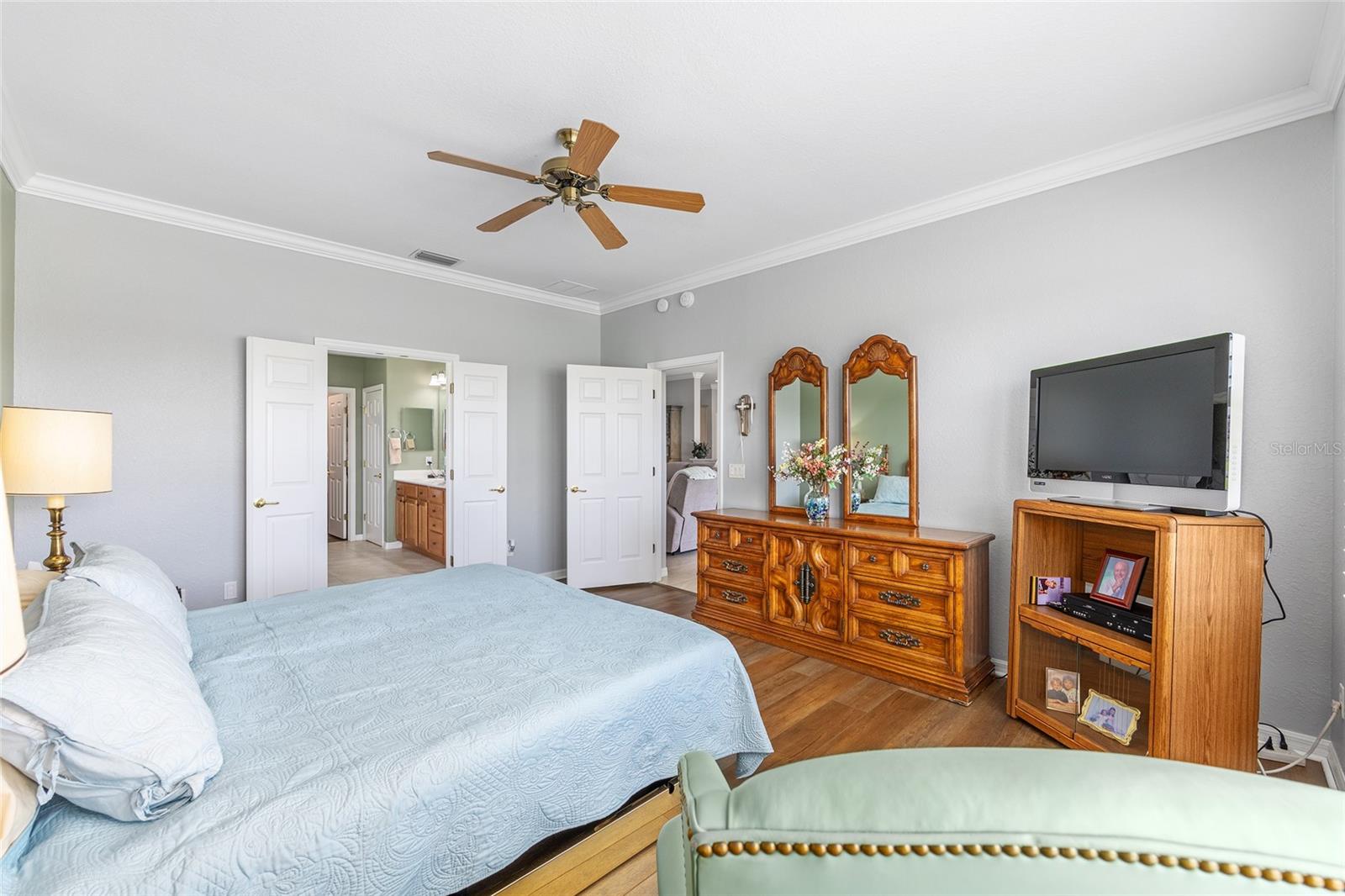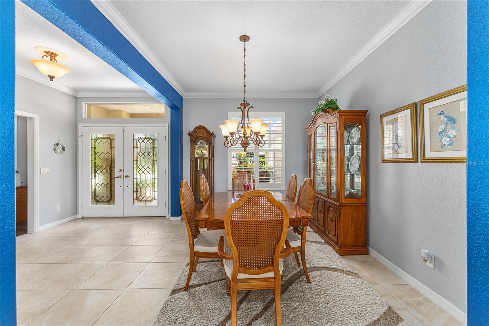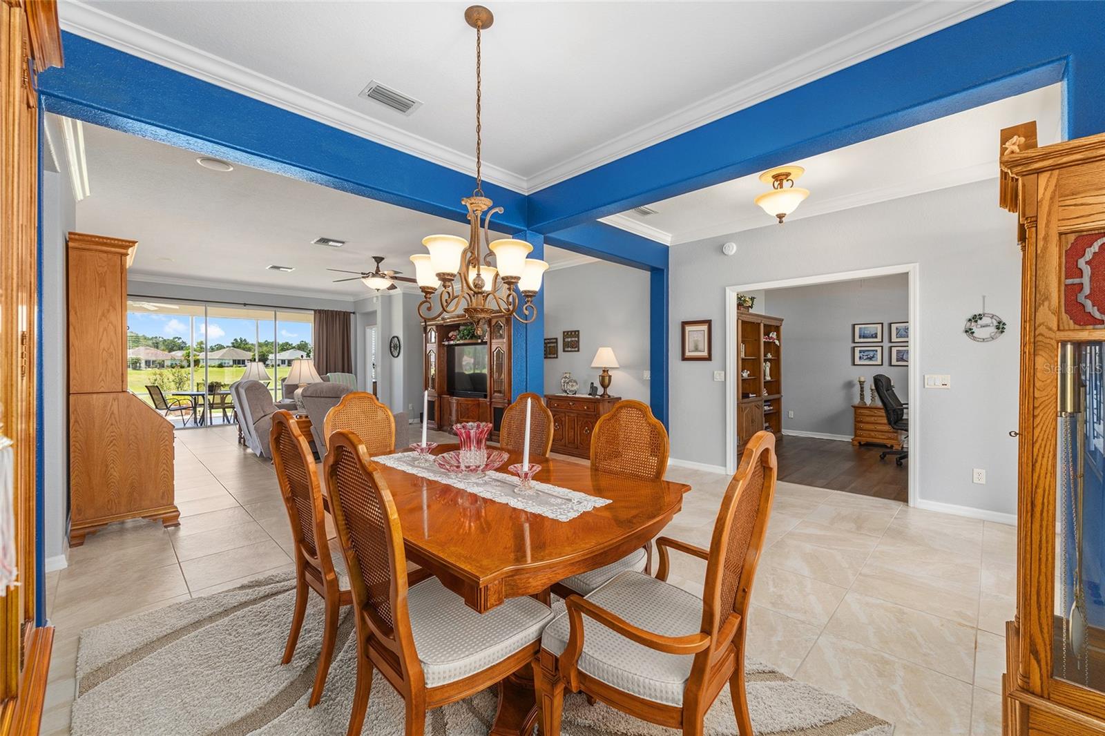 PRICE REDUCED $10,000!!!! How about a 10-acre backyard that is maintenance free, you do not have to care for?? This beautiful Johnstown model has been freshly painted interior and exterior, and boasts many added improvements, including crown molding throughout, easy-care luxury vinyl plank wood look flooring in bedrooms and den, 20-inch stone-look ceramic tile in main living area (no carpet in this home) and, Wow!, plantation shutters throughout the home. Beautiful leaded glass double entry doors open to 2,120 square feet featuring 3 spacious bedrooms and a den, the home sits on a lot that overlooks a dry retention area which is beautifully maintained and groomed, providing you with a gorgeous view from the main living area. A split-bedroom layout provides comfort for guests, with secondary bedrooms located opposite the private primary suite. The kitchen has an island and features and a dining area, and Quartz countertops and backsplash. Upgraded maple cabinets and newer GE stainless steel appliances. Laundry room features new Maytag Washer/dryer and lots of counter and cabinet space! There's a laundry sink in the garage. New Shark Epoxy Coating applied to Driveway, Walkway, and Garage Floor. the Air handler, which was originally located in an inside closet next to the kitchen, has been moved to the garage, creating an extra storage space and eliminating the sound of a running a/c. HVAC 2014. Roof 2017. See the community website for more details and updates. The HOA fee is only $211/ month, making it a excellent value for access to such a wide range of recreational activities and services within a gated, golf- cart friendly community, conveniently located within 4 miles of the Villages. This home has been meticulously maintained and tastefully updated. It looks like a brand new home! AWARD-WINNING Del Webb Spruce Creek Golf & Country Club is a GATED, 3,250 home, +55 Community with over 70 clubs, 3 pools, 3 spas, a Clubhouse, a Fitness Center, Bocce Ball, Shuffleboard, 12 Pickle ball Courts, 7 Tennis Courts, Sand Volleyball, Water Volleyball, Lake Vista Gazebo, Pavilions, Walking Paths and so much more! Come see this beautiful community with a GORGEOUS Tree Canopy on the Boulevard and its Restaurant, Liberty Grille. Come, enjoy the four (4) 9-hole Golf Courses today and begin living your BEST LIFE! DON'T WAIT TO SEE THIS BEAUTIFUL HOME
