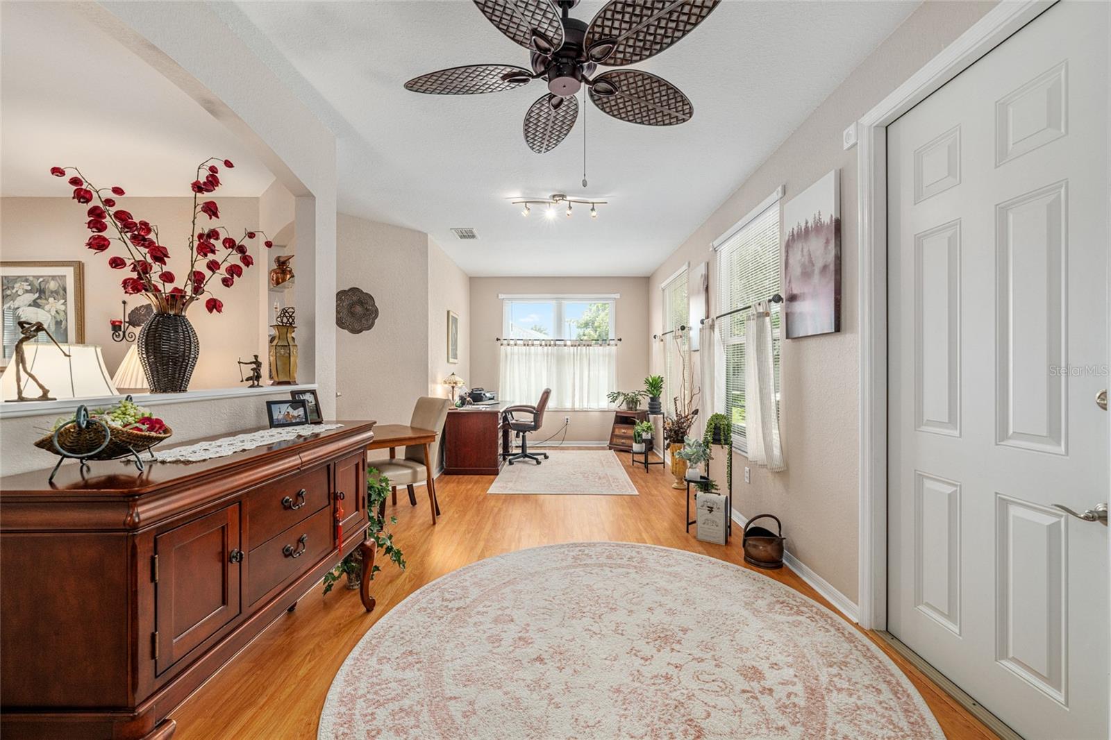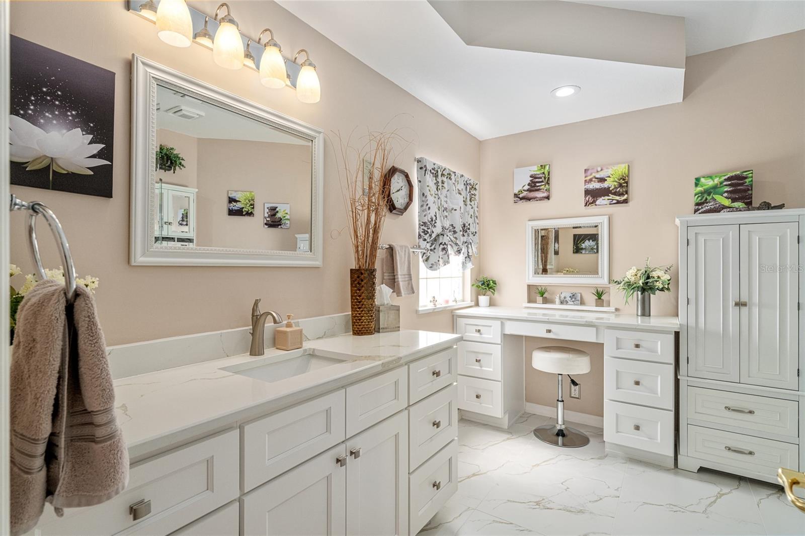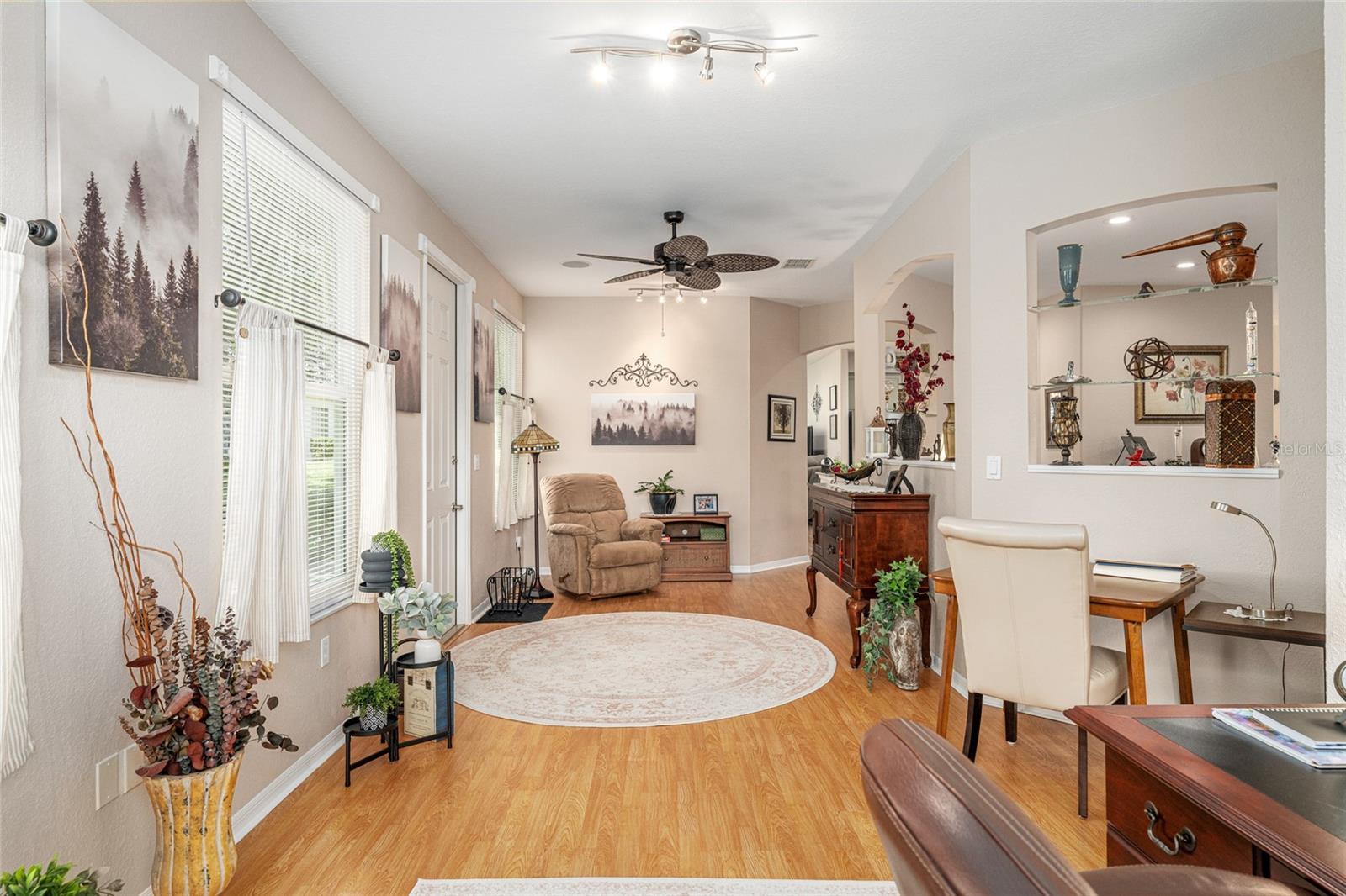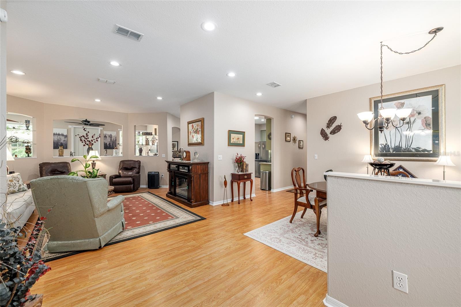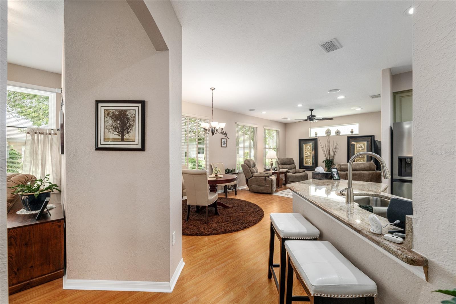 Mrs Clean lives here! This extensively upgraded BISCAYNE model with over $100k in improvements over three years, including new landscaping, outdoor lighting, windows, custom blinds, and repainted interior and exterior is ready for its next owner! Both bathrooms have been remodeled or updated, and the kitchen and laundry feature refinished cabinets, new hardware, tile flooring, and a new laundry sink. All stainless-steel appliances are new within the last two years, as are LED can lights and ceiling fixtures. Other recent upgrades include a 2023 water heater, new exterior doors, painted and resealed driveway, sidewalks, and porch. Located on a quiet street, this home offers peaceful outdoor spaces front and back. Includes a 1-year Broward Factory Service home warranty with an acceptable offer. Golf cart and select furnishings available separately. Located in the best community around, Del Webb Spruce Creek Golf & Country Club, Summerfield.
