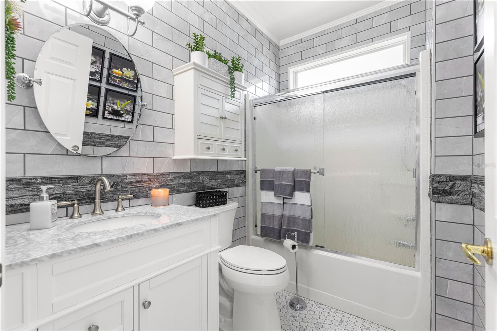 The craftsmanship is seamless and impeccable— you have to see this home in person! Located in the highly sought-after Del Webb Spruce Creek community, this beautifully updated 2 Bedroom, 2 Bathroom home has been meticulously enhanced from 2023 through 2025, offering a truly move-in-ready retreat filled with style and quality. Step inside to find luxury vinyl flooring throughout, designer finishes, and custom decorative trim, crown molding, and plantation shutters that add timeless elegance. The updated kitchen (2023) boasts KraftMaid soft-close cabinetry with roller shelving and kick drawers, granite countertops, a deep sink with designer faucet, and a full suite of stainless steel appliances. The bonus flex room (perfect as an office or third bedroom) showcases batten wall detailing and upgraded lighting with dimmers for added ambiance. The primary suite feels like a private sanctuary with its 2023 spa-style bathroom featuring a white KraftMaid vanity with makeup area, granite counters, decorative tile shower, and updated mirrors, lighting, and remote fan. The walk-in closet includes custom shelving for maximum storage. The second bedroom and bath have also been completely refreshed — from rain glass shower doors to designer tile, vanity, and lighting — everything is move-in ready and beautifully done. Outside, enjoy your expanded lanai and birdcage (2023), perfect for morning coffee or evening relaxation. The home’s freshly painted exterior (2023), new landscaping (2024), updated lighting, and new front storm door (2025) create wonderful curb appeal. The garage is just as impressive with Husky storage cabinetry (2025), interlocking flooring tiles (2025), attic fans (2024), and built-in functionality. Major mechanicals bring peace of mind with a new HVAC system (2024) serviced regularly, roof (2022), and water heater (2018) — all contributing to a worry-free lifestyle. Every update has been made with care, combining comfort, beauty, and practicality. This home truly offers the best of Del Webb Living - in a vibrant, active 55+ community with resort-style amenities, 36 holes of Championship Golf, Pickleball, Tennis, Fitness Center, 3 Pools (1indoor) Shuffleboard, Horseshoes, Bocce Ball, Walking path in Wooded Area and more clubs than you can imagine!!!!