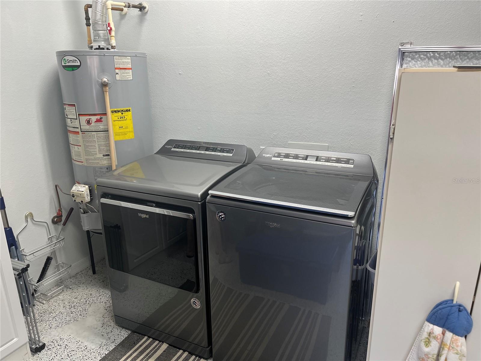 Stunning 2 bedroom and 2 bath home with Florida room (under heat and air) and 2 sets of sliding glass doors with contained blinds (new in 2019). This model boasts a light and bright front kitchen, a roomy living room and cozy Florida room. Home is immaculate and decorated for the most discerning taste and most of the furniture is included with the home (see list of exceptions when you view the home). Enter the welcoming front porch and sidewalk and driveway that has been painted, flaked and sealed and regularly sealed and has a hide-a-screen (new 2020) on the front door (new 2019) to welcome guests and enjoy the Florida breezes. The interior was painted with decorator colors (including the garage) in 2019. Vinyl laminate plank flooring new in the entire home 2019 (3 extra packages available if needed.) All window blinds were new in 2019. The kitchen has granite countertops (2020) and newer stainless-steel appliances (2024). Installed ceiling recessed lighting with dimmers 2019 and installed roll out drawers 2021. The bathroom faucets and showers heads were new in May 2021 and new comfort height toilets February 2024. Exterior is easy to maintain, and landscaping curbing and stones around entire home and bushes were replaced in 2019. The pole lamp underground wiring, socket and sensor replaced 2021. Shingles were replaced April 2021 and HVAC system new in May 2025, water heater replaced 2016. The garage is immaculate and floor was painted, flaked and sealed in April 2020. The garage was drywalled in June 2019 and screens and kickplates were replaced in April 2021 and garage door motor new in December 2024 and LED lights installed December 2021. Newer smoke alarms, kitchen lights were replaced with LED, new switches in all rooms except bedrooms and bathrooms, replaced outside front porch light with LED and timer. As you can tell this home shows pride of ownership and maintenance. It's a move-in ready paradise! Call for your showing today!