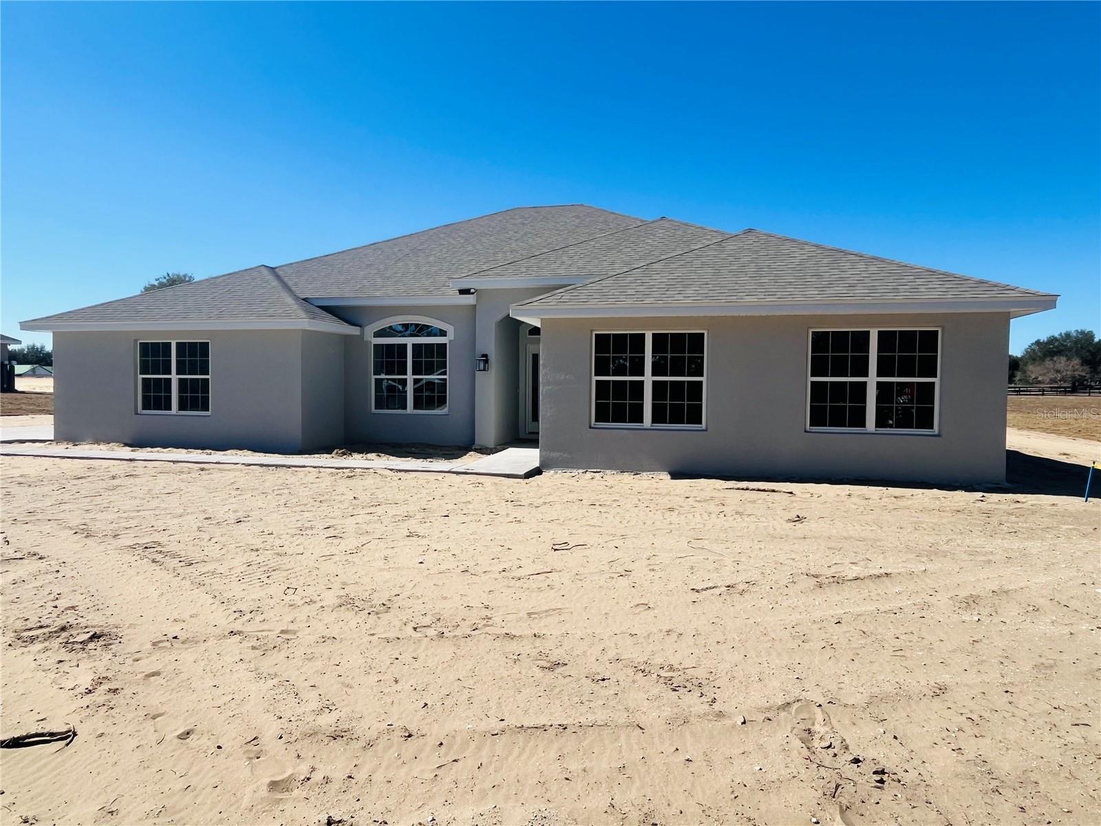 Under Construction. Adams BLOCK AND STUCCO MODEL 3000 ON A .98-ACRE LOT ZONED A-1 WITH NO HOA close to shopping and entertainment. Take in a car show or live entertainment at the Villages Spanish Spring Square only minutes away or have dinner at many of the fine restaurants nearby. You will also be minutes away from the Hwy 484 exit on I-75 for a trip to either Orlando to the East, Tampa to the South or Gainesville to the North. This 3000 sq ft home has tile in all areas except the bedrooms that have soft carpet. The kitchen has stainless appliances (range, microwave and dishwasher) and has upgraded shaker cabinets and granite countertops that carry over into the bathrooms also. Enjoy our Florida sunsets from the covered porch in the rear of the home facing West overlooking a pasture. In the master bedroom we have a tray ceiling with crown molding and in the master bath, we have a garden tub along with a separate tiled shower. The large kitchen is a bonus for preparing family meals for the holidays and there is a generous size pantry along with a large laundry room. This NEW HOME COMES WITH A 1 YEAR BUILDER WARRANTY ALONF WITH A 10 YEAR STRUCTURAL WARRANTY, IRRIGATION AND TAEXX IN-WALL PEST CONTROL SYSTEM. PICS OF COMPLETED HOME ARE FOR REFERENCE ONLY. PICS ARE FROM A SIMILAR 3000 IN A DIFFERENT COMMUNITY. COLORS ARE DIFFERENT.