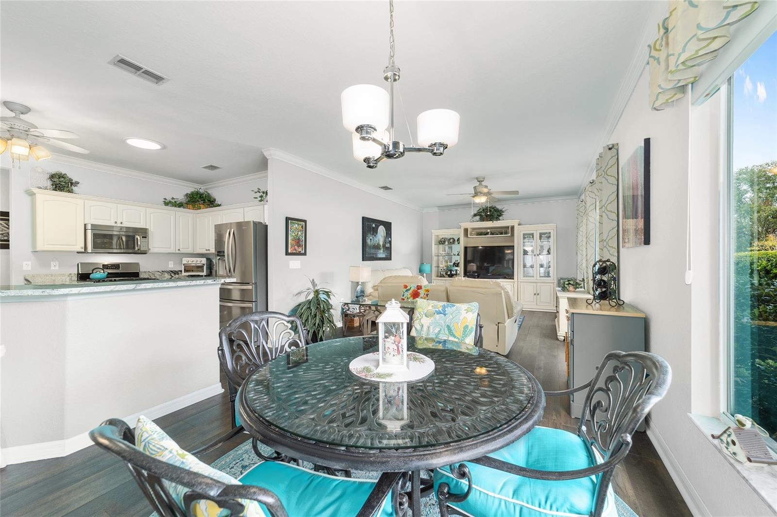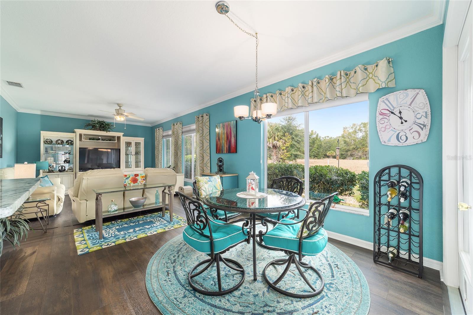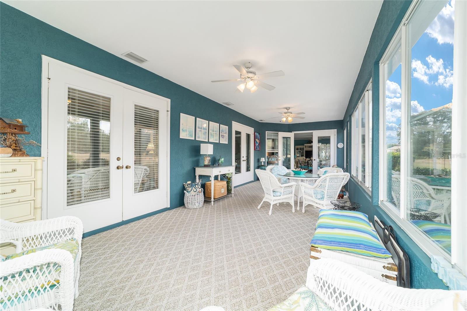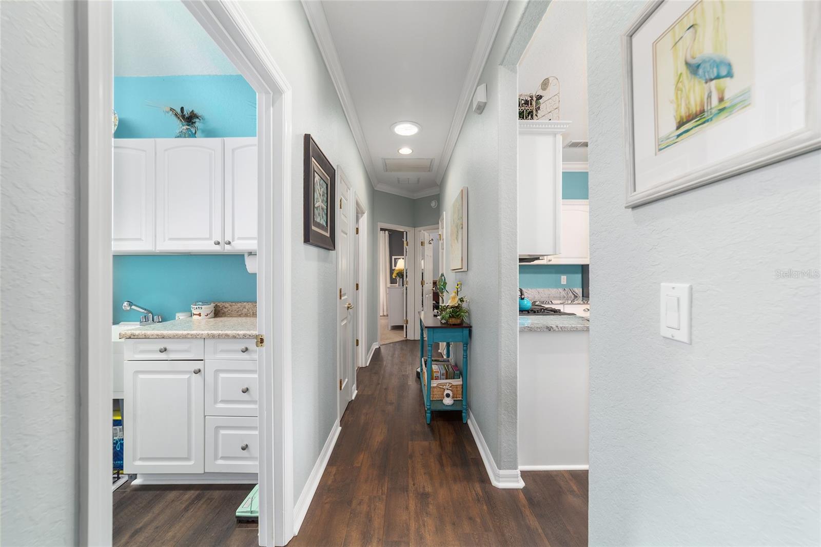 Galleria model with 3 bedrooms, 2 baths, and a full-size 3-car garage located on a natural preserve. Features luxury vinyl plank flooring, granite kitchen counters, Pull outs, stainless steel appliances, instent hot water in kitchen ,recessed lighting, 4 solar tubes, crown molding, dual closets in the master, double quartz vanities, walk-in shower, water closet , and tile in the master bath. Guest rooms are carpeted. The climate-controlled, glass-enclosed lanai has a remote awning and overlooks the preserve, plus there's a spacious patio with a gas line for grilling. The garage includes cabinets, epoxy flooring, attic storage with drop-down stairs, Additional amenities: well for irrigation, whole-house water filtration, fans and lights throughout.