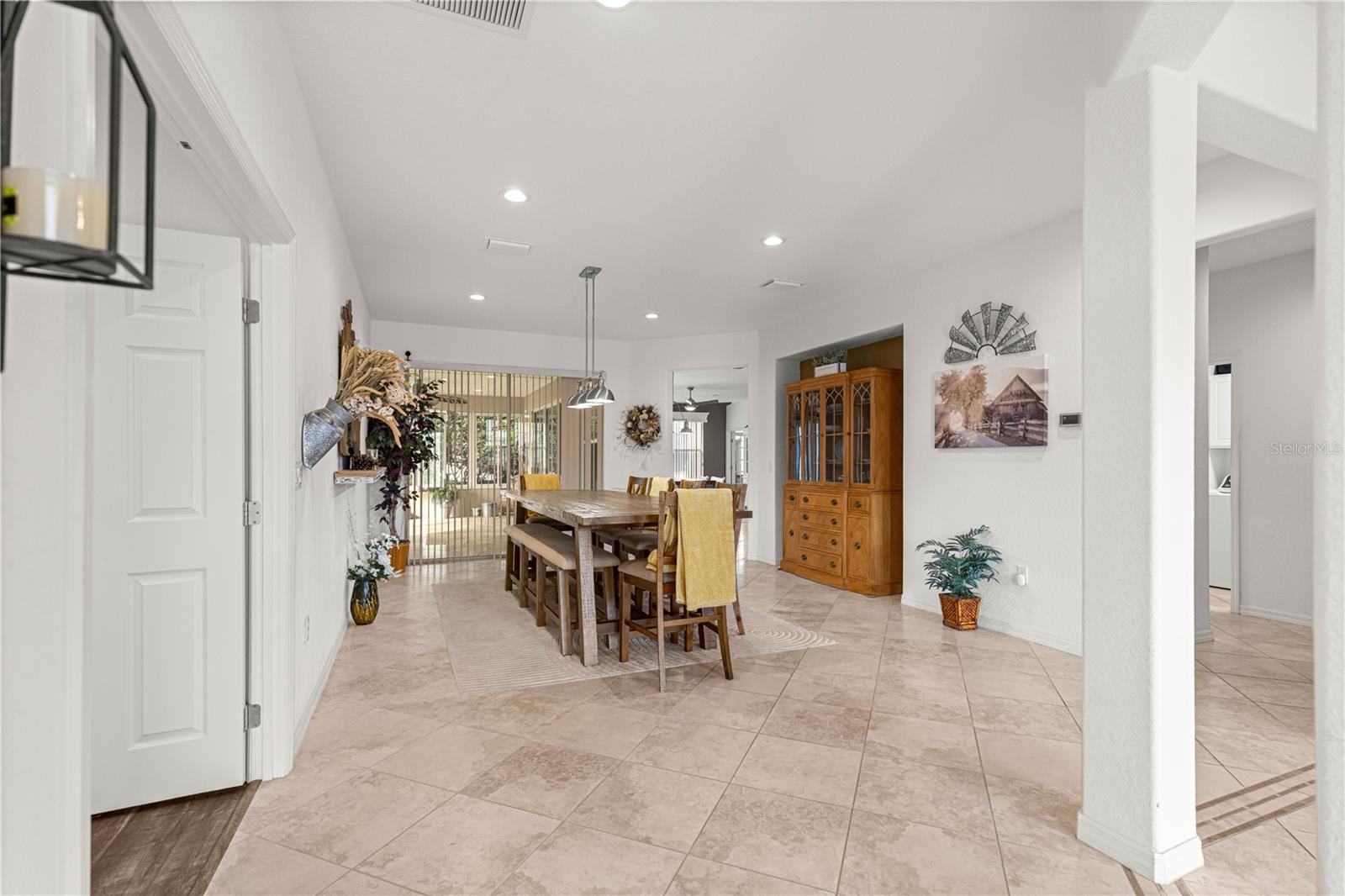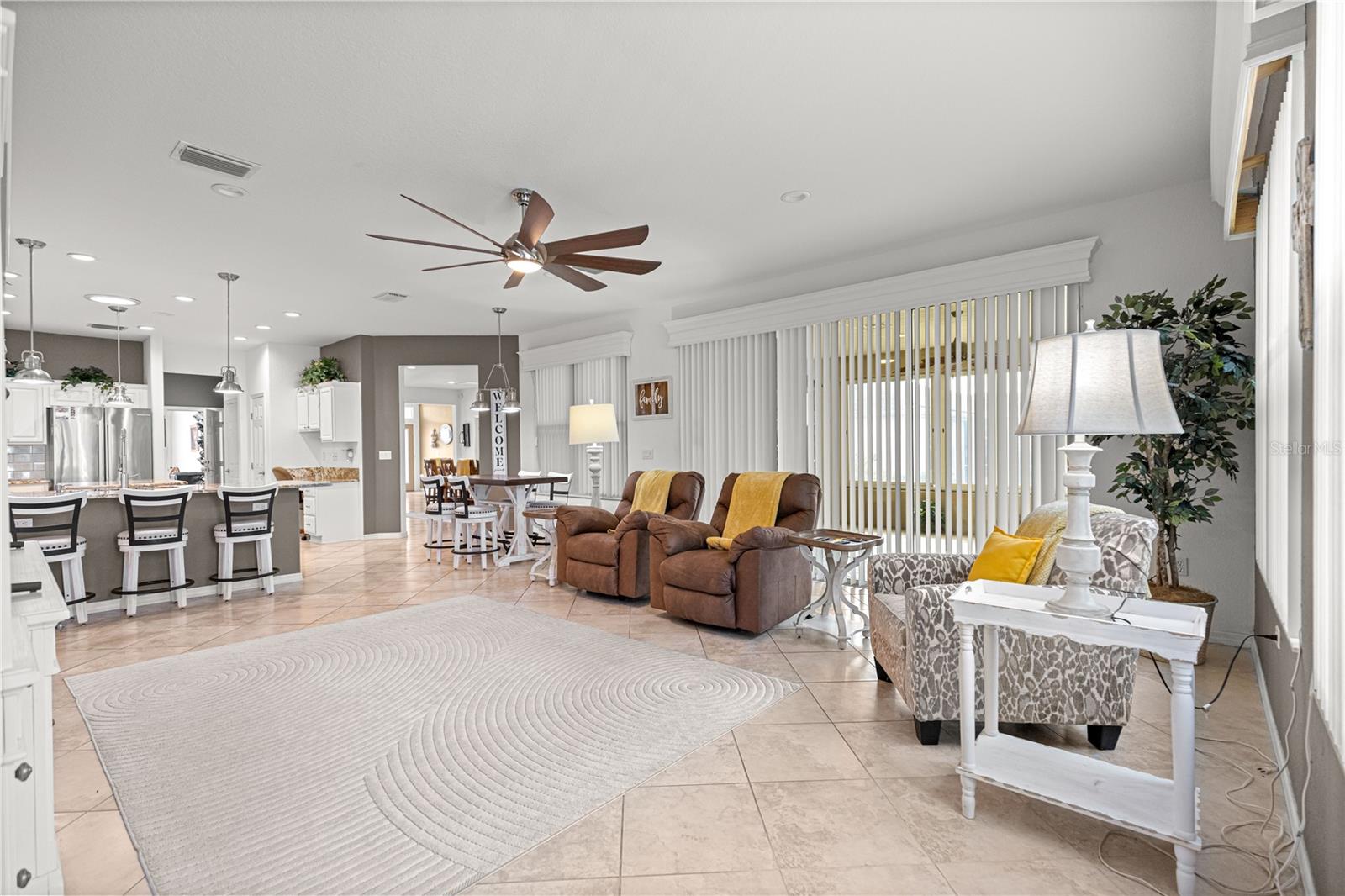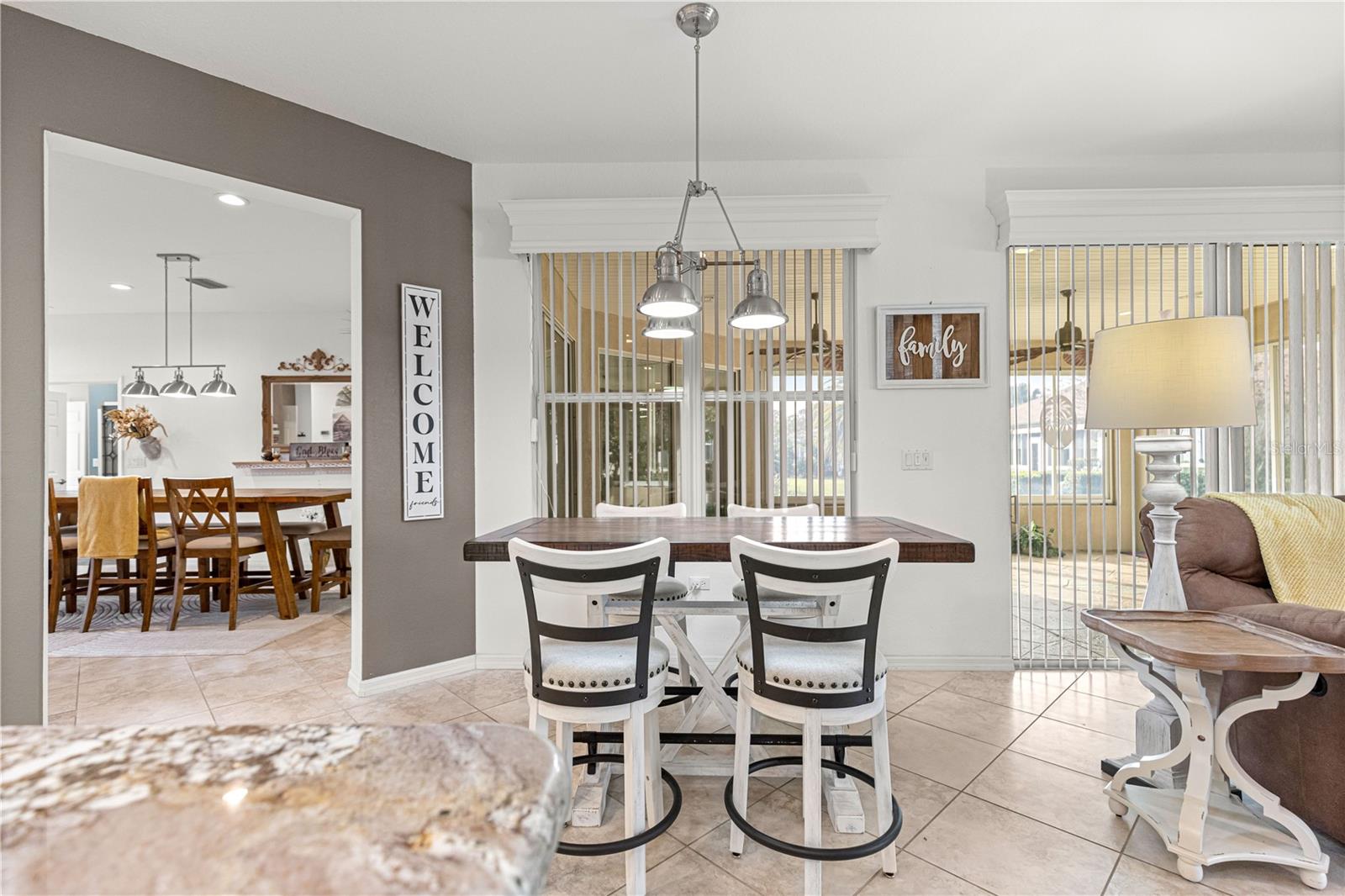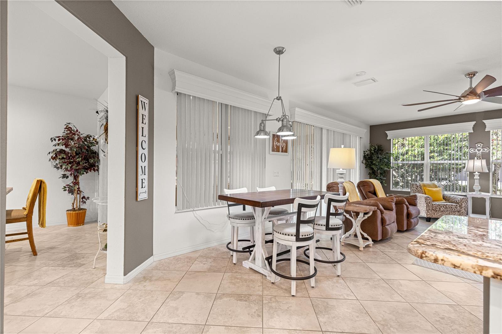 As you walk into this beautiful home you will immediately love the updates. Lexington Model 2806 under air square feet. 3 Bedroom 2 Bath concrete block/stucco home with a library/den/office. 2014 Roof, 2015 A/C. Stunning Chefs Kitchen with Gas Stove, Level 4 (high grade) Granite Countertops and custom center island, solar tube bringing natural light. Large living area with custom wood valances, Home has large ceramic tile throughout main area with beautiful luxury vinyl in Primary bedroom with tray ceilings and crown molding. Huge Primary Bath with tall double vanity and large walk in closet. All the room you need for entertaining in the heated and cooled expanded and enclosed lanai. UPDATES: New door hardware and door handles to match, New lighting / pendants that match throughout entire home, Expanded garage plus golf cart garage with new epoxy flooring with protective matching carpet pieces, New 72" fans in LR, DR, New front door with leaded glass inserts, New backsplash in Kitchen, New SS Appliances including Washing machine (Fridge in home does not convey, New one will be installed) New cabinet knobs and pulls in entire home, 2 new Tall Toilets and home has transferable termite bond. Across the street from golf course and close to Horizon Center, Restaurant/ Bar and Pro Shop. Del Webb Spruce Creek Golf and Country Club has 2 guard gated 24 hr a day security, Recreational Complex at the Horizon Center, Restaurant / Bar, 36 holes of championship Golf, 3 pools (1 Indoor), Fitness Center, Pickle Ball and Tennis Courts, Softball, Horseshoes, Bocce Ball, Shuffleboard and tons of clubs for all your enjoyment. Very active community!! Low HOA Fees.