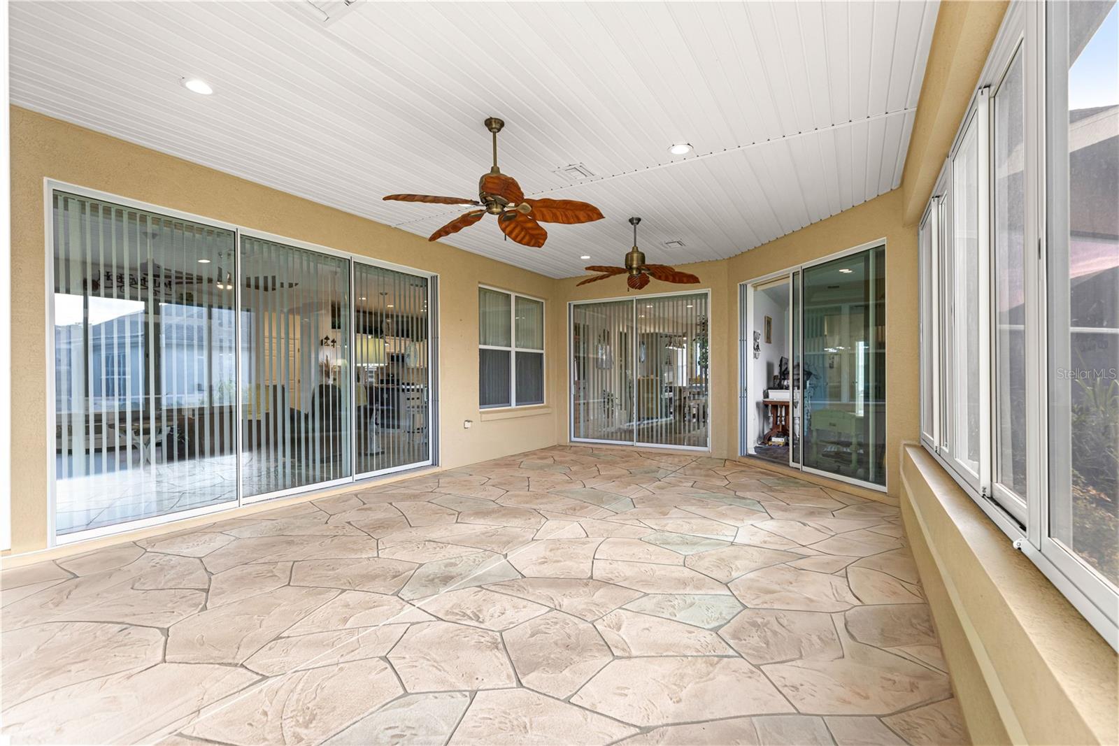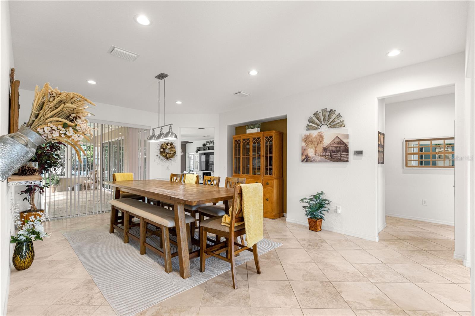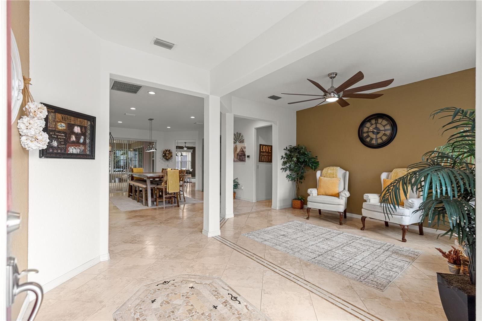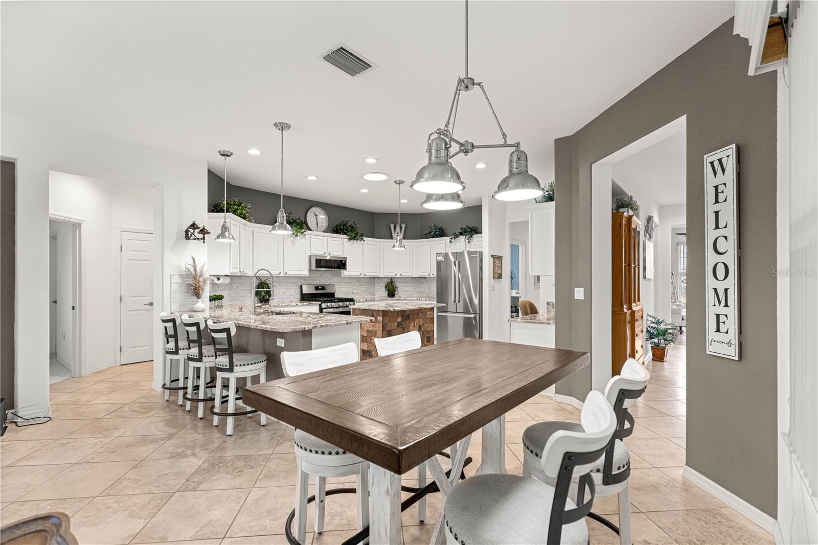 As you walk into this beautiful home you will immediately love the updates. Lexington Model 2806 under air square feet. 3 Bedroom 2 Bath concrete block/stucco home with a library/den/office. 2014 Roof, 2015 A/C. Stunning Chefs Kitchen with Gas Stove, Level 4 (high grade) Granite Countertops and custom center island, solar tube bringing natural light. Large living area with custom wood valances, Home has large ceramic tile throughout main area with beautiful luxury vinyl in Primary bedroom with tray ceilings and crown molding. Huge Primary Bath with tall double vanity and large walk in closet. All the room you need for entertaining in the heated and cooled expanded and enclosed lanai. UPDATES: New door hardware and door handles to match, New lighting / pendants that match throughout entire home, Expanded garage plus golf cart garage with new epoxy flooring with protective matching carpet pieces, New 72" fans in LR, DR, New front door with leaded glass inserts, New backsplash in Kitchen, New SS Appliances including Washing machine (Fridge in home does not convey, New one will be installed) New cabinet knobs and pulls in entire home, 2 new Tall Toilets and home has transferable termite bond. Across the street from golf course and close to Horizon Center, Restaurant/ Bar and Pro Shop. Del Webb Spruce Creek Golf and Country Club has 2 guard gated 24 hr a day security, Recreational Complex at the Horizon Center, Restaurant / Bar, 36 holes of championship Golf, 3 pools (1 Indoor), Fitness Center, Pickle Ball and Tennis Courts, Softball, Horseshoes, Bocce Ball, Shuffleboard and tons of clubs for all your enjoyment. Very active community!! Low HOA Fees.