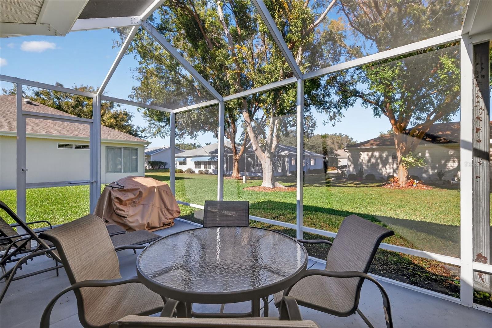 Well-maintained and updated Extended Palm II model in Del Webb Spruce Creek Country Club, a premier 55+ gated community. This 2-bedroom, 2-bath home offers over 1,800 sq ft of living space plus a versatile flex/family room with French doors for privacy. The remodeled kitchen with breakfast room features white cabinetry, stone countertops, subway tile backsplash, and newer stainless-steel appliances. Interior updates include wood flooring, newer carpet in the living room and bedrooms, tile in wet areas, vaulted ceilings, solar tubes, plantation shutters, draperies, and fresh interior paint. The owner’s suite includes a bow window, his-and-hers closets including a spacious walk-in, and an en suite bath with double sinks, large tiled shower, and linen closet. The split floor plan provides privacy for guests, with a guest bath conveniently located off the hallway. Glass-paneled French doors off the dining area lead to the flex room, ideal for an office, family room, or craft space. Exterior updates include a newer roof (2021/2022) and newer HVAC (2023). Outdoor living offers an enclosed lanai with a birdcage (2024). Additional features include an irrigation well with sprinkler system, a separate laundry/utility room, and a two-car garage. Community amenities include 24-hour gated security, fitness center, indoor and outdoor pools, golf courses, restaurant, clubhouse, softball field, pavilions, fishing pond, numerous clubs and activities, dog park, and available RV/boat parking. This home is move-in ready.