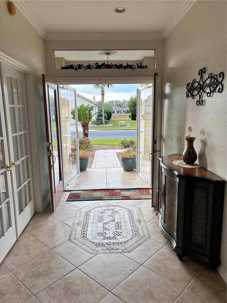 Brand new listing and priced to sell... this exceptional find of an immaculate Granville model with designer elements throughout the house. 2 bedrooms PLUS A DEN/OFFICE WITH FRENCH DOORS , 2 baths. Including the enclosed 40'x10' climate controlled lanai this home has 2,270 square feet of living area. Situated on a corner lot boasting beautifully carved landscaping beds, lush shrubbery, mature trees, decorative wrought iron bench and beautiful 3- tier fountain which stay with the house, custom design stamped driveway/walkway and citrus trees in the back yard (orange, grapefruit & lemon). Leaded glass double doors welcome you to a wide open floor plan and an entrance foyer highlighted by a custom inlaid tile design. There is crown molding throughout the house! The living room includes a flexible area that features a mirrored wall and can be used as a formal dining area. Entire house is ceramic tile, including enclosed lanai. Spacious Gourmet kitchen features granite counter tops, 42-inch maple wood cabinets, tile backsplash and stainless steel appliances. A breakfast bar opens to the living room area. Master suite includes walk-in closet, expanded shower with dual shower heads and benches, granite counter tops and private water closet. AND MUCH MUCH MORE! HVAC 2011 - An existing BROWARD FACTORY WARRANTY will transfer to new owner. There's a private well on the property for lawn irrigation, saving $$$ on water bills. A NEW ROOF will be contracted at closing, giving buyer choice of design and color. Smoke free home. AWARD-WINNING Del Webb Spruce Creek Golf & Country Club is a GATED, 3,250 home, +55 Community with over 70 clubs, 3 pools, 3 spas, a Clubhouse, a Fitness Center, Bocce Ball, Shuffleboard, 12 Pickle ball Courts, 7 Tennis Courts, Sand Volleyball, Water Volleyball, Lake Vista Gazebo, Pavilions, Walking Paths and so much more! Come see this beautiful community with a GORGEOUS Tree Canopy on the Boulevard and its Restaurant, Liberty Grille. Come, enjoy the four (4) 9-hole Golf Courses today and begin living your BEST LIFE! DON'T WAIT TO SEE THIS BEAUTIFUL HOME
